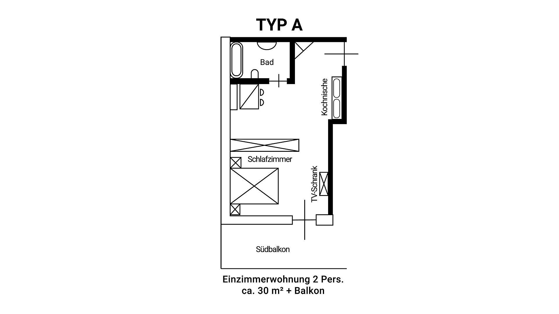 (per 1 - 2 persona/e | 30 m² | 2 appartamenti di questo tipo )