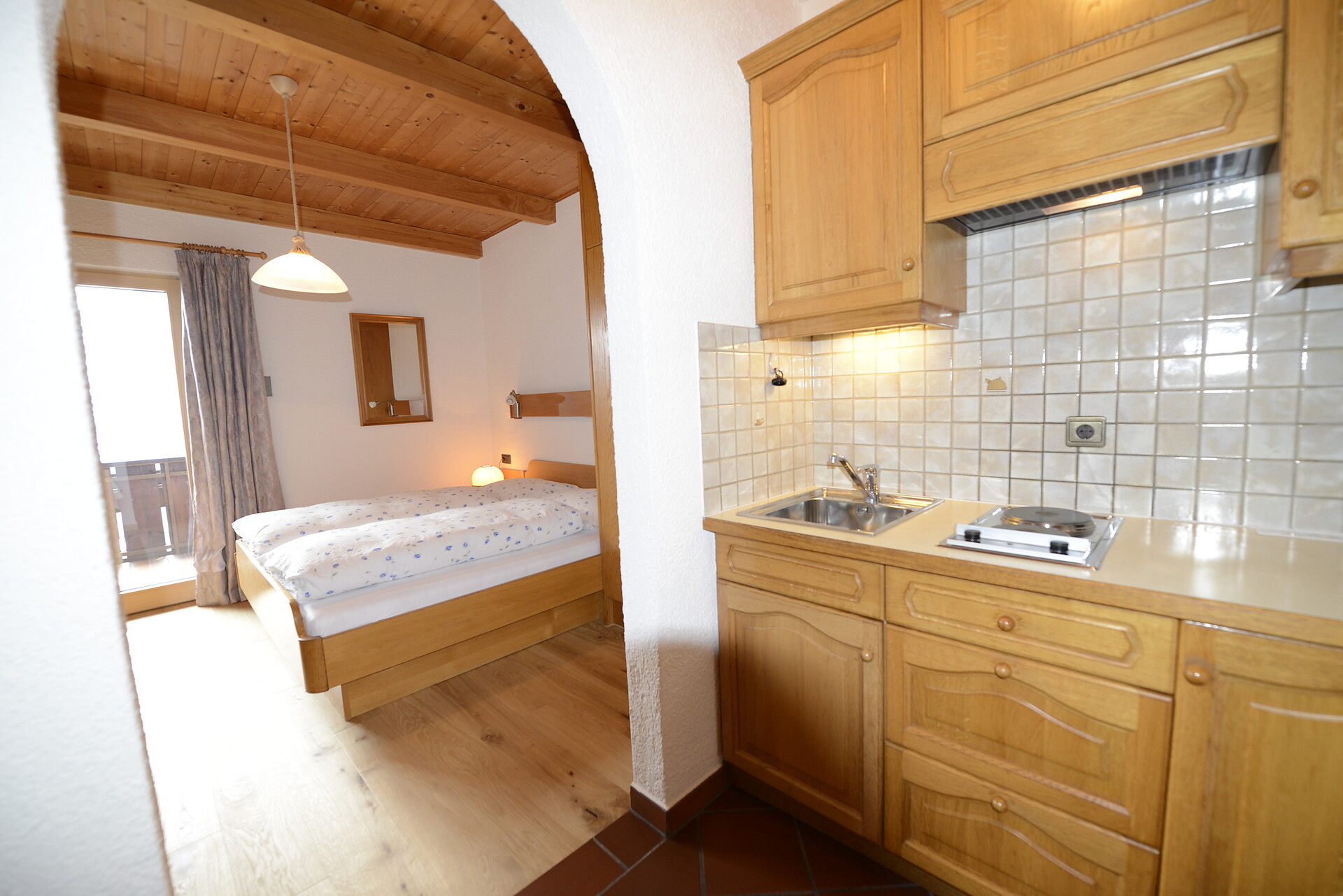 Monolocale per due persone, con balcone ampio, vista Merano. Cucina e bagno compreso