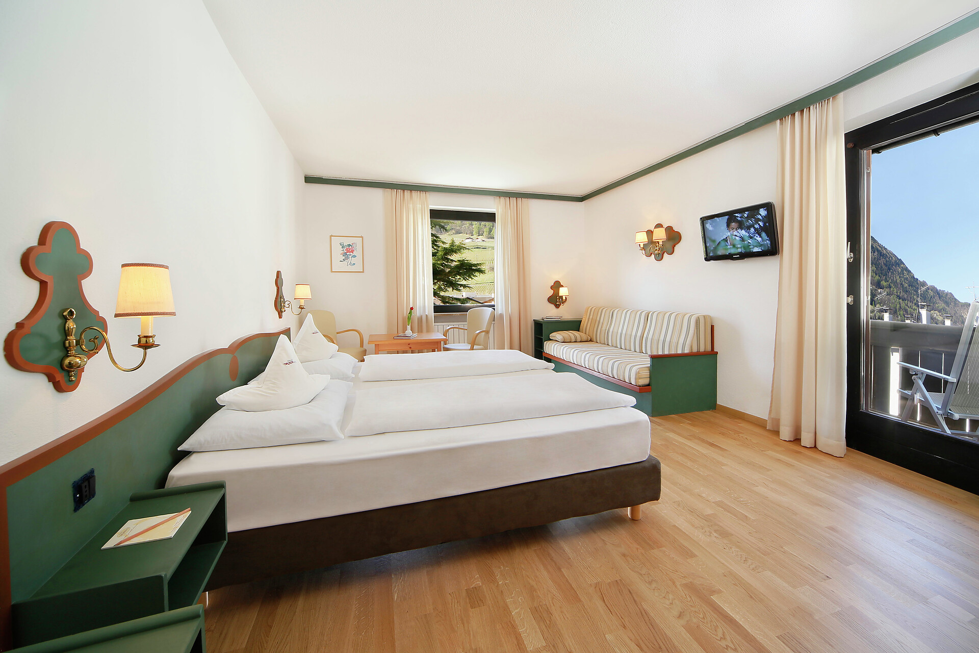 Camera doppia, Letto matrimoniale, Lettino , Divano letto, Balcone, Cassaforte, Doccia/bagno, Fon, Accappatoio, TV, TV satellitare/via cavo, WLAN, Edificio principale, Vista panoramica