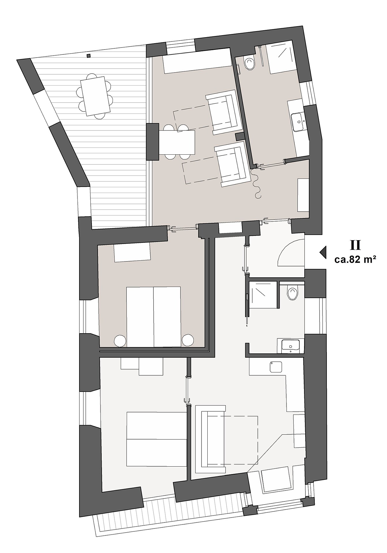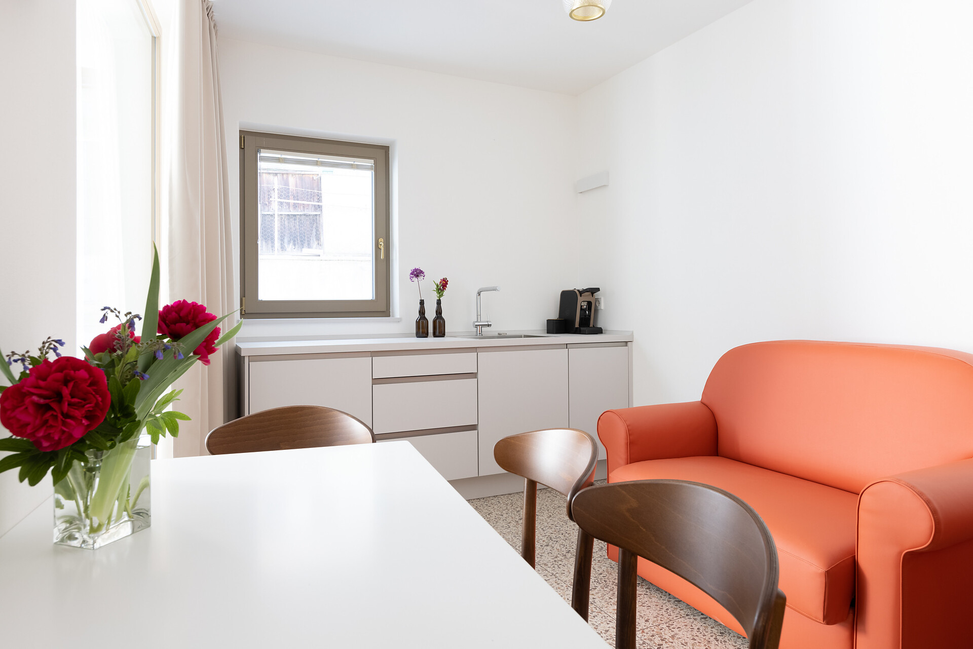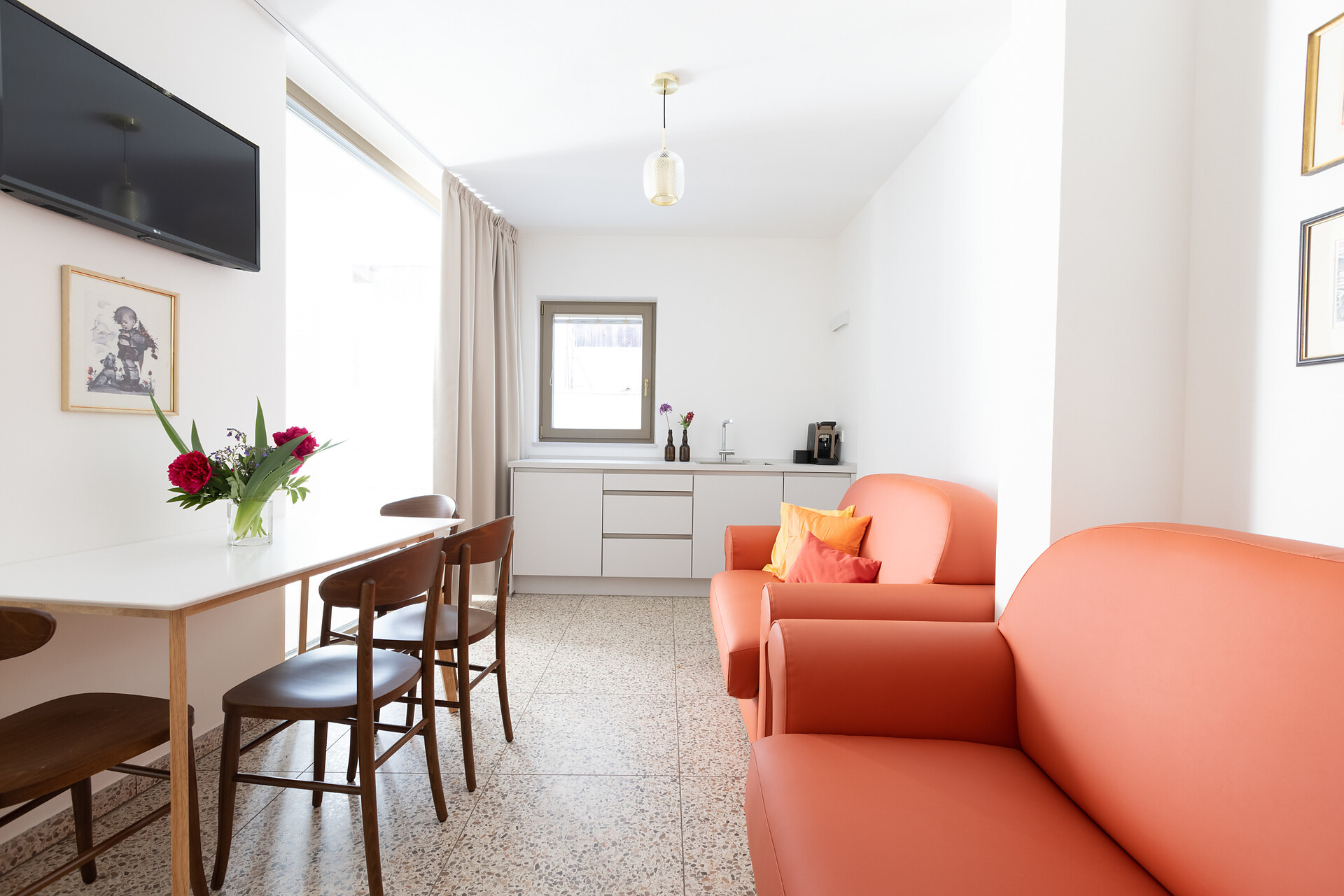 Per coppie, famiglie grandi e piccole e amanti della libertà che viaggiano da soli. I nostri cinque nuovi appartamenti per vacanze, progettati per ospitare da due a otto persone, si adattano in modo flessibile a ogni esigenza. Viaggiate in gruppo e state cercando una casa tutta per voi? Prenotando per tempo, avrete l'intera DOMUS FABER a vostra disposizione. Una sala comune con cucina e una terrazza con barbecue danno ampia possibilità di incontrarsi e passare tempo insieme.