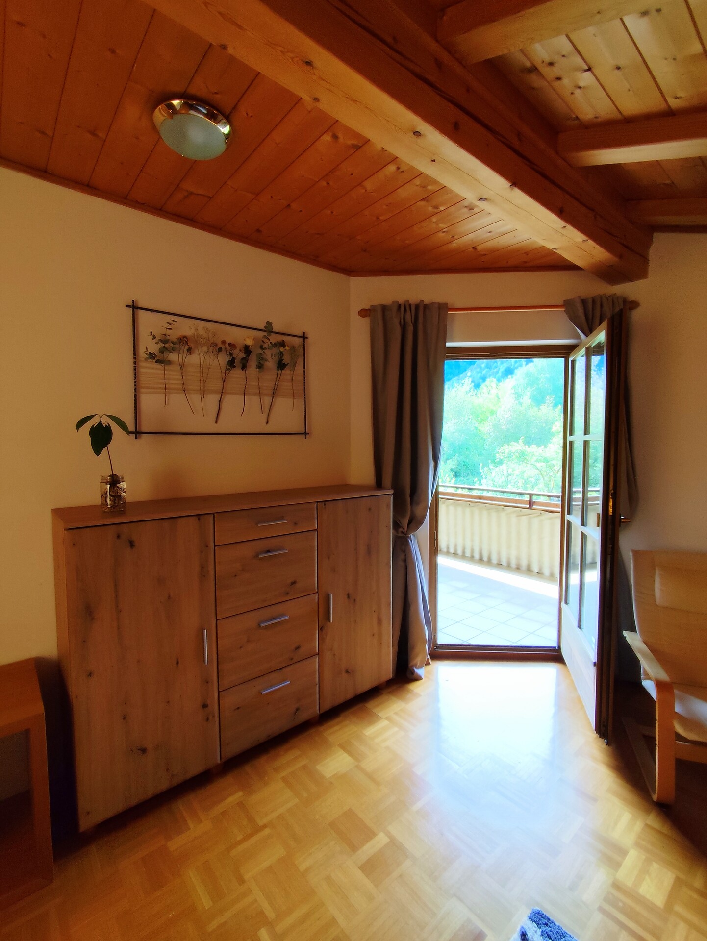 Godetevi il vostro caffè mattutino sul balcone esposto a nord con una fantastica vista sulla Val Venosta, mentre la sera potrete ammirare il giardino dalla tranquilla terrazza esposta a sud, accompagnati dal cinguettio degli uccelli o dal suono dei campanacci della vicina Tschirlander Heide.