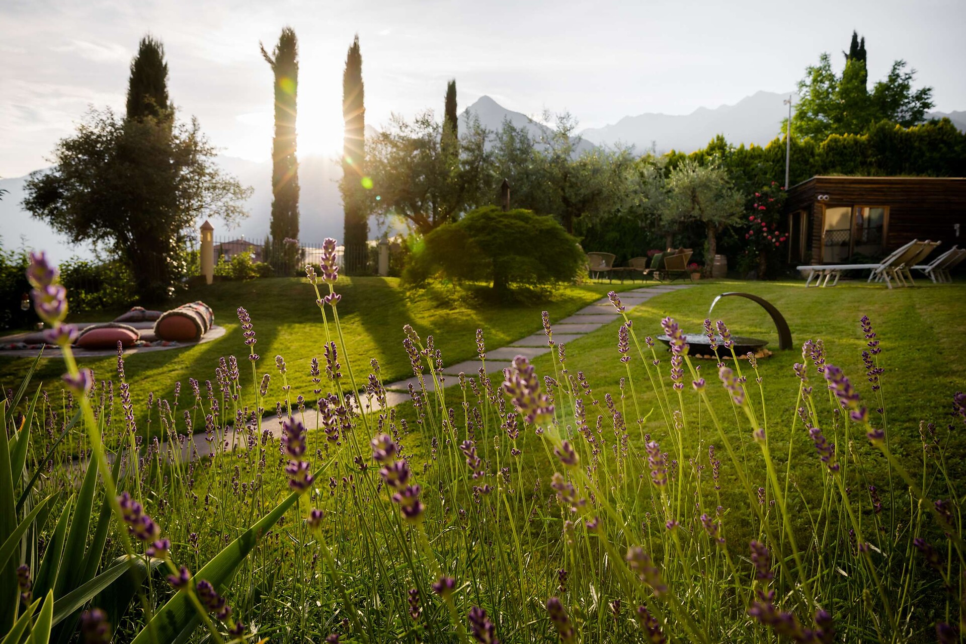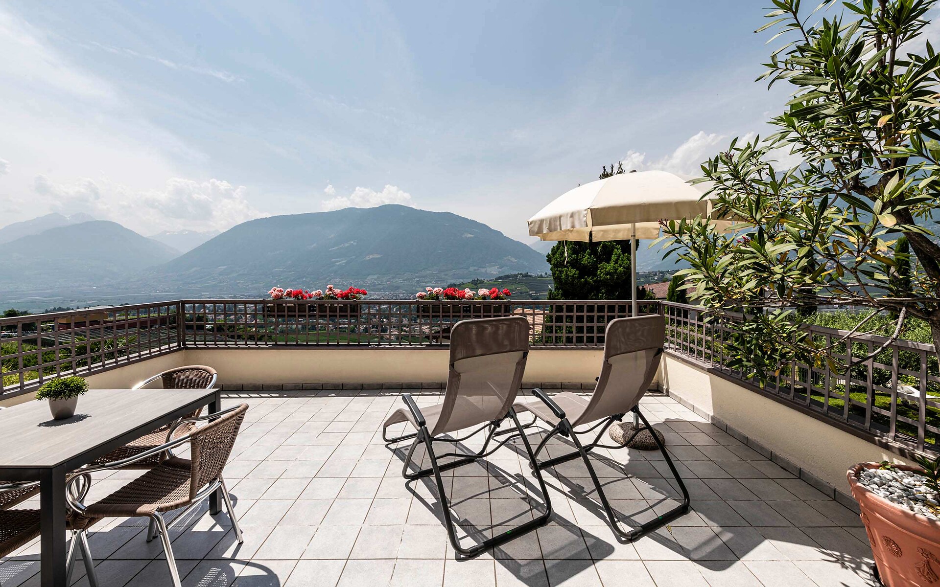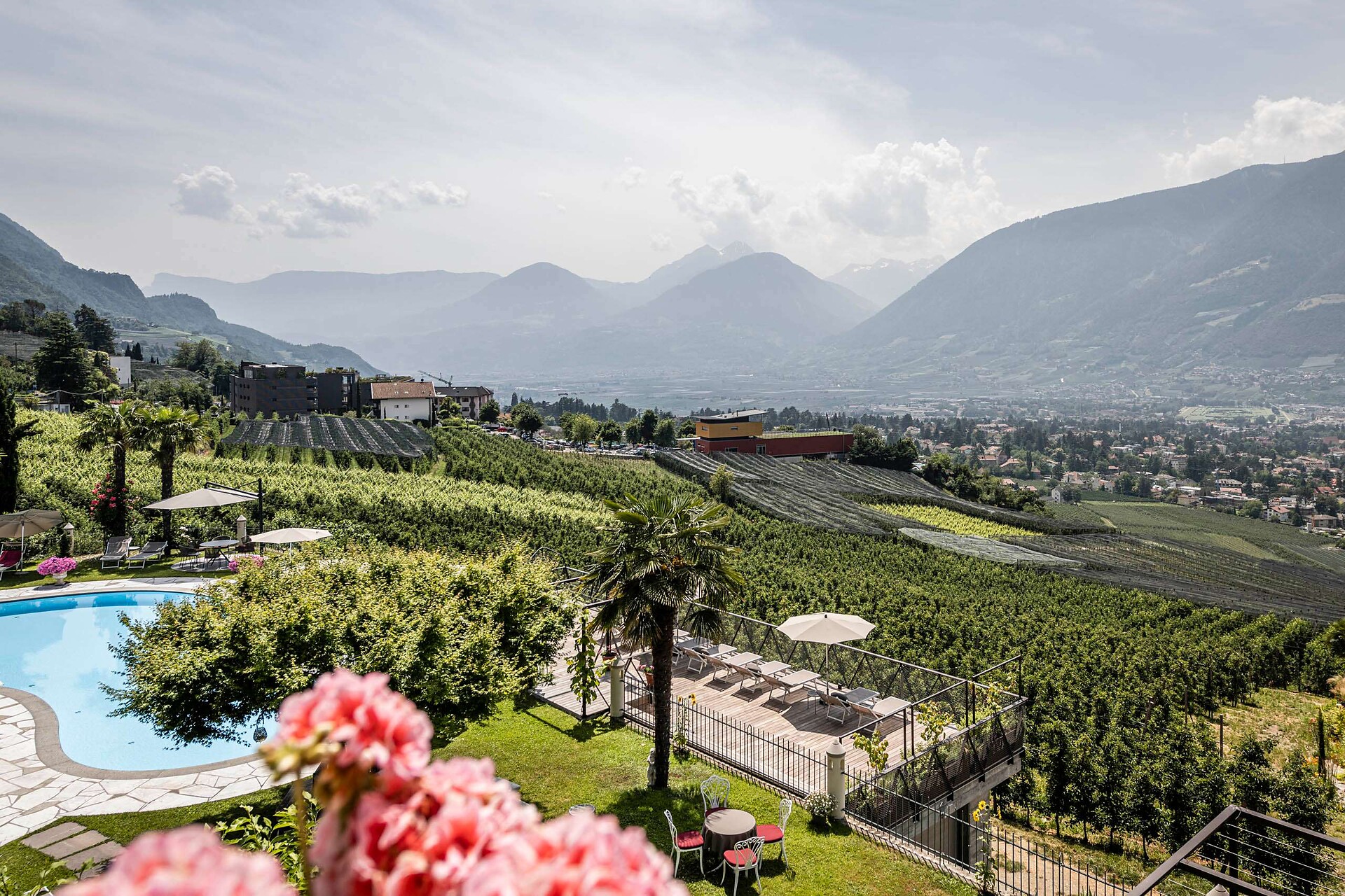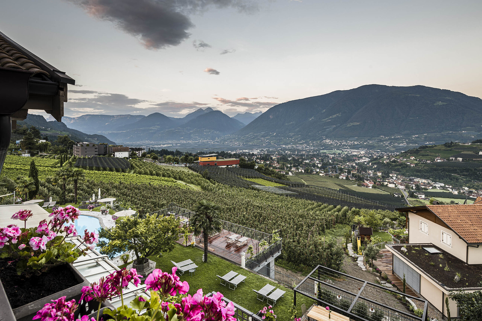 Lagrein un fascino del tutto particolare. L' hotel, circonadato da vigneti e frutteti é situato su un pendio soleggiato alle porte di Schenna a ca. 600 m di altitudine.