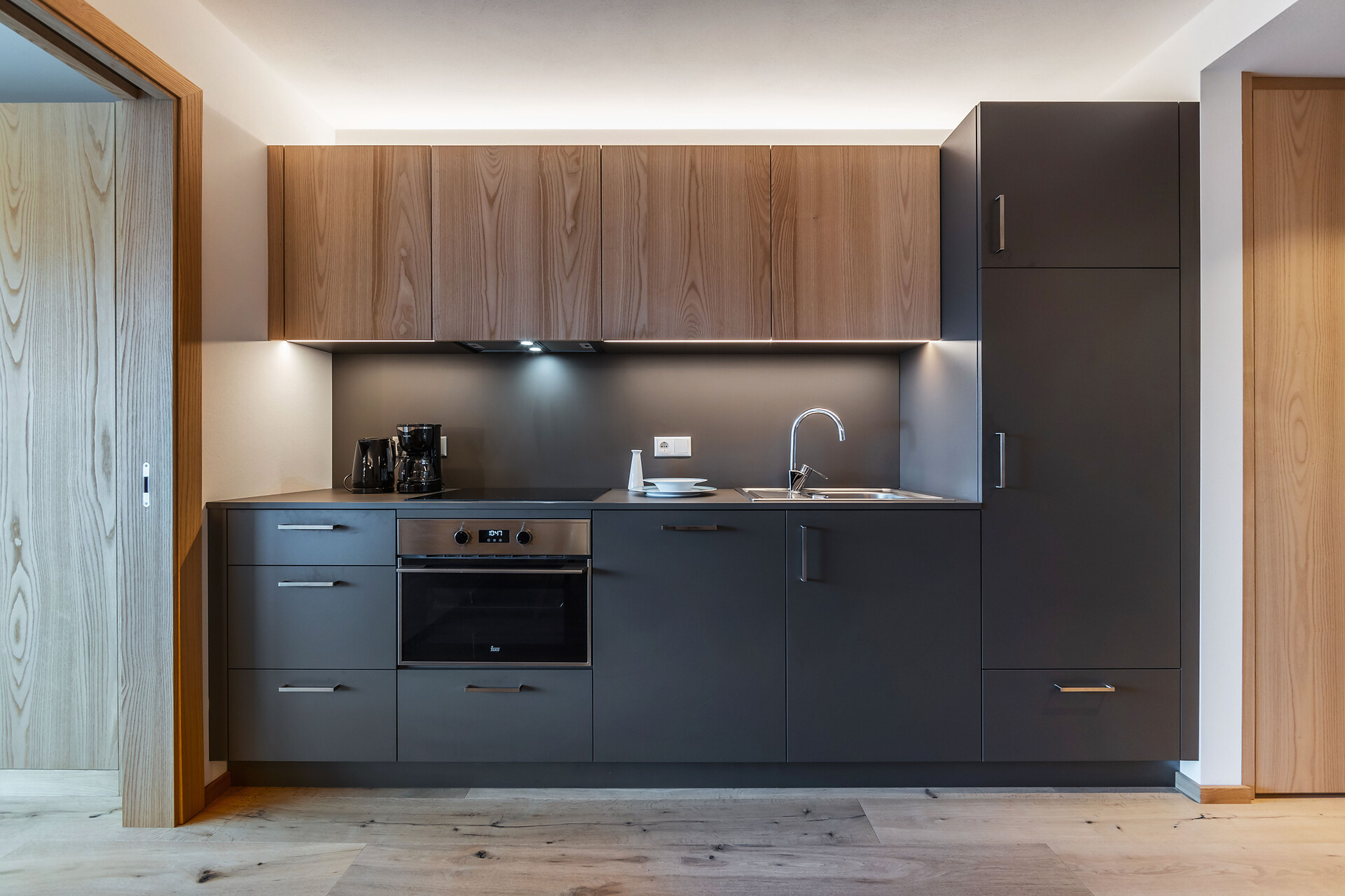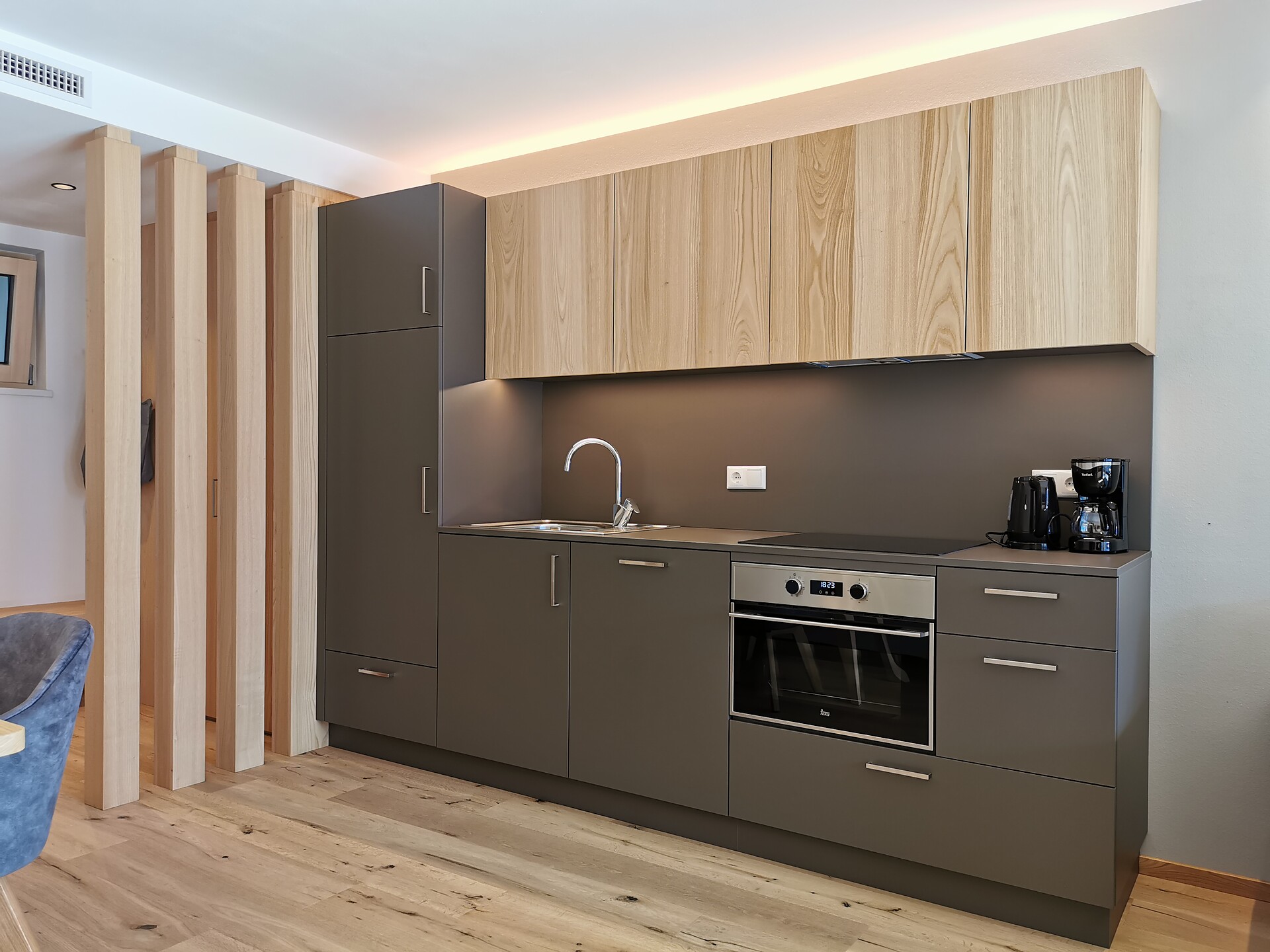 Già varcando la soglia potrete godere di un ambiente arredato con raffinato gusto e dimenticherete immediatamente preoccupazioni e pensieri, grazie alla vista sul nostro meraviglioso paesaggio montano. Sarete colpiti inoltre dall’intima e confortevole eleganza che caratterizza l’ambiente. Dimenticherete ogni pensiero durante una cena intima con il vostro partner sul nostro balcone di 15 mq godendovi il meraviglioso tramonto. • Cucina completamente attrezzata con lavastoviglie, frigo con comparto ghiaccio, forno, tostapane, moka, macchina per caffè americano, bollitore e stoviglie per mangiare e cucinare • Macchina da caffè 4 in 1 per caffè macinato, cialde ESE, capsule Dolce Gusto e Nespresso • Bagno con doccia senza barriere, WC, bidet, scaldasalviette, fon, prodotti per la cura e l’igiene • 15 mq di balcone panoramico con vista sulla vallata, 4 sedie, 2 sdrai e 1 tavolo • Camera da letto con letto king-size, secrétaire e vista sulla vallata • Entrata di generose dimensioni con antica panca, specchio e guardaroba • 43” 4K TV a schermo piatto, telefono, gratis WI-FI con internet a fibra ottica • Soggiorno-cucina con divano estraibile • Accappatoi, teli da sauna e ciabatte • Finestre a tutta altezza • Riscaldamento a pavimento • Stufa • Impianto di condizionamento • Privo di barriere architettoniche