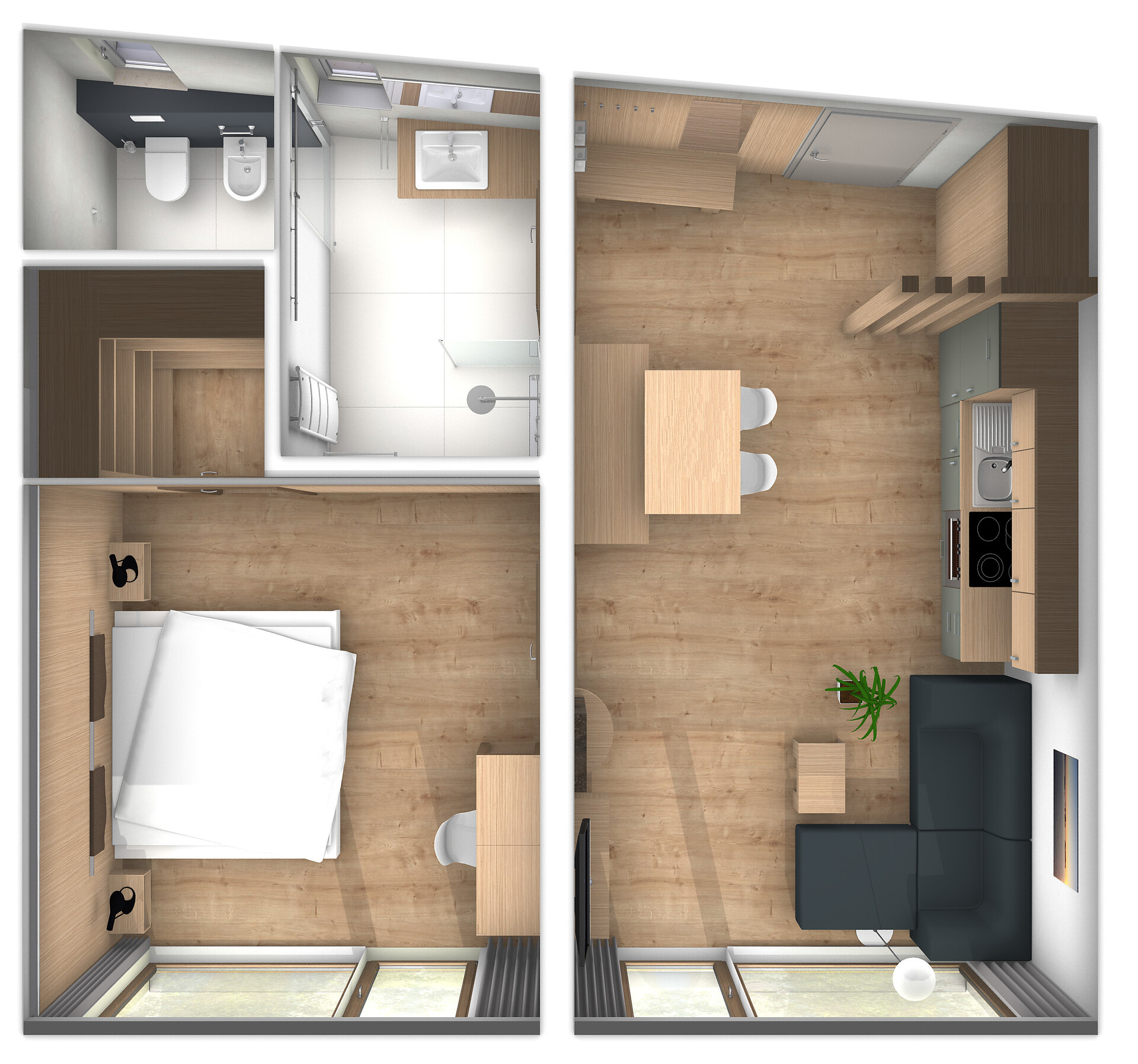 (per 2 - 3 persona/e | 50 m² | 2 appartamenti di questo tipo )
