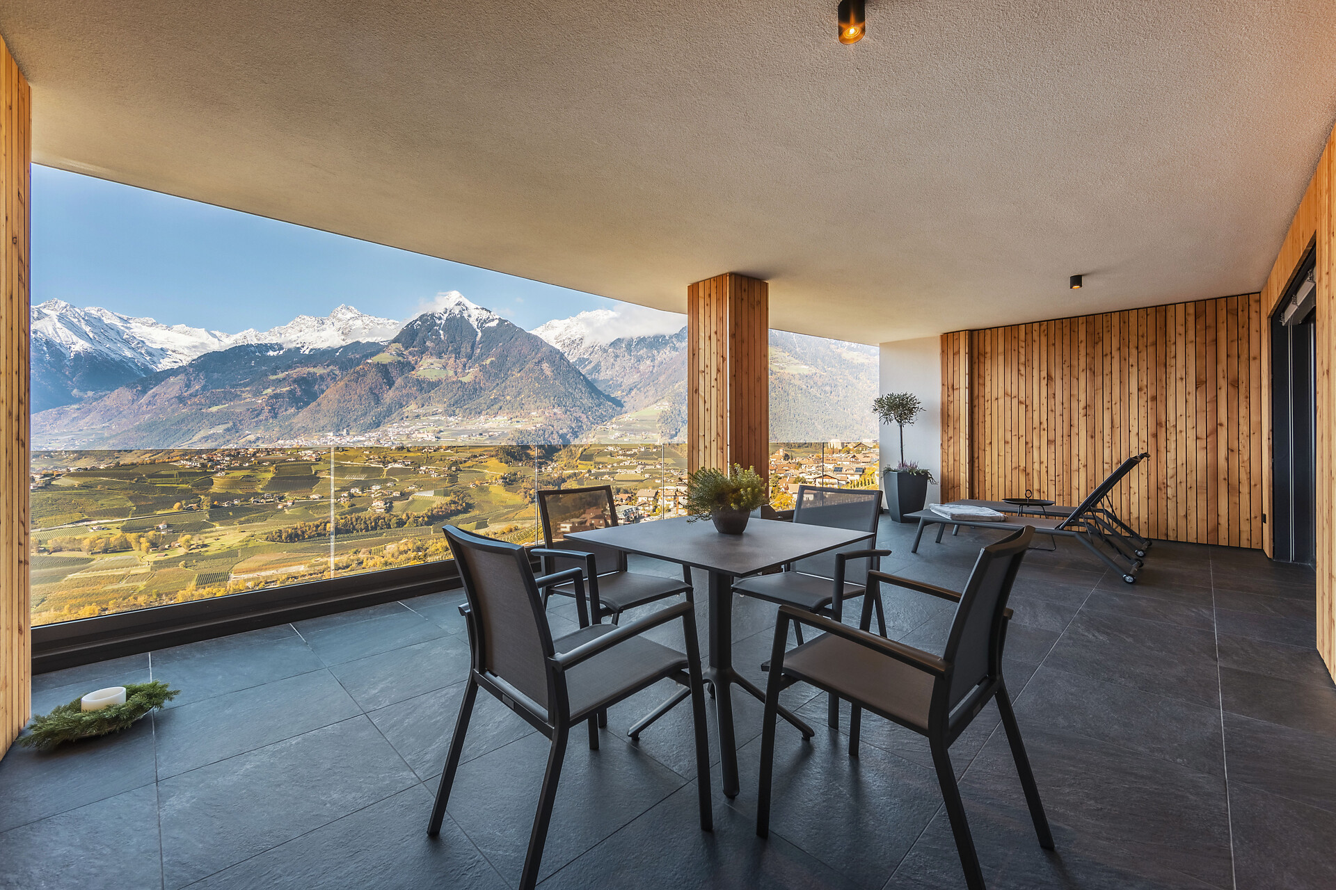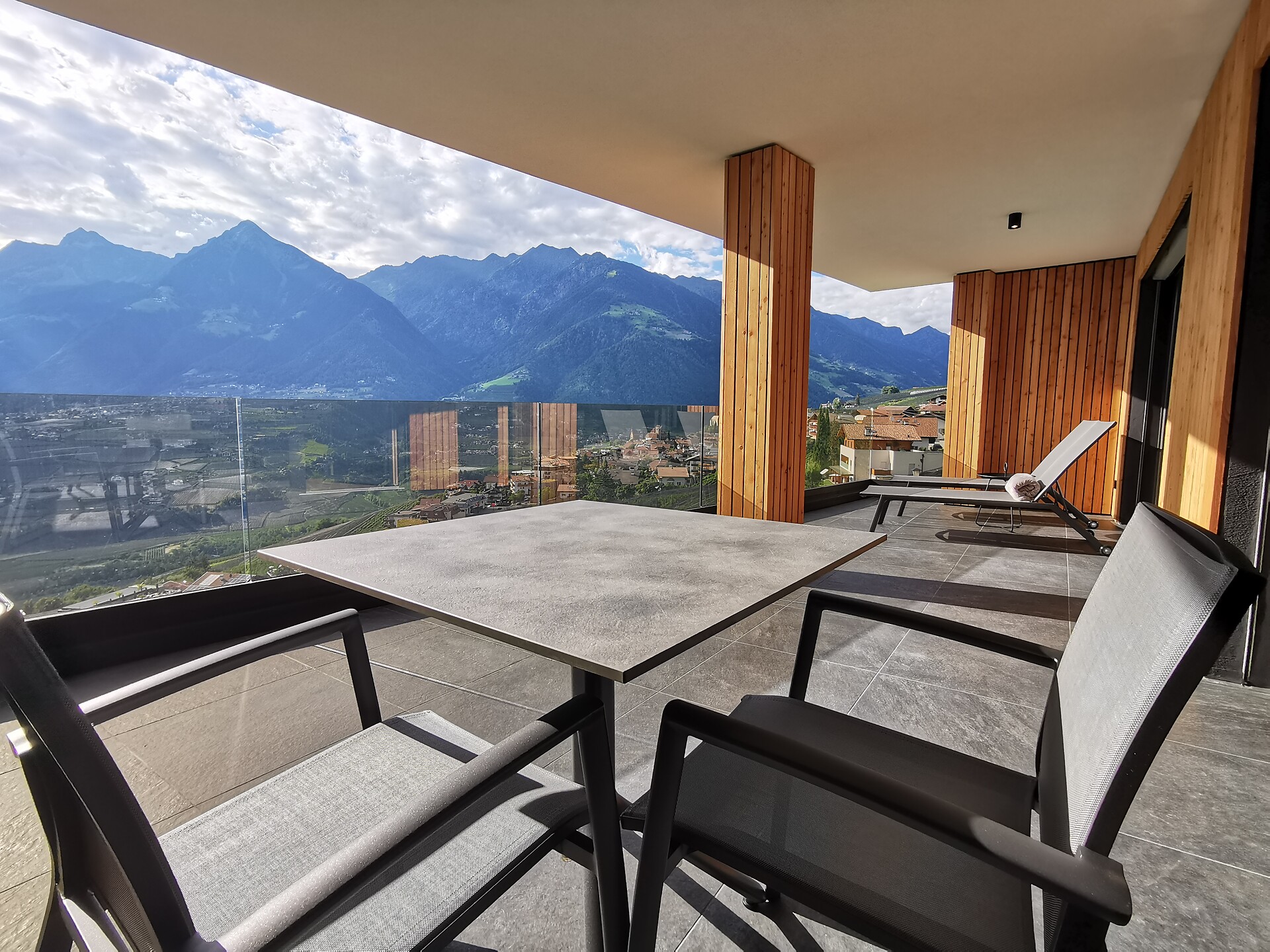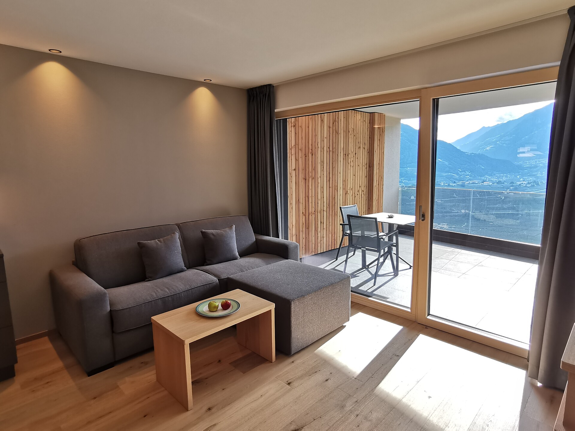 Nel complesso vi offriamo tre spaziosi appartamenti arredati in modo tale da garantirvi il massimo del comfort e del benessere. Tutti gli appartamenti sono dotati di un ampio balcone esposto a sud-ovest, da cui è possibile godere di un meraviglioso panorama su Merano e sulla regione del Burgraviato.