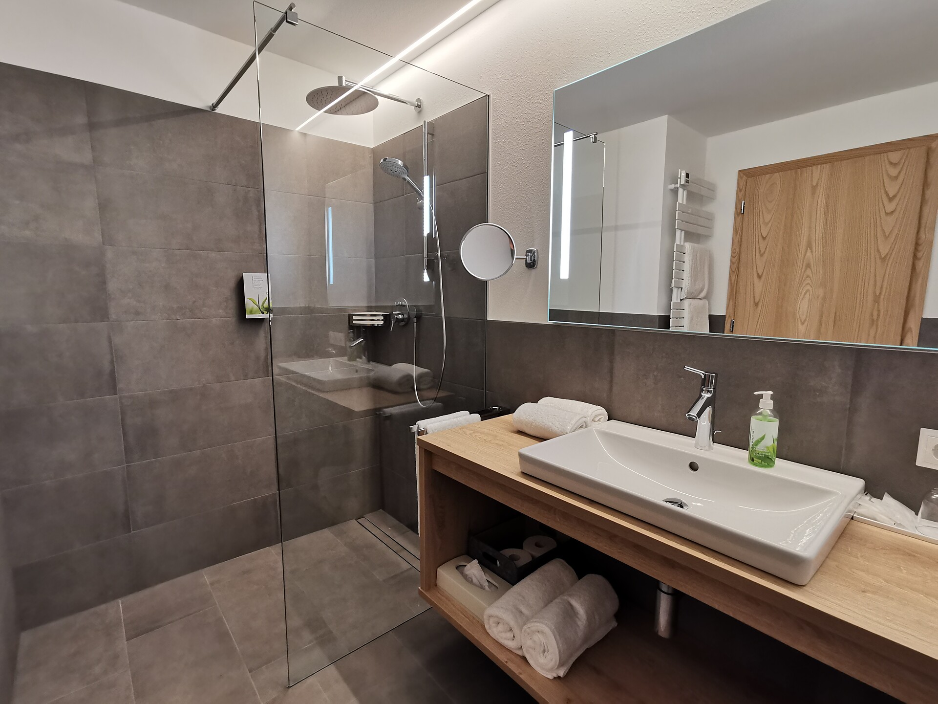 Godetevi le nostre montagne altoatesine da soli o in coppia facendo un bagno rilassante e distaccandovi dalla frenesia della vita moderna. Seduti nella vasca da bagno, dove troverete la miglior acqua sorgiva dell’Alto Adige e una vista panoramica spettacolare, vi sentirete viziati e dimenticherete facilmente ogni preoccupazione. Il bagno è stato progettato con una parete in vetro per potervi offrire questa esperienza unica. • Cucina completamente attrezzata con lavastoviglie, frigo con comparto ghiaccio, forno, tostapane, moka, macchina per caffè americano, bollitore e stoviglie per mangiare e cucinare • Macchina da caffè 4 in 1 per caffè macinato, cialde ESE, capsule Dolce Gusto e Nespresso • Bagno con doccia, WC, bidet, scaldasalviette, fon, prodotti per la cura e l’igiene • Vasca da bagno con vista sulle montagne attraverso una parete divisoria vetrata rivolta verso la camera da letto • 25 mq di balcone vetrato panoramico con vista sulla vallata, 2 sedie, 2 lettini e 1 tavolo • Camera da letto con letto king-size, secrétaire e vista sulla vallata • Entrata di generose dimensioni con antica panca, specchio e guardaroba • 43” 4K TV a schermo piatto, telefono, gratis WI-FI con internet a fibra ottica • Soggiorno-cucina con divano estraibile • Accappatoi, teli da sauna e ciabatte • Cabina armadio • Finestre a tutta altezza • Riscaldamento a pavimento • Impianto di condizionamento • Stufa • Privo di barriere architettoniche
