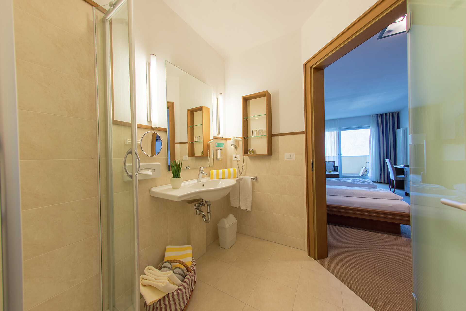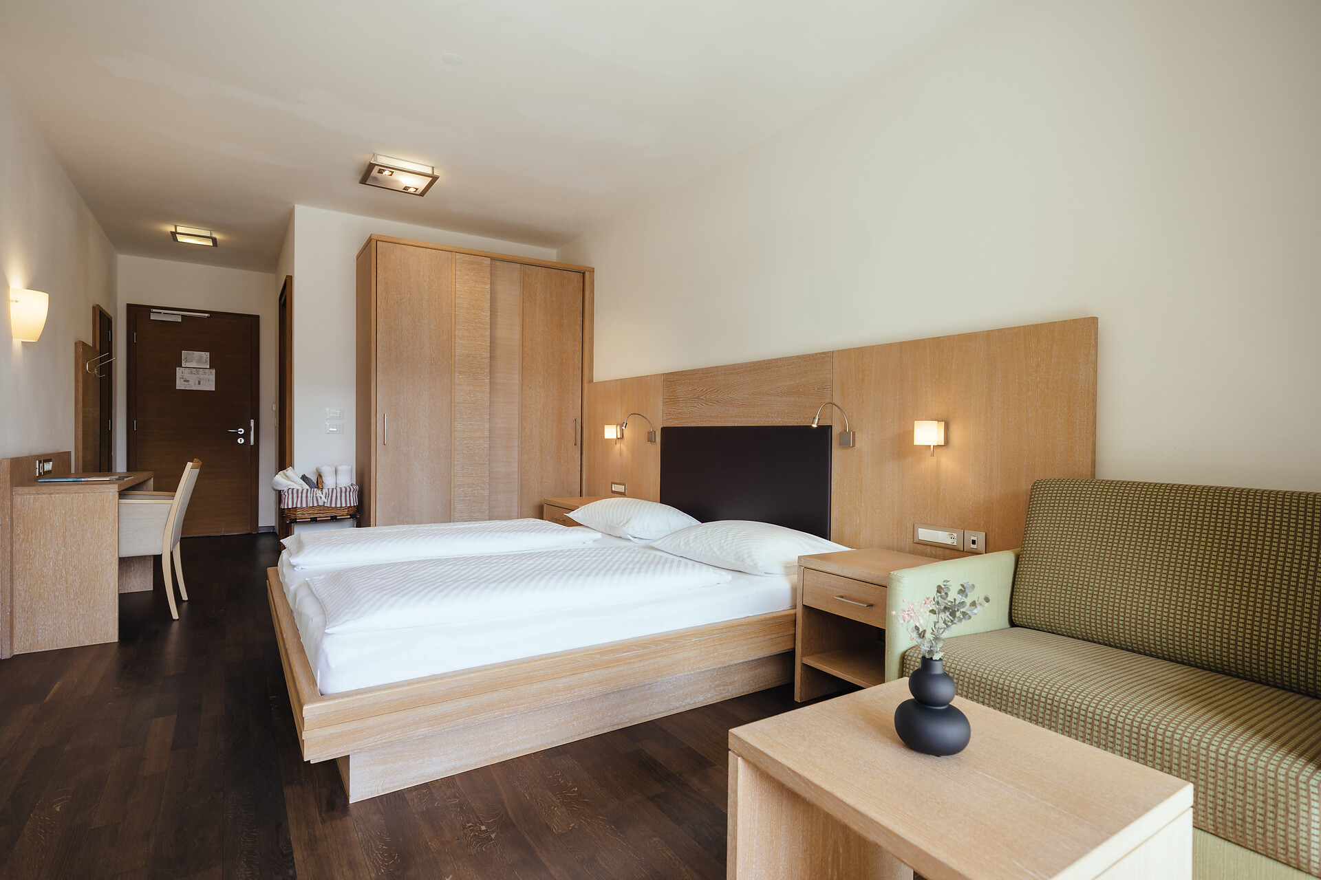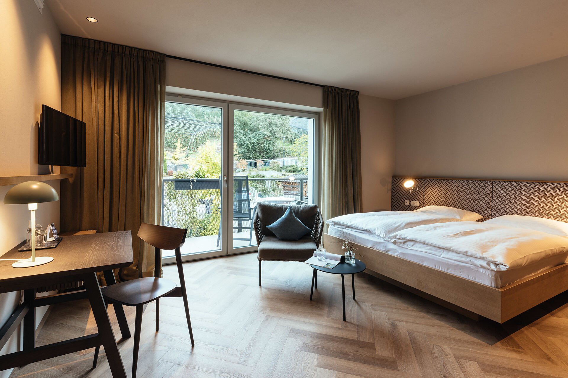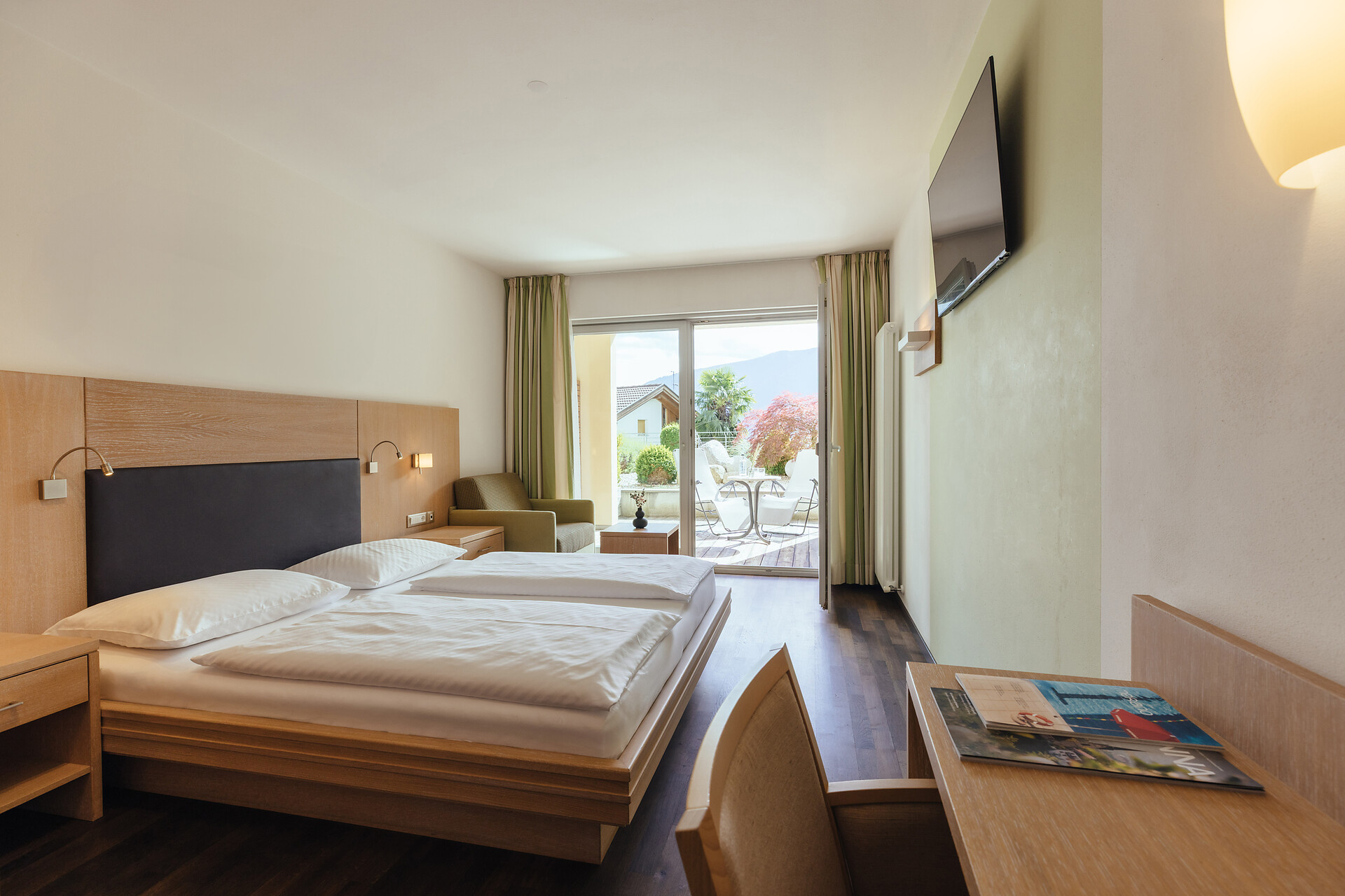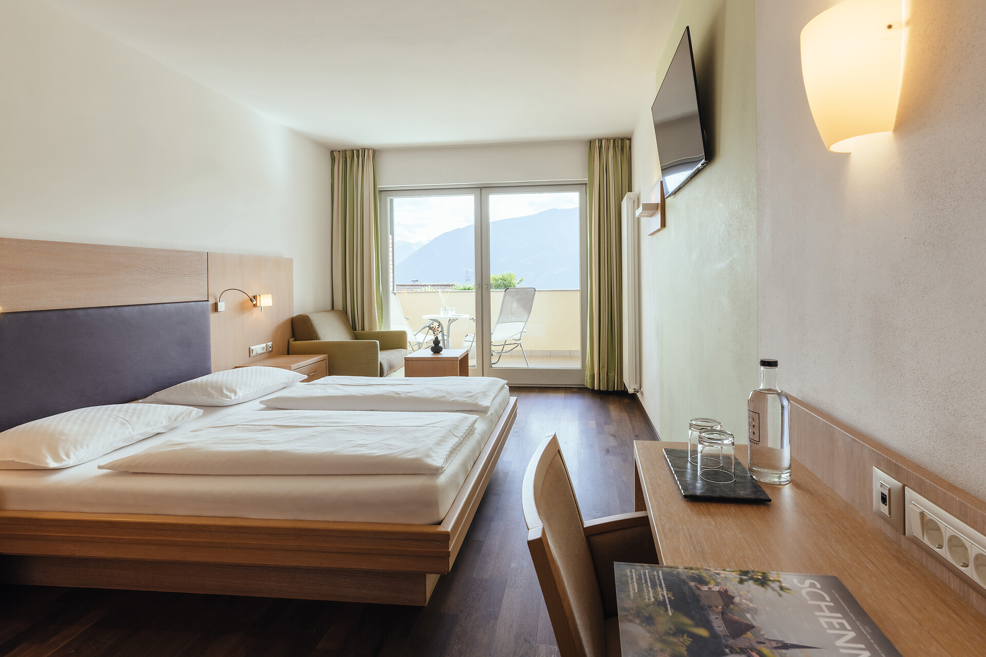camera 24 m² con balconea sud 2. o 3. piano, doccia/WC, tv, telefono, camera non fumatori, pavimento in legno.
