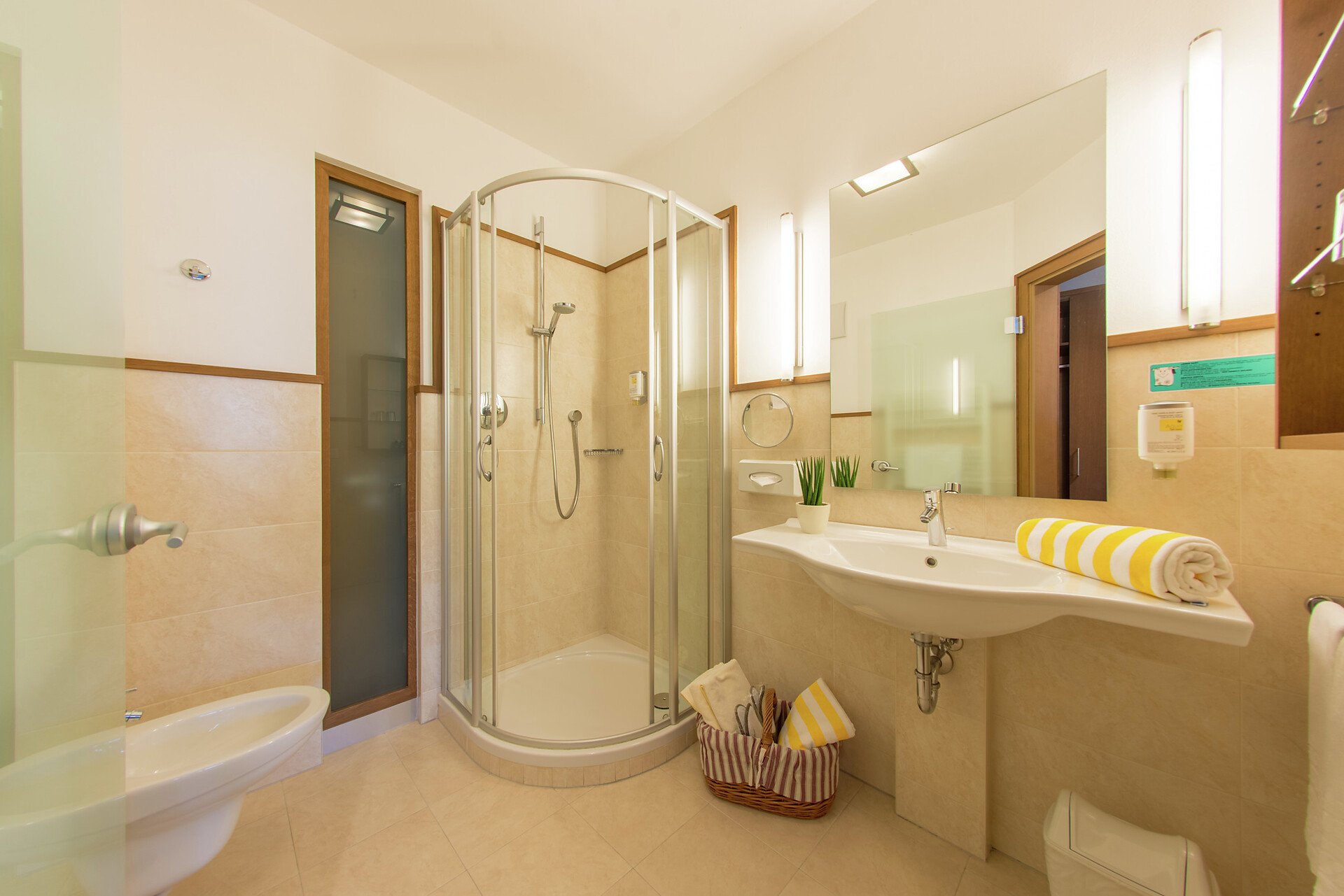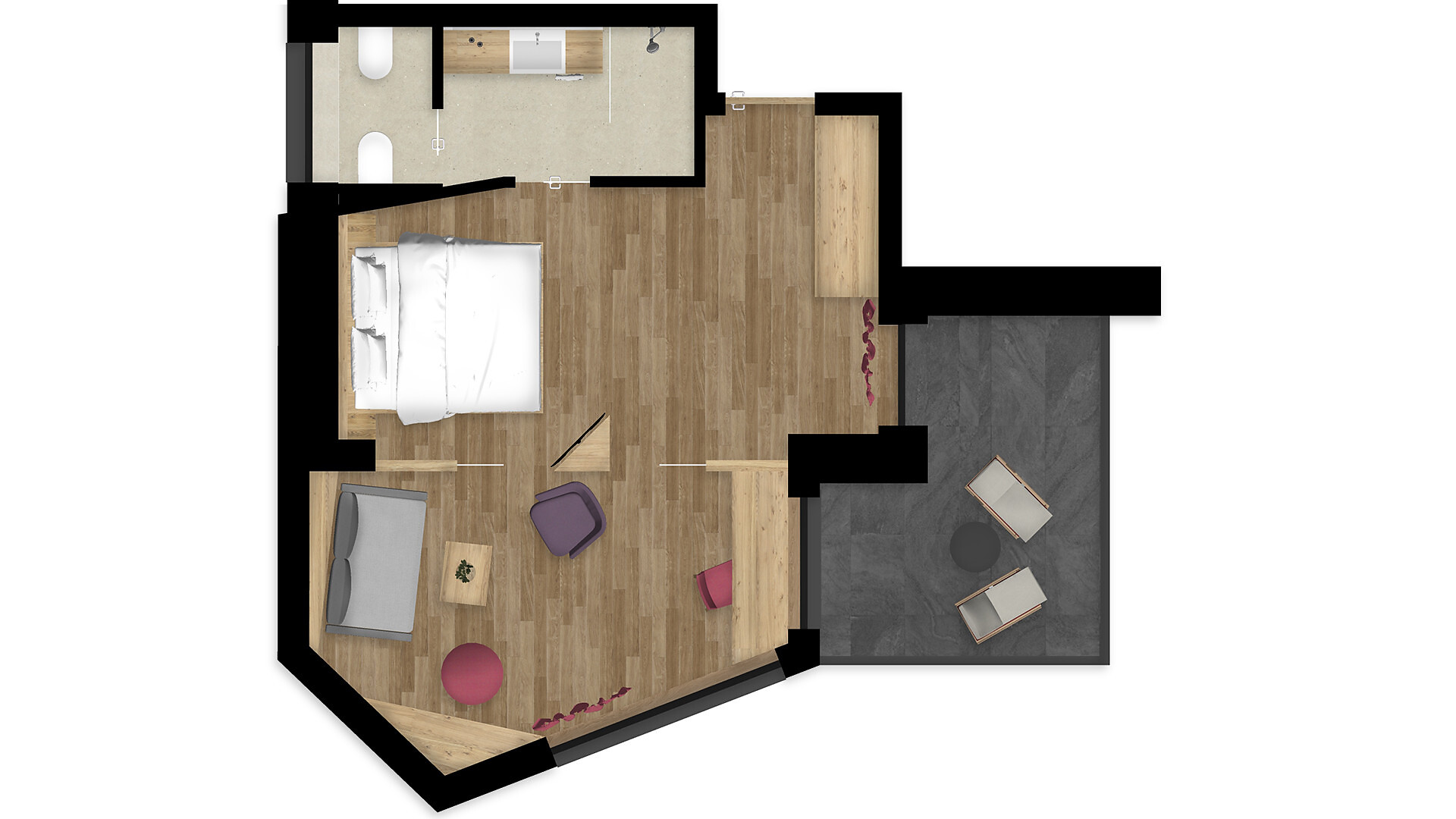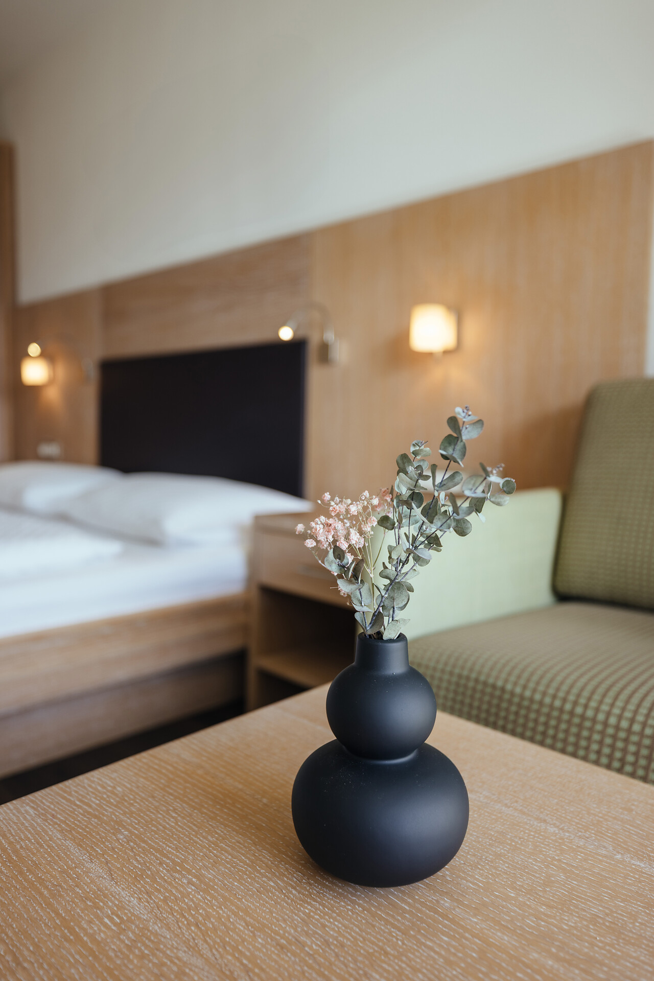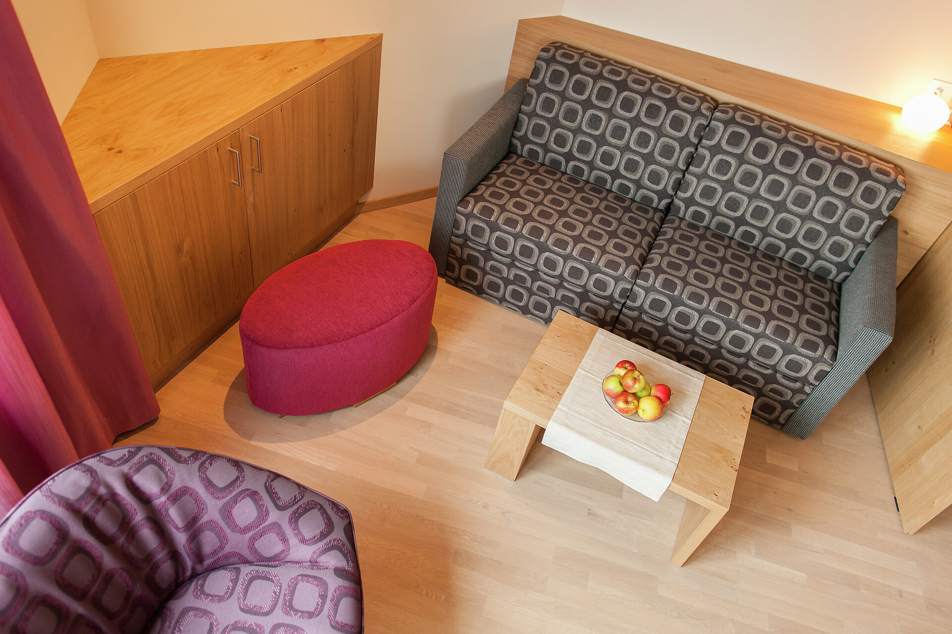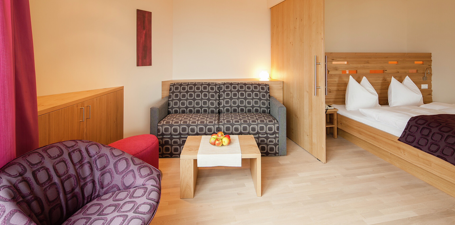 camera 24 m² con balconea sud 2. o 3. piano, doccia/WC, tv, telefono, camera non fumatori, pavimento in legno.