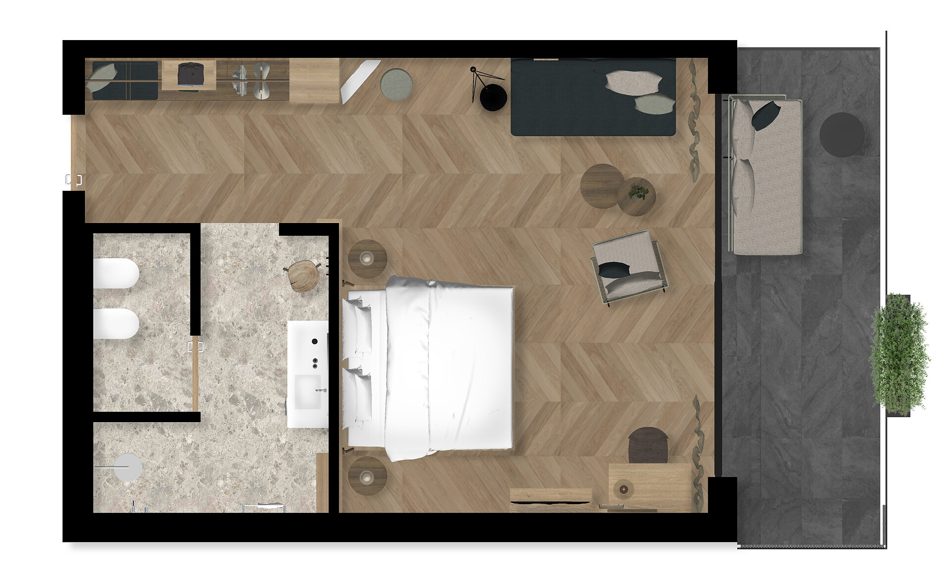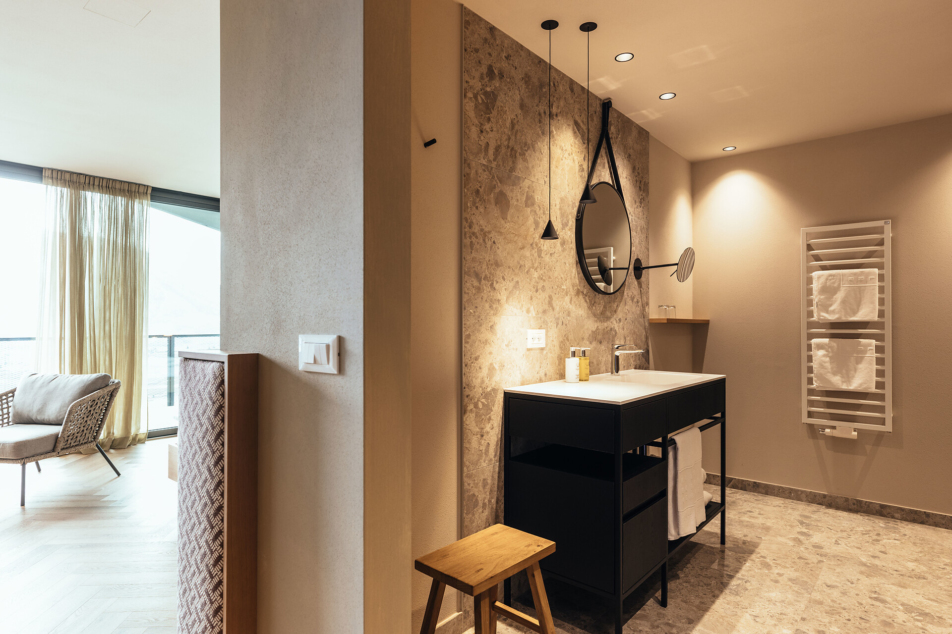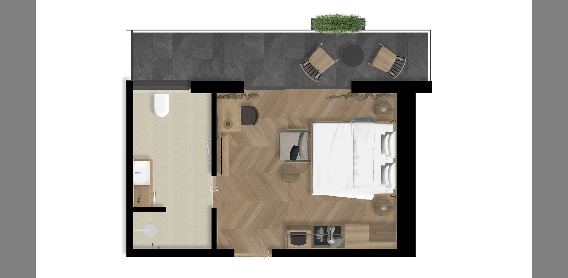 camera matrimoniale 25m², con balcone sud, pavimento in legno, doccia/WC & bidet, divano,TV, frigorifero, camera non fumatori, aria conditionata.