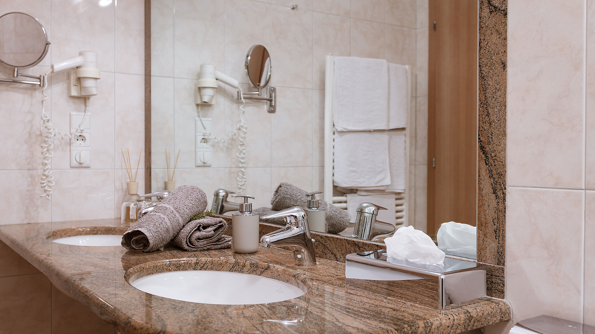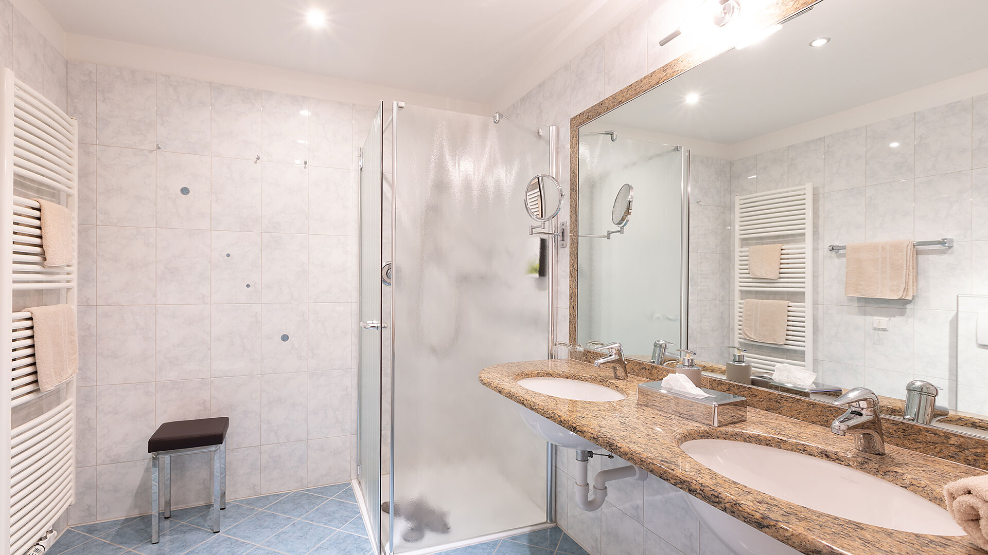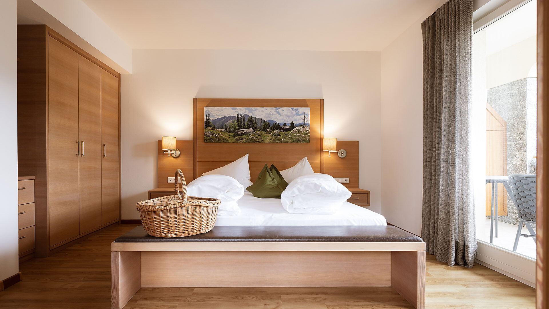 Allestimento: Camera doppia, Letto matrimoniale, Camera antiallergica , Cassaforte, Doccia/bagno, Fon, TV, TV satellitare/via cavo, WLAN, Collegamento internet , Edificio principale, Vista panoramica