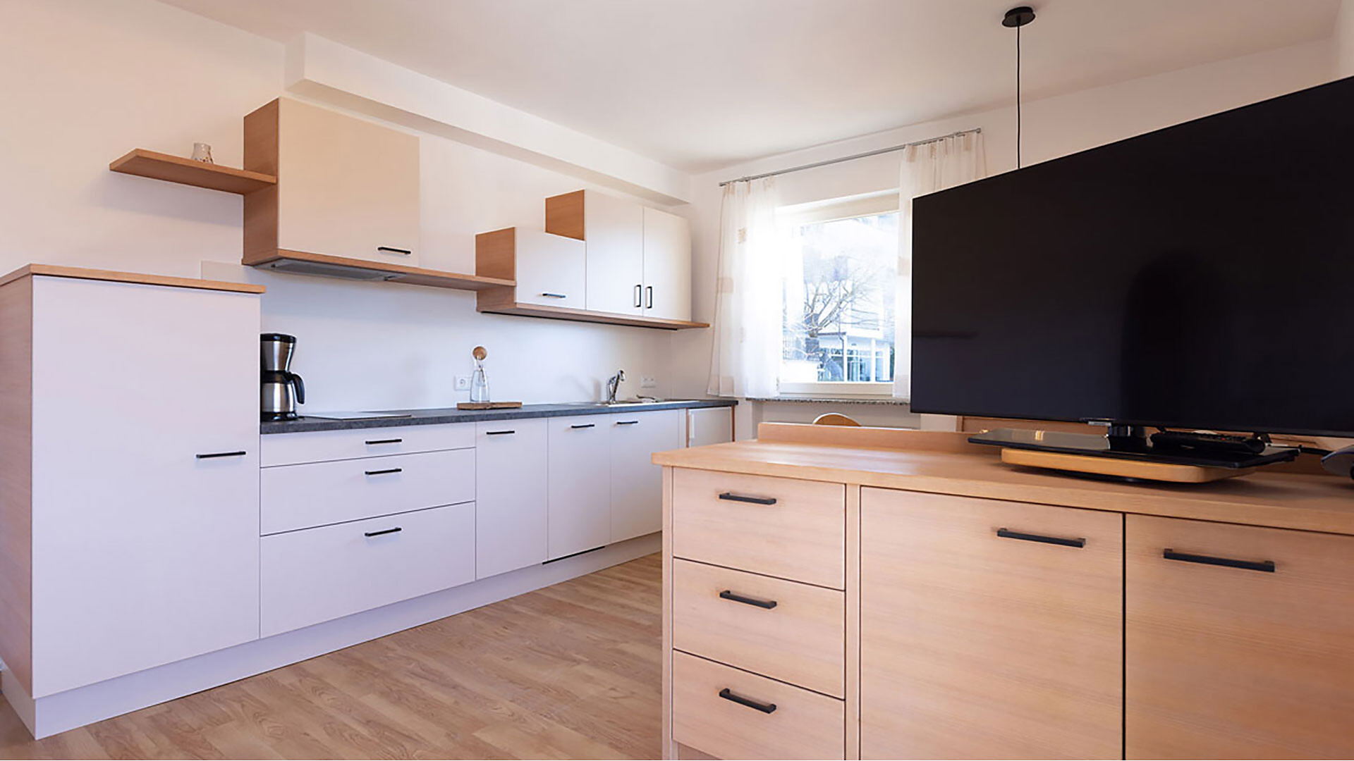 Allestimento: Letto matrimoniale, Letto aggiuntivo, Lettino , Balcone, Camera antiallergica , Senza barriere architettoniche , Soggiorno separato, Biancheria da letto disponibile, Cassaforte, Cucina abitabile, Macchina da caffè, Lavastoviglie, Piano cottura elettrico, Forno a microonde, Stoviglie, Scaldaacqua, Doccia / bagno, Fon, Asciugamani, HiFi, TV, TV satellitare/via cavo, WLAN, Collegamento internet , Pulizia su richiesta, Pulizia finale inclusa, Edificio principale, Vista panoramica