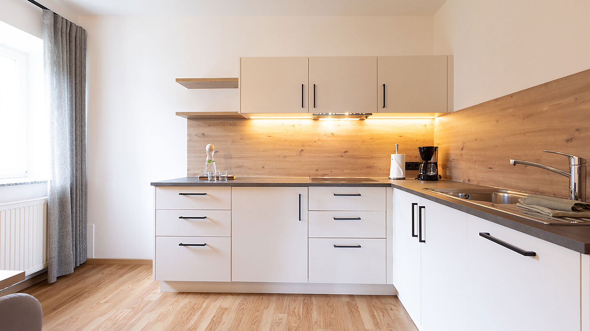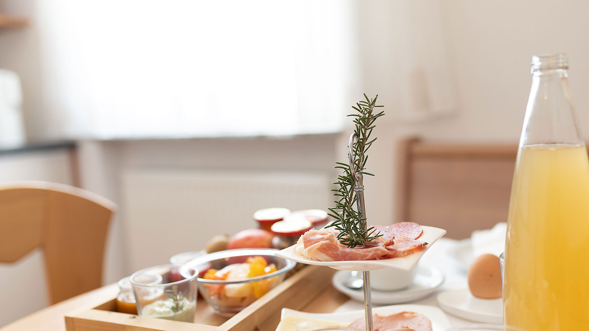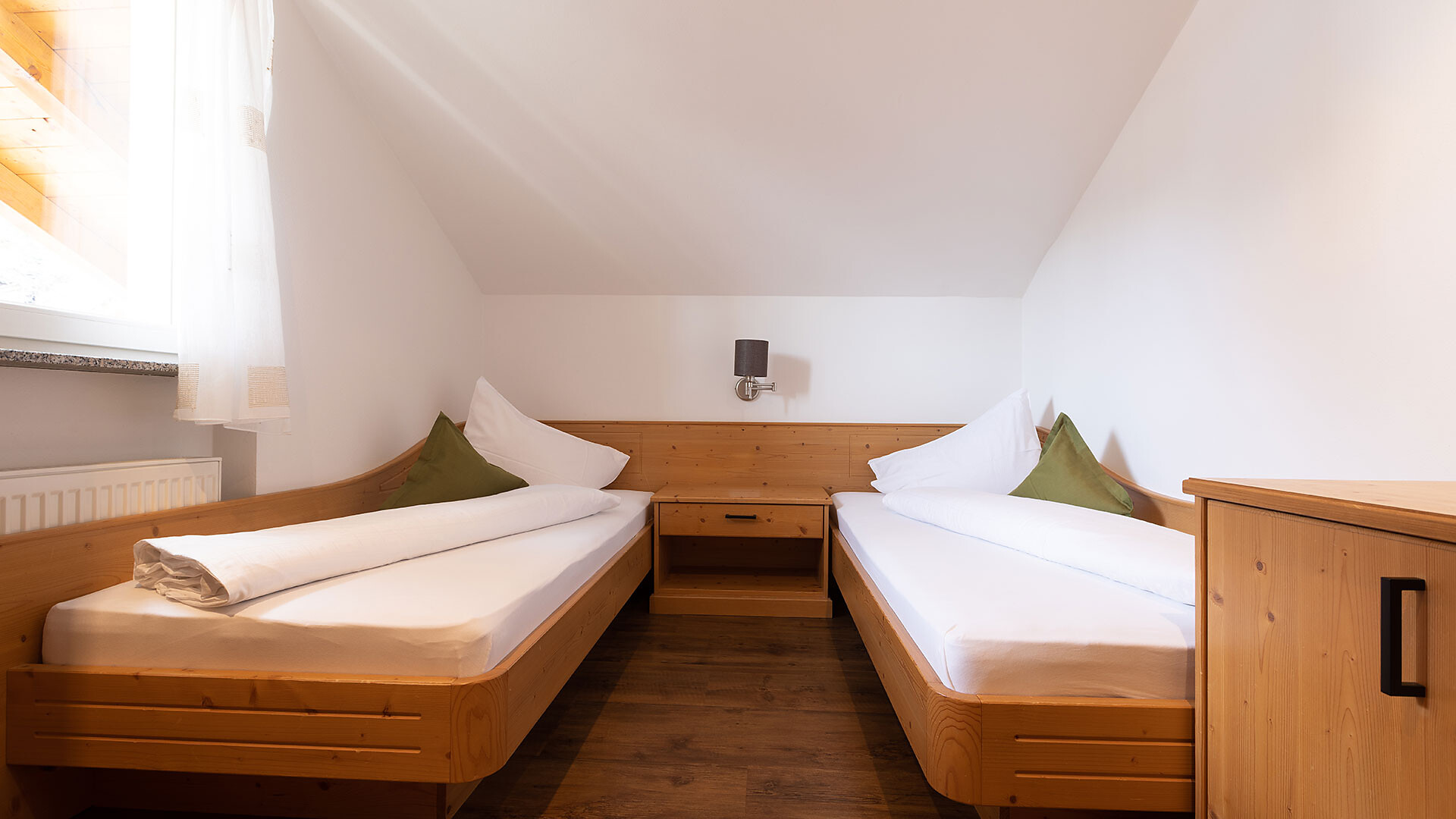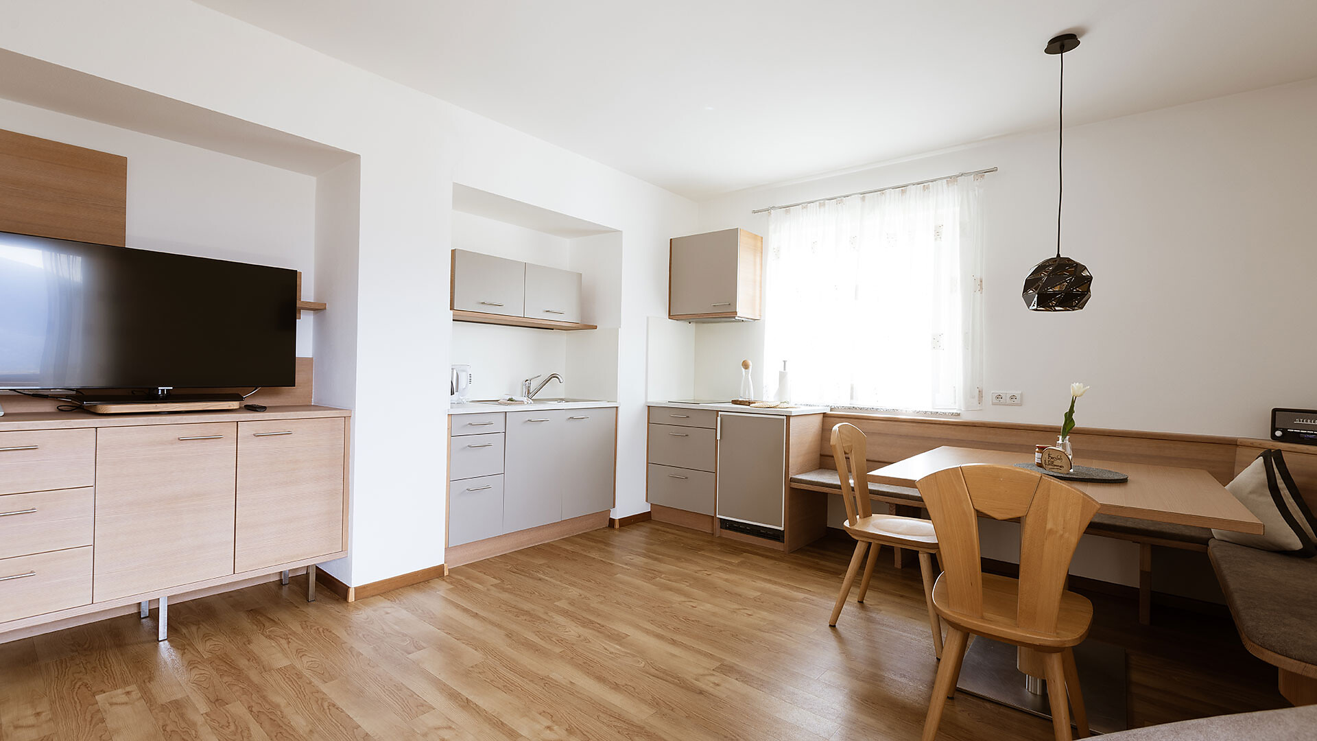 Appartamento ideale per 2-4 persone, dotato di camera matrimoniale, soggiorno con divano letto, cucina con lavastoviglie, bagno, cassaforte, asciugacapelli, telefono, radio, TV satellitare, WiFi. La terrazza rivolta a sud offre una vista panoramica su Merano e dintorni.
