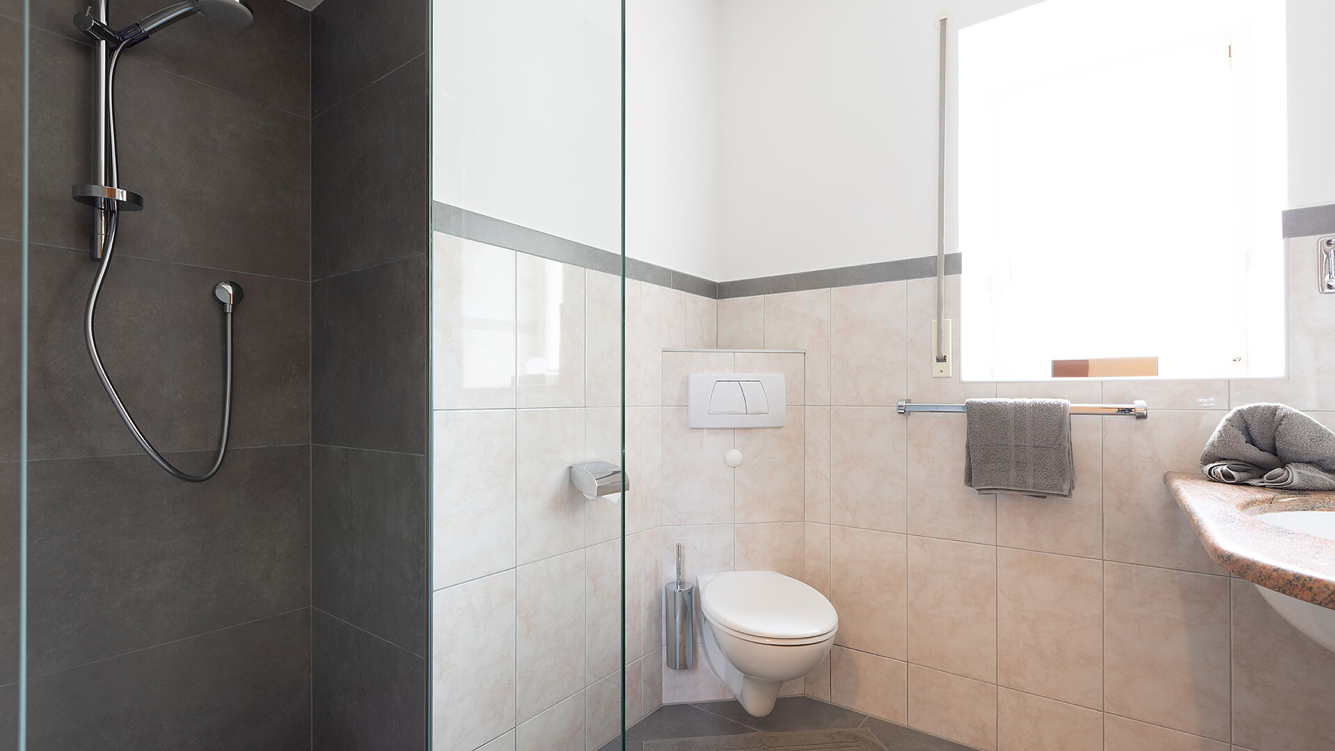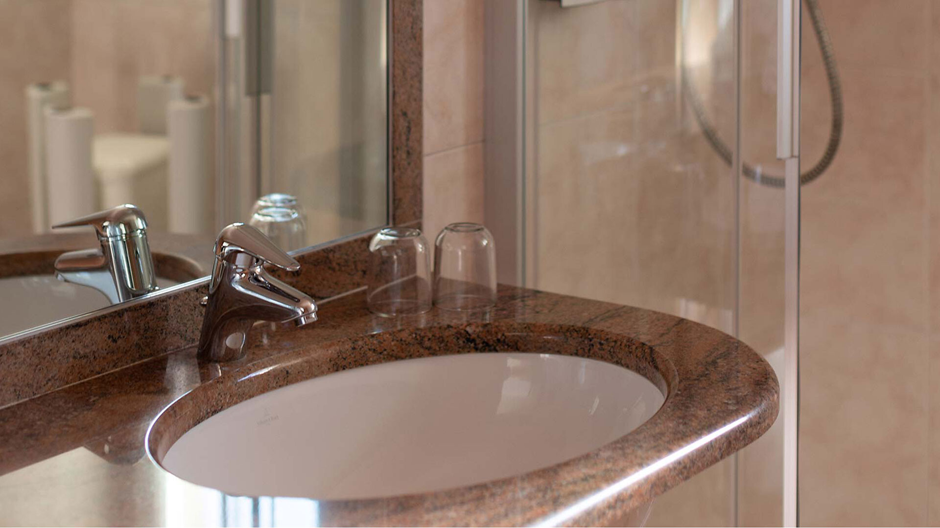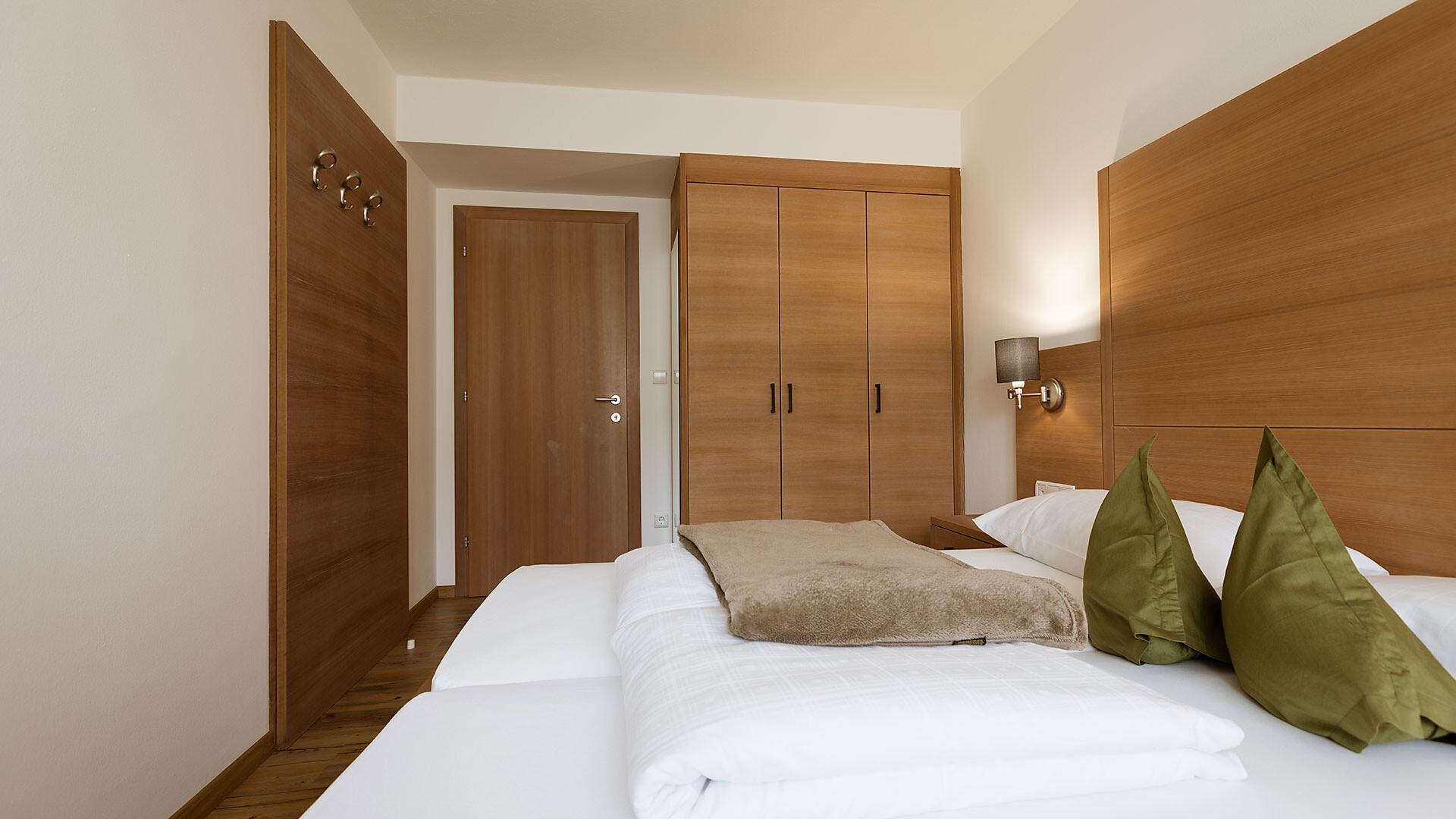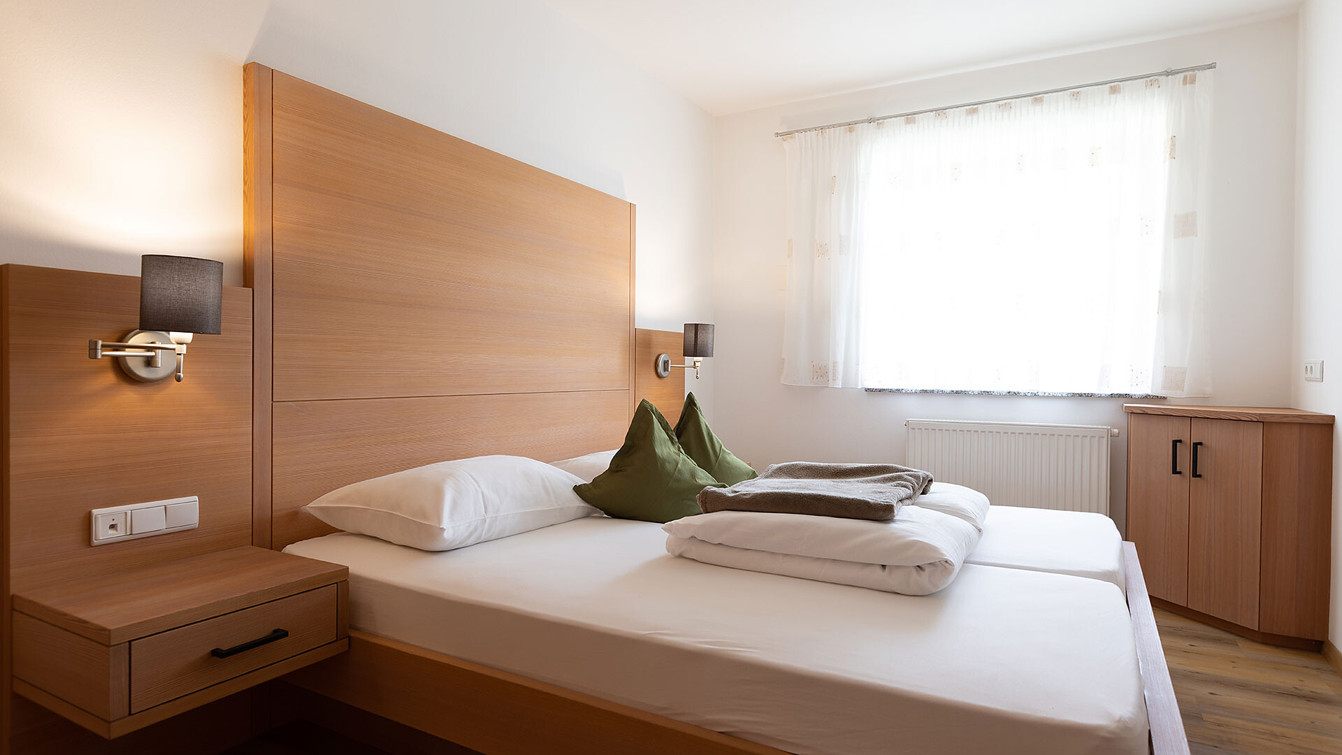 Camera doppia (ca. 17 m²) con doccia/WC/asciugacapelli, cassaforte, telefono, radio, TV satellitare. Può essere prenotata insieme a qualsiasi appartamento.