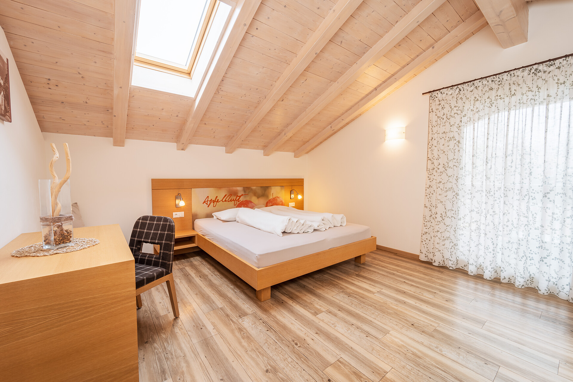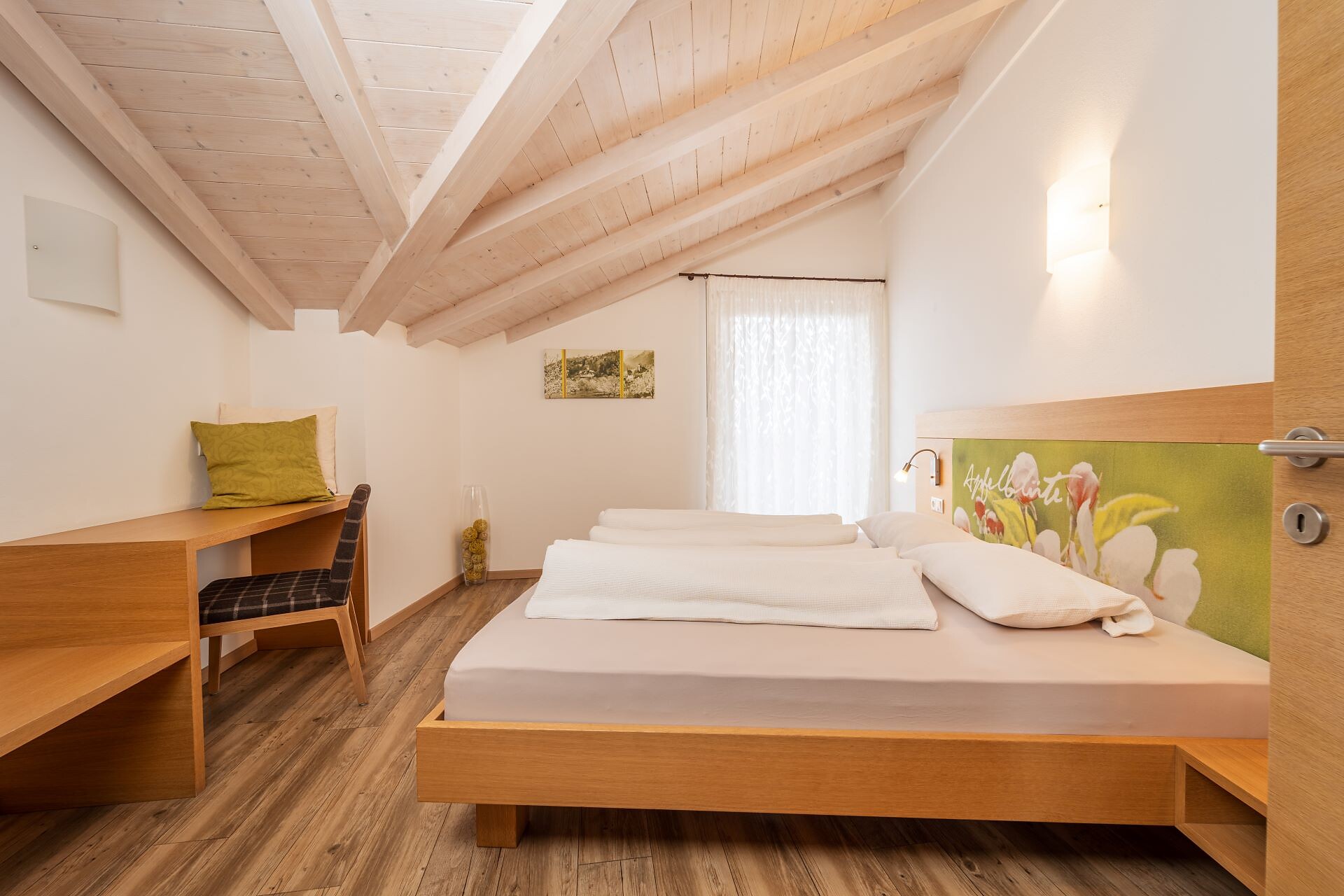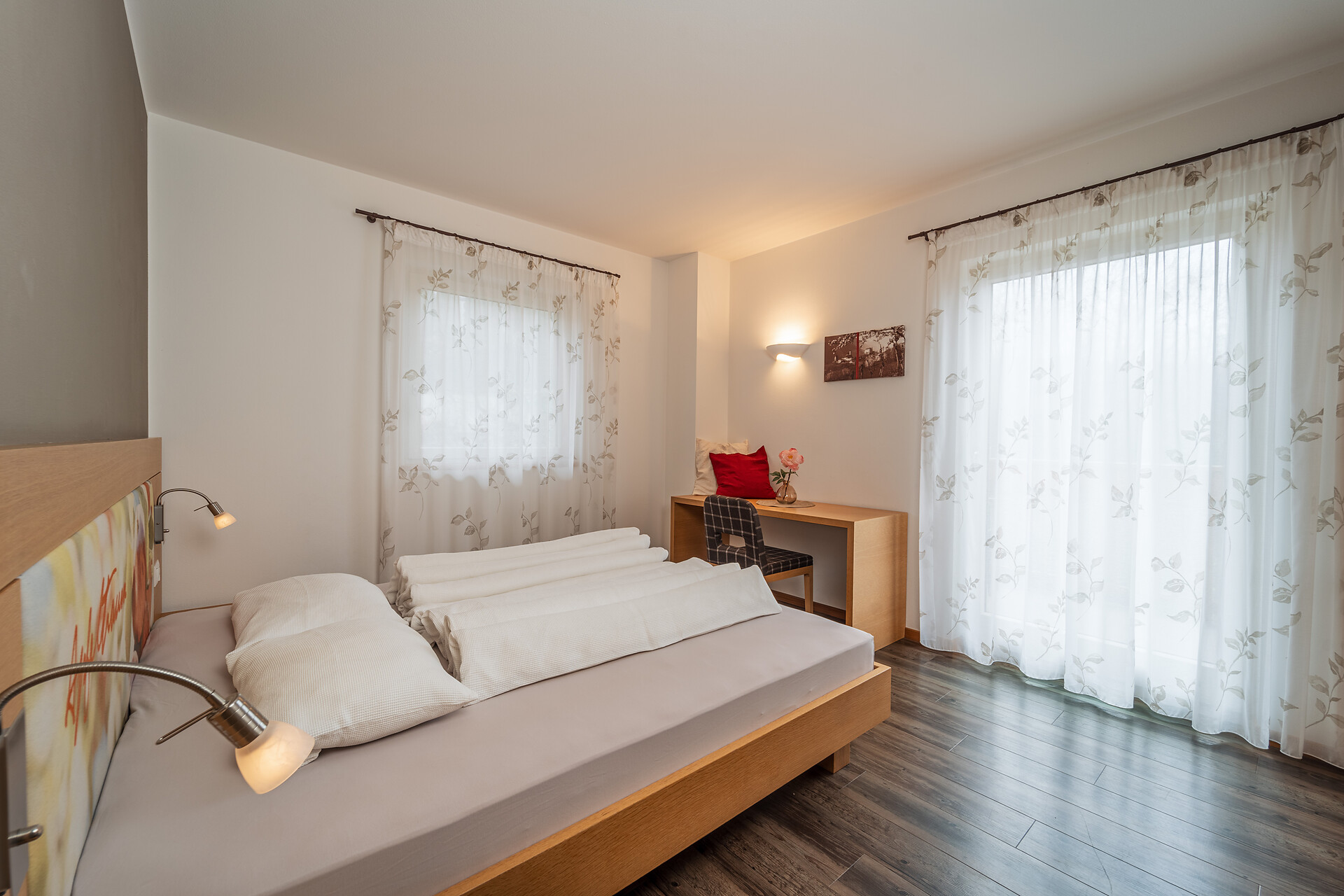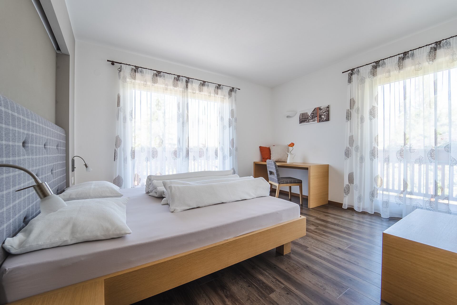 Il nostro ampio appartamento "Sogno di Mela" è l’ideale per famiglie o gruppi più numerosi. Con 2 camere da letto separate (ognuna con due letti matrimoniali) e un divano letto estraibile, offre spazio e comfort anche per gruppi più grandi. La cucina completamente attrezzata e il bagno completano l’arredamento.