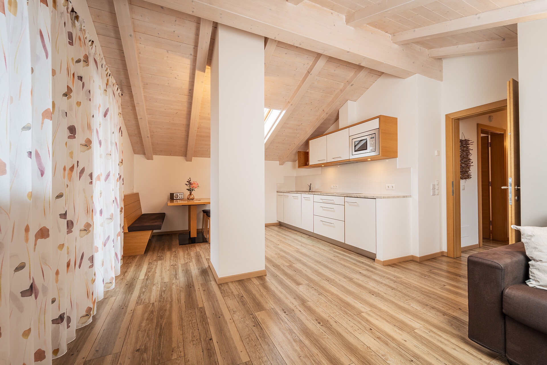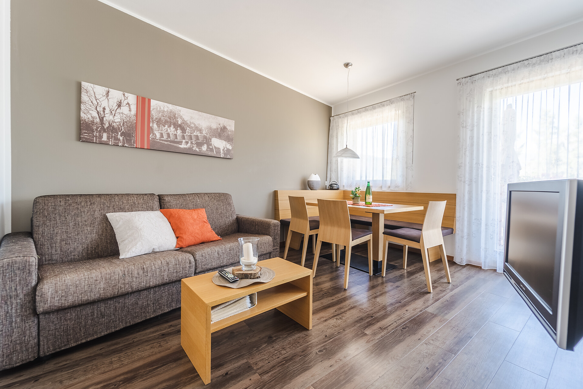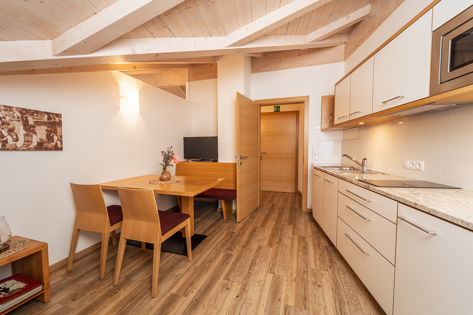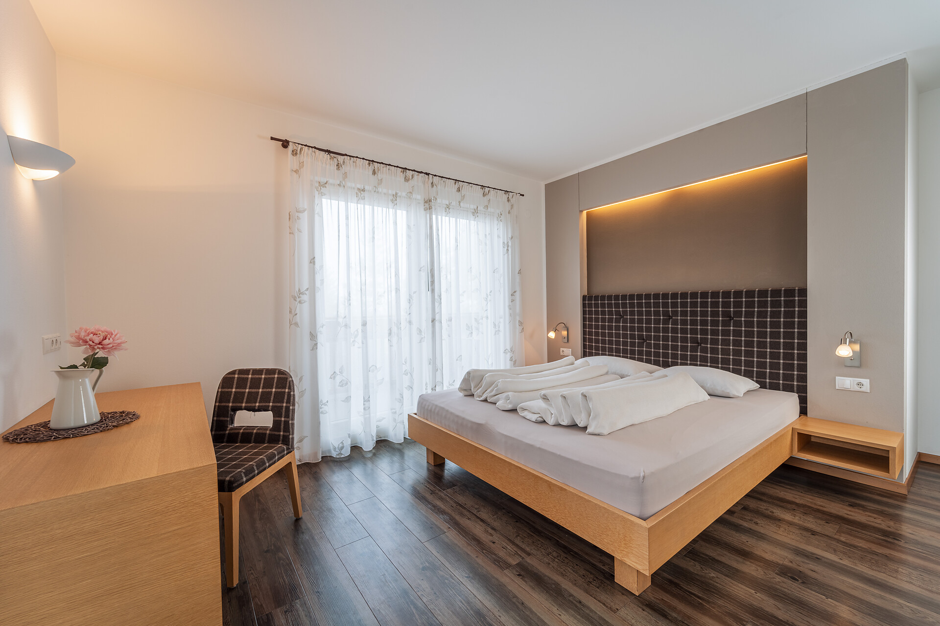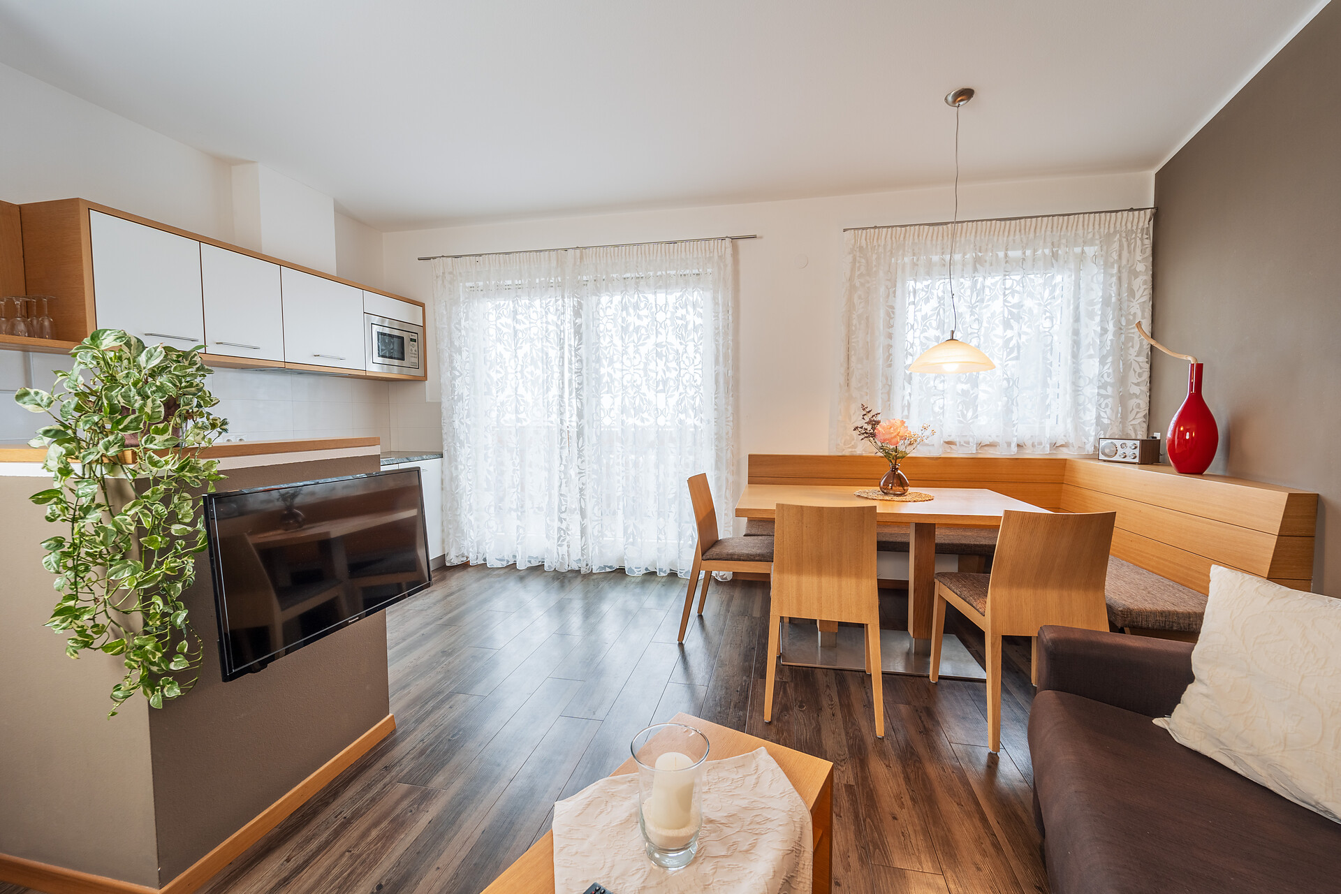 Il nostro ampio appartamento "Sogno di Mela" è l’ideale per famiglie o gruppi più numerosi. Con 2 camere da letto separate (ognuna con due letti matrimoniali) e un divano letto estraibile, offre spazio e comfort anche per gruppi più grandi. La cucina completamente attrezzata e il bagno completano l’arredamento.