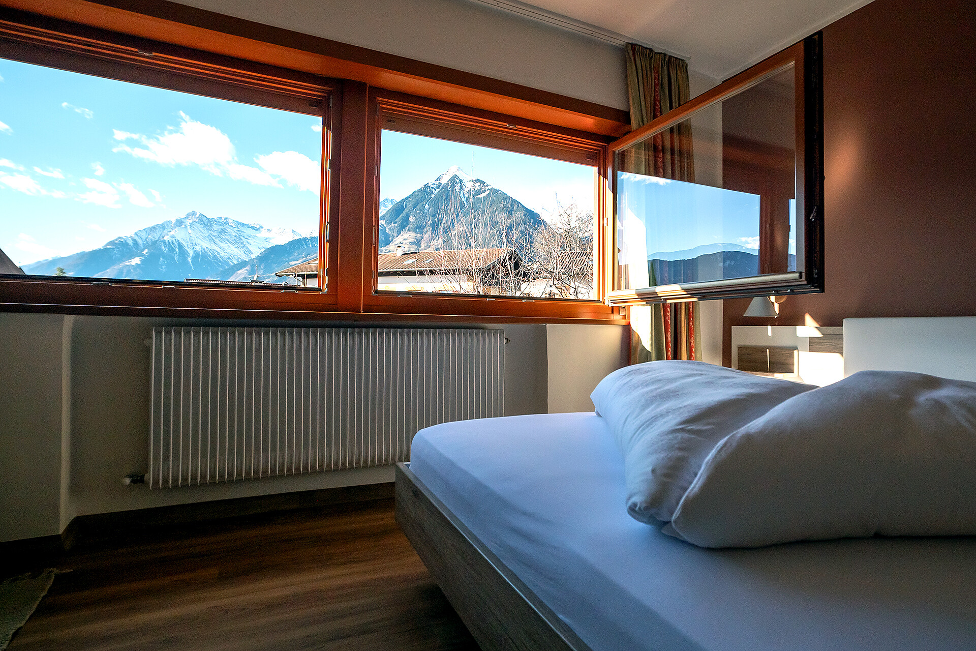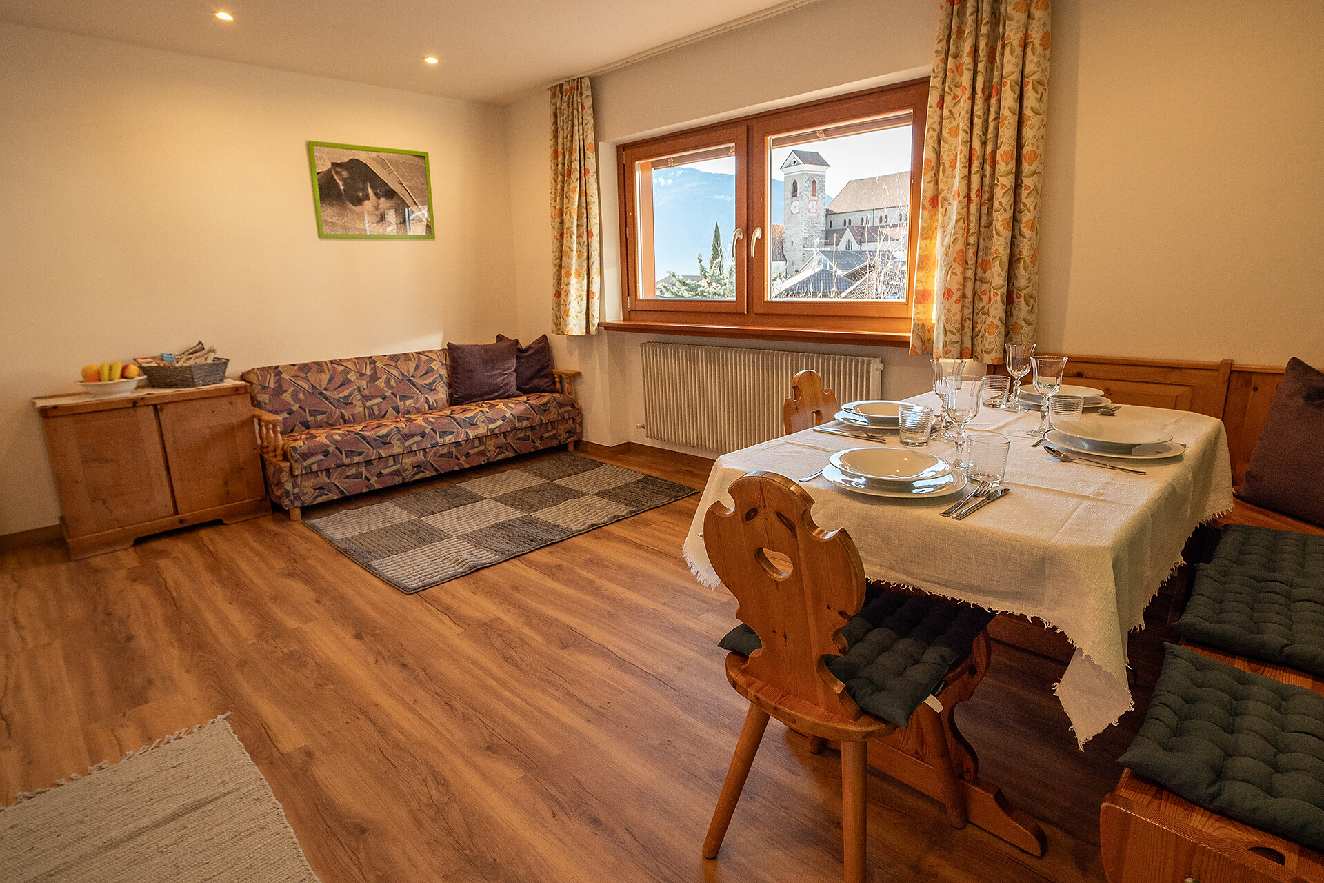 Svegliarsi al mattino e godersi le splendide montagne e la chiesa parrocchiale direttamente dal letto.