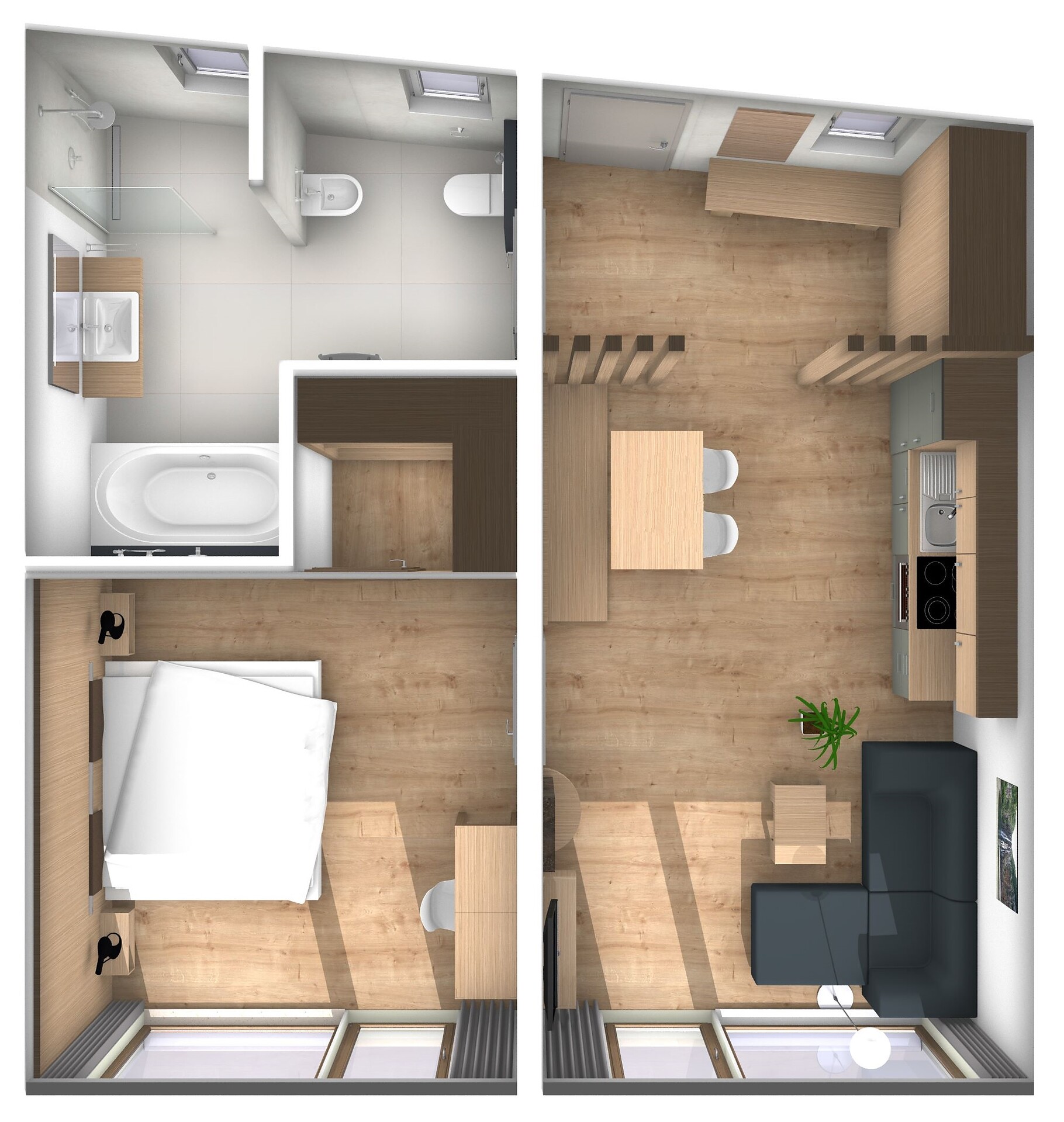 • Soggiorno-cucina con divano estraibile