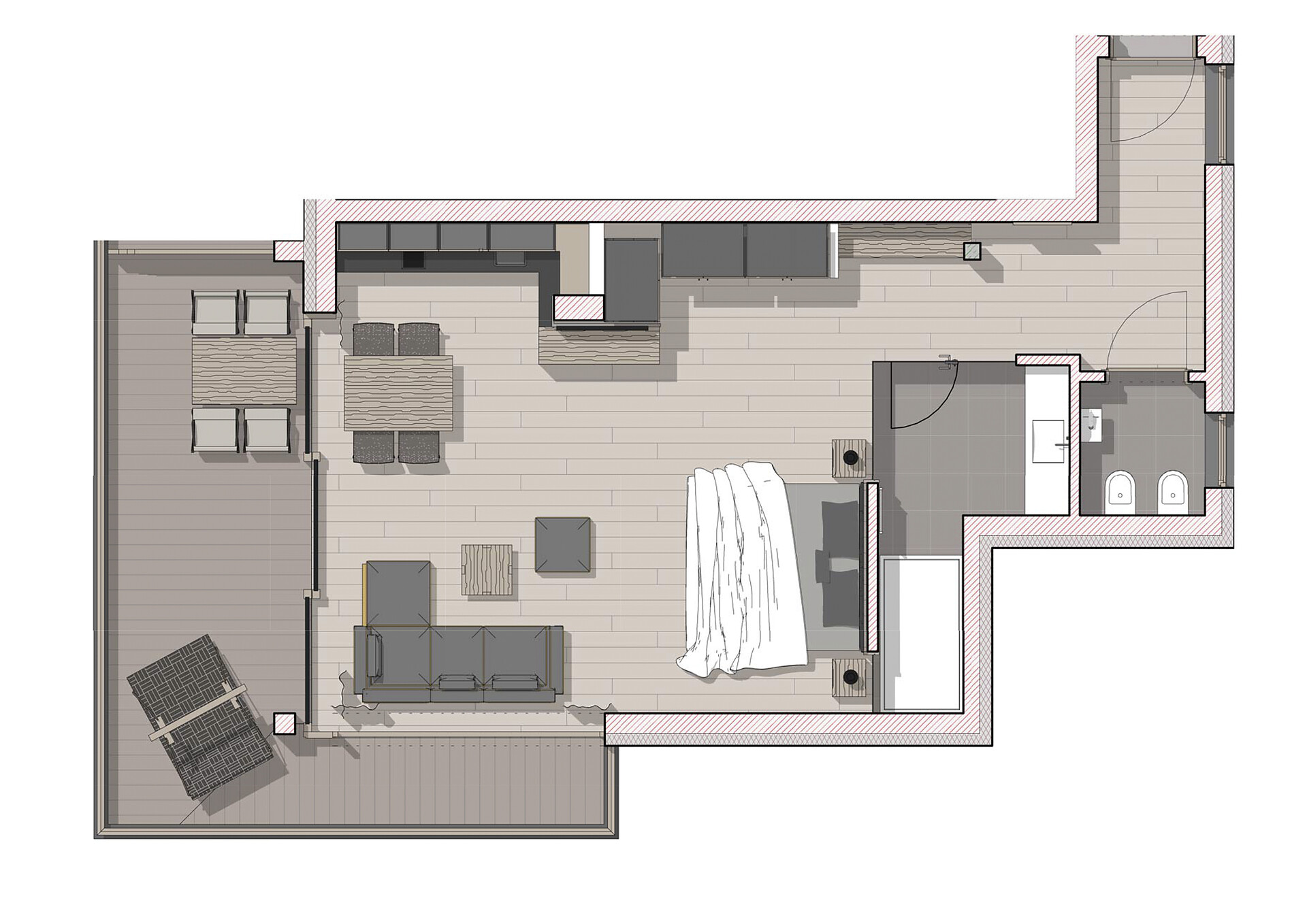 Allestimento: Letto matrimoniale, Divano letto matrimoniale, Balcone, Biancheria da letto disponibile, Cassaforte, Cucina abitabile, Macchina da caffè, Minibar, Lavastoviglie, Piano cottura elettrico, Forno a microonde, Stoviglie, Scaldaacqua, Doccia / bagno, WC separato, Bidet, Fon, Asciugamani, TV, TV satellitare/via cavo, WLAN, Pulizia su richiesta, Vista panoramica, Lato sud