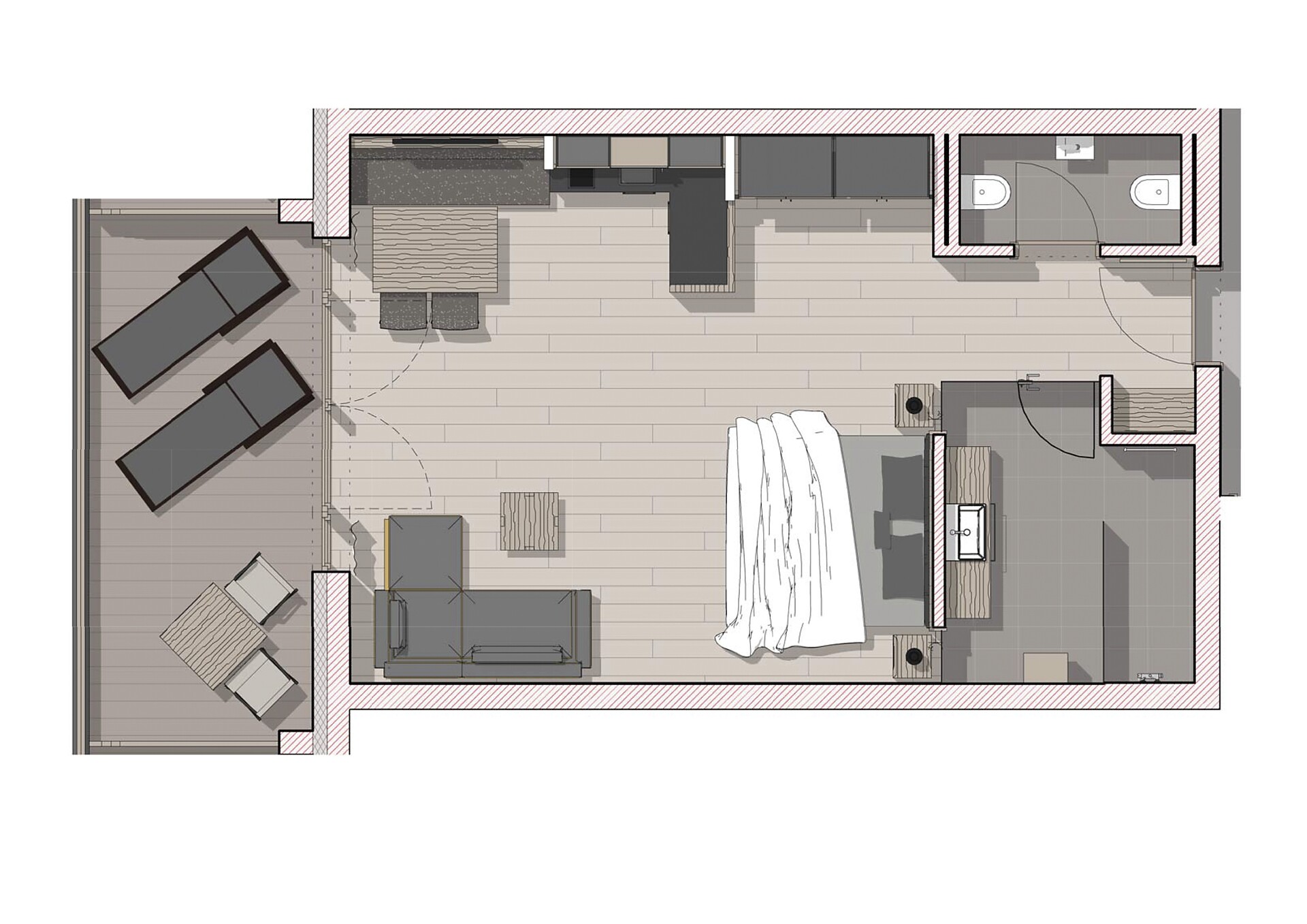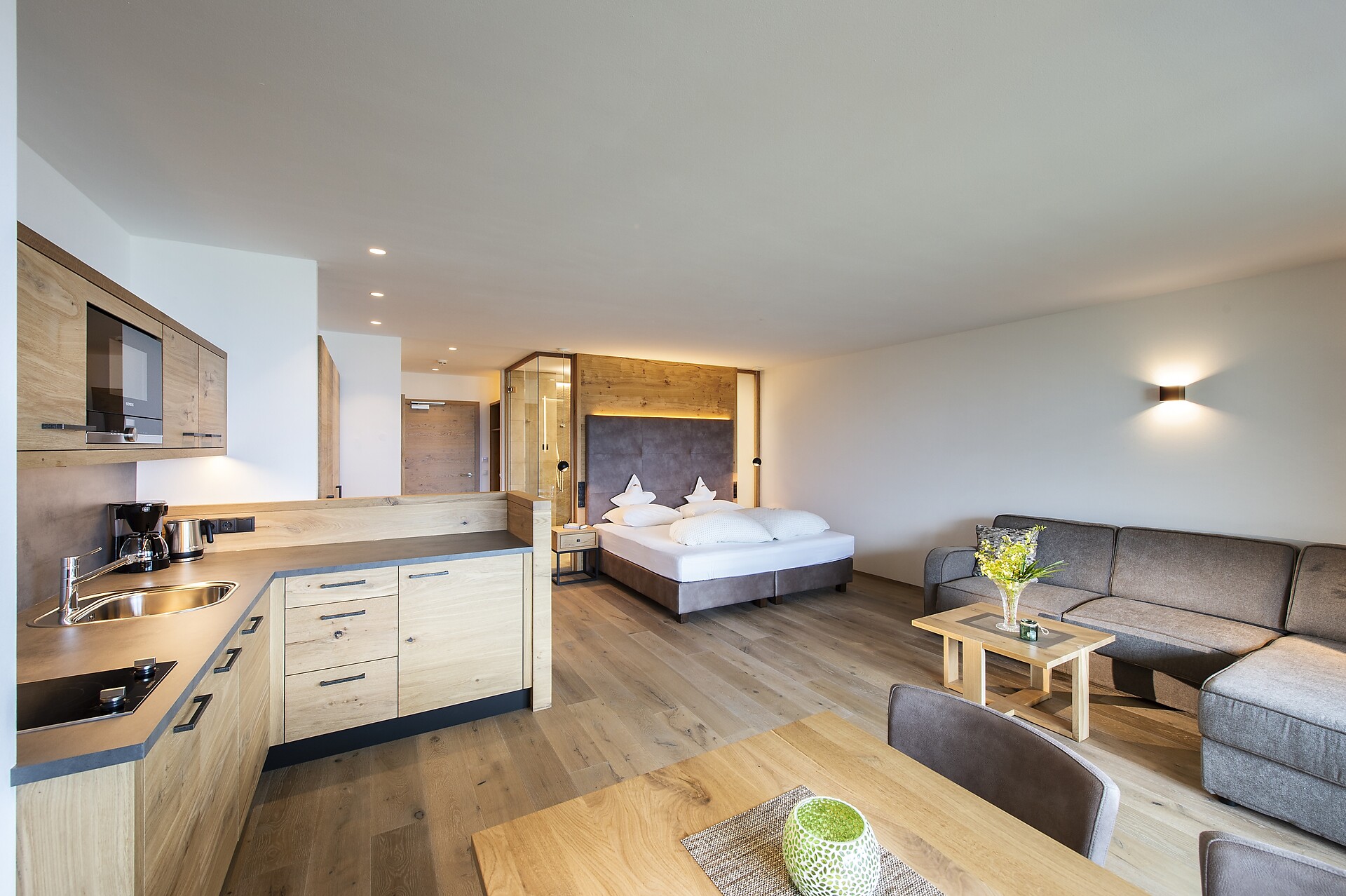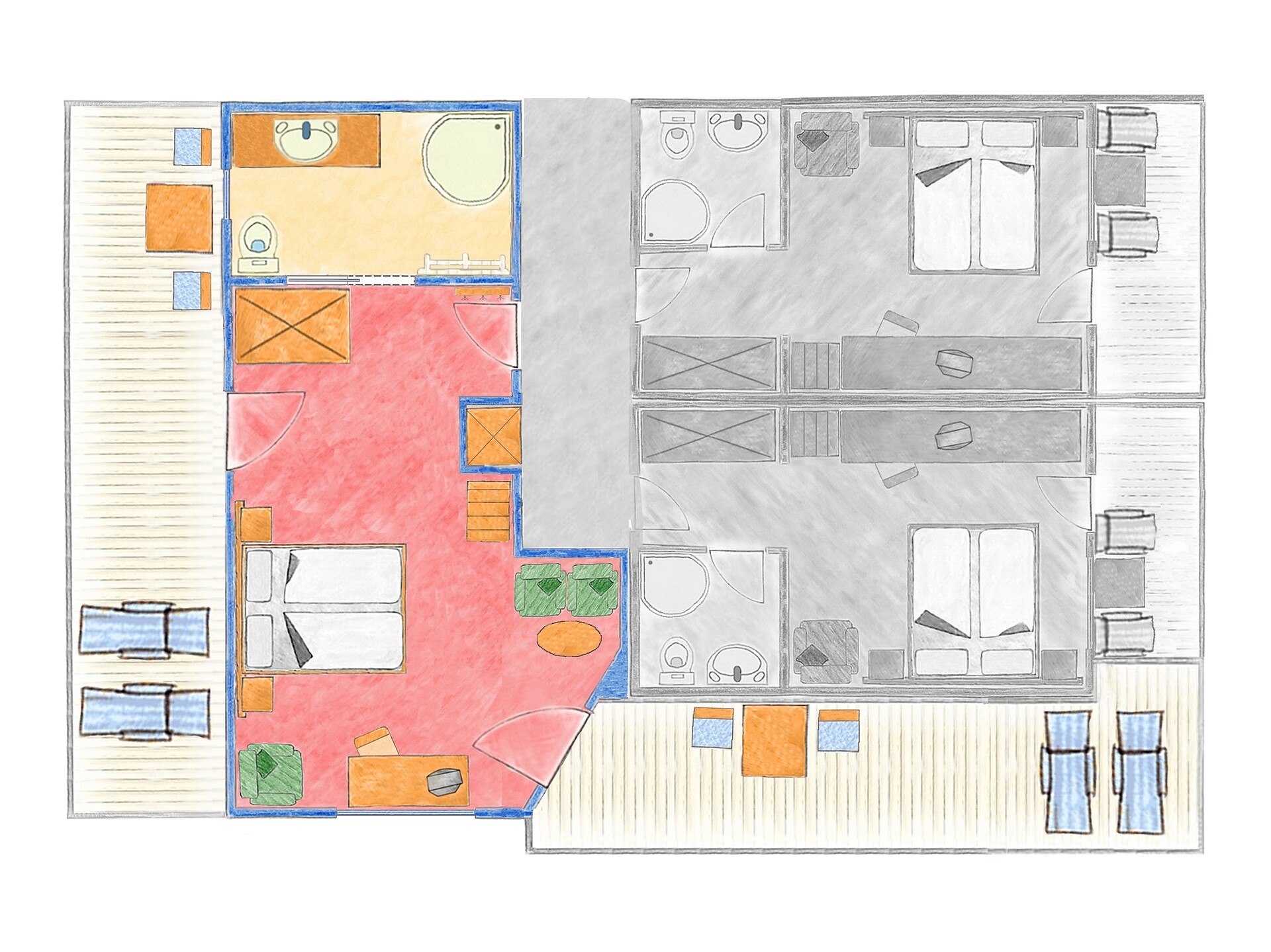 Allestimento: Letto matrimoniale, Divano letto matrimoniale, Balcone, Soggiorno separato, Biancheria da letto disponibile, Cassaforte, Cucina abitabile, Macchina da caffè, Minibar, Lavastoviglie, Piano cottura elettrico, Forno a microonde, Stoviglie, Scaldaacqua, Doccia / bagno, WC separato, Bidet, Fon, Asciugamani, TV, TV satellitare/via cavo, WLAN, Collegamento internet , Pulizia su richiesta, Vista panoramica, Lato sud