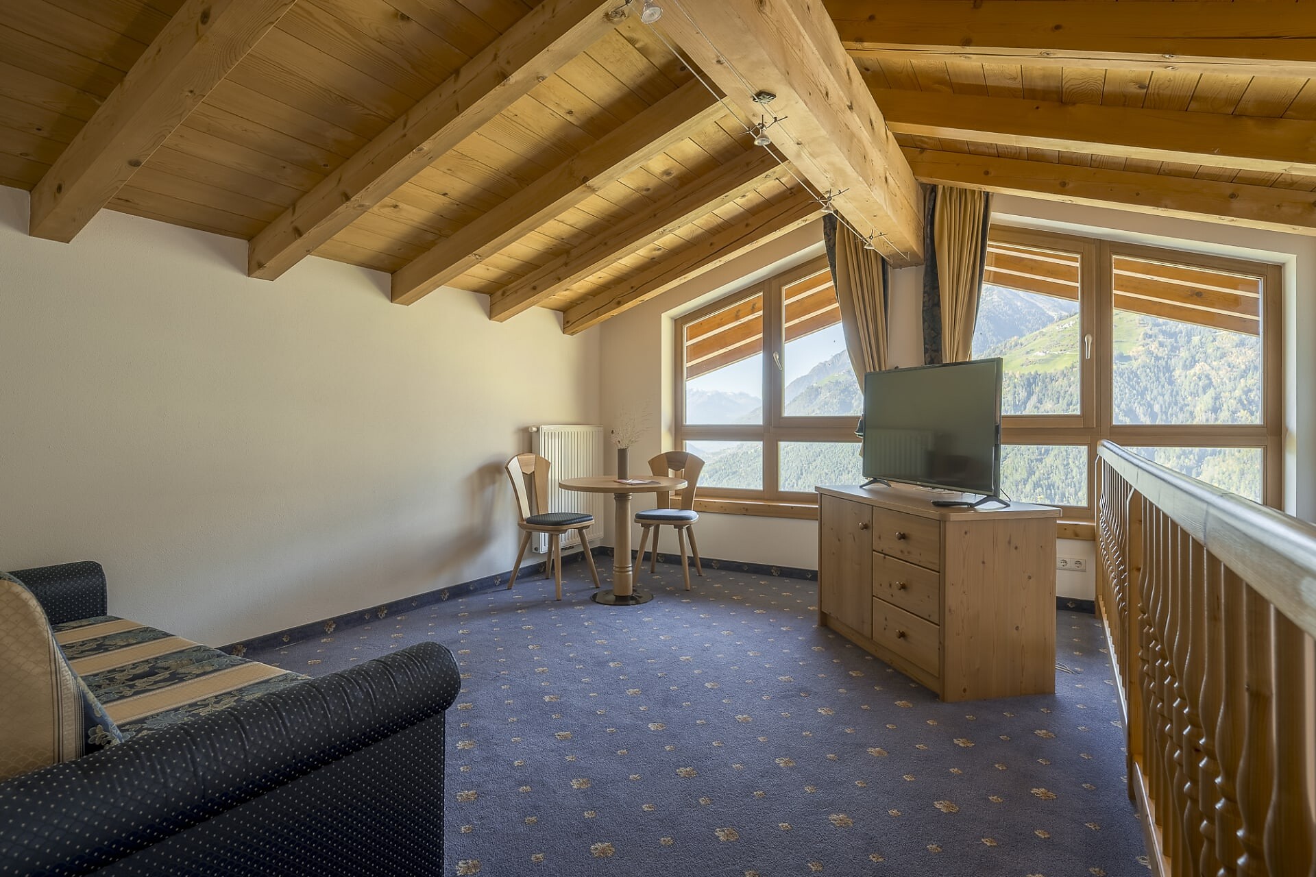 (non presente in tutte le Natursuite), doppio lavabo, asciugacapelli e un elegante specchio cosmetico; tutto, per il vostro benessere! La chicca di questa suite è senza dubbio il balcone privato o la terrazza-giardino esposta a sud, che offrono una vista panoramica mozzafiato sui dintorni. Godetevi giornate di sole e serate romantiche, riempiendovi gli occhi di panorami pittoreschi.