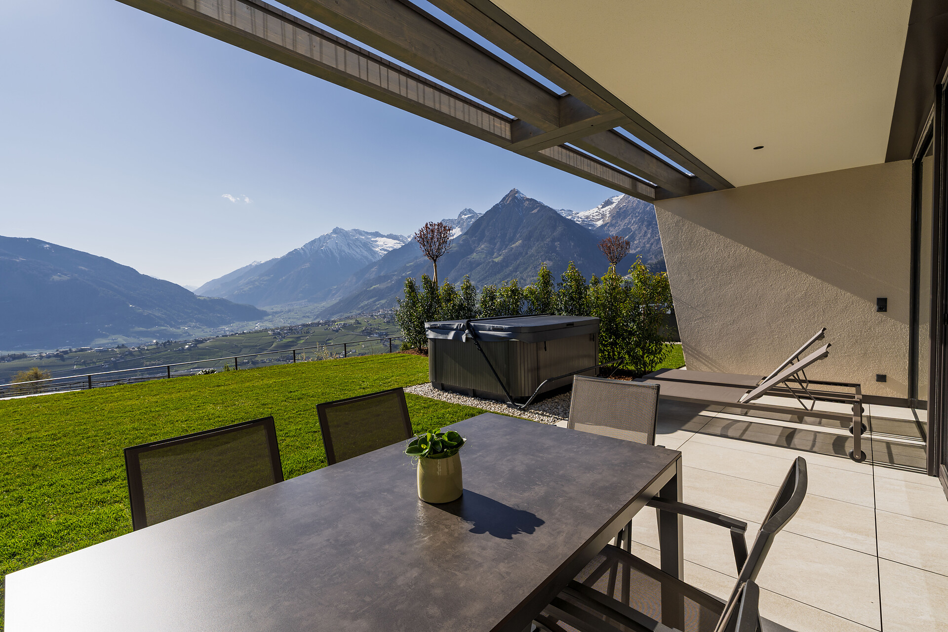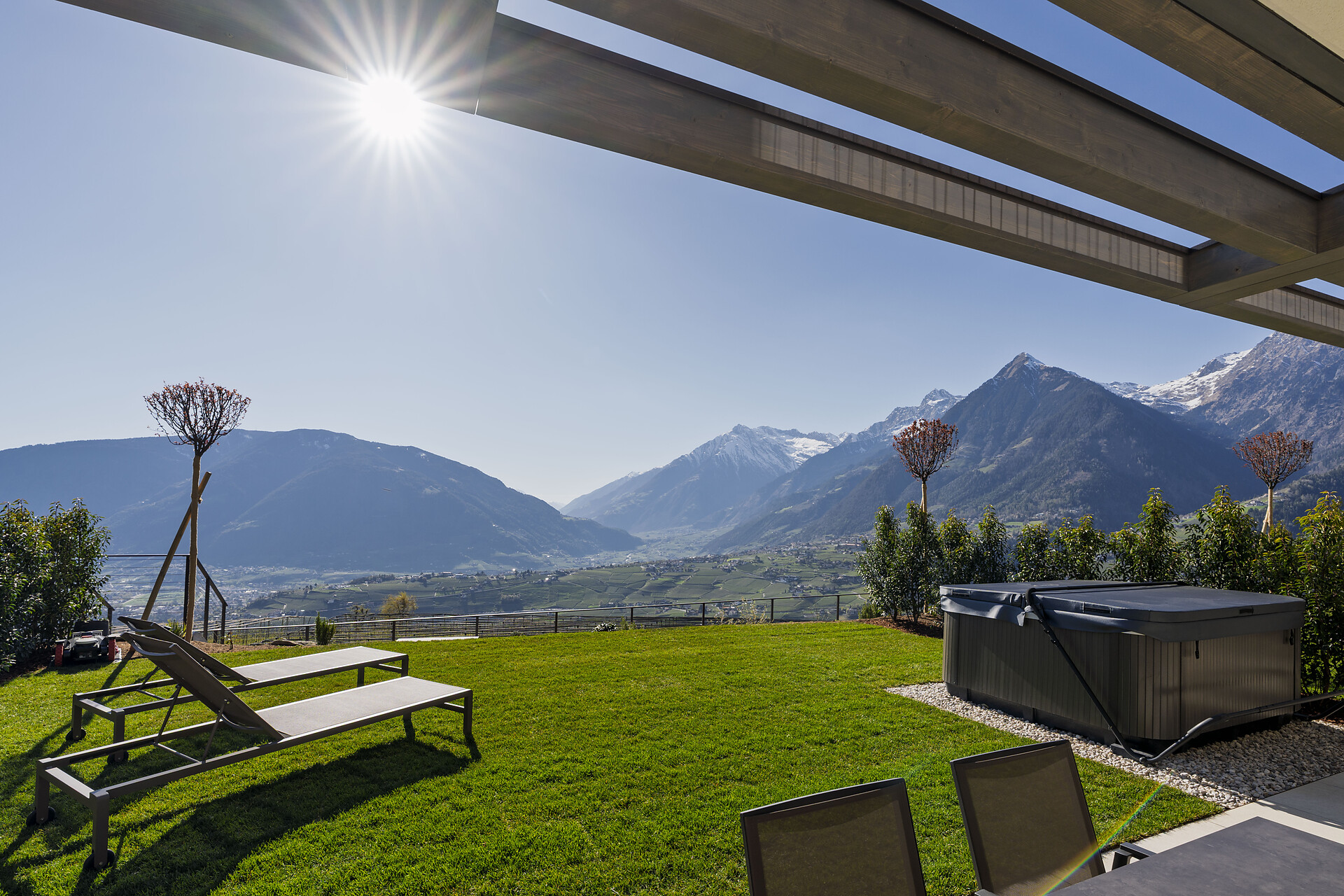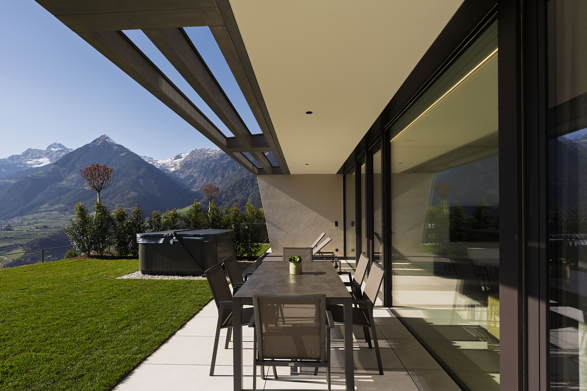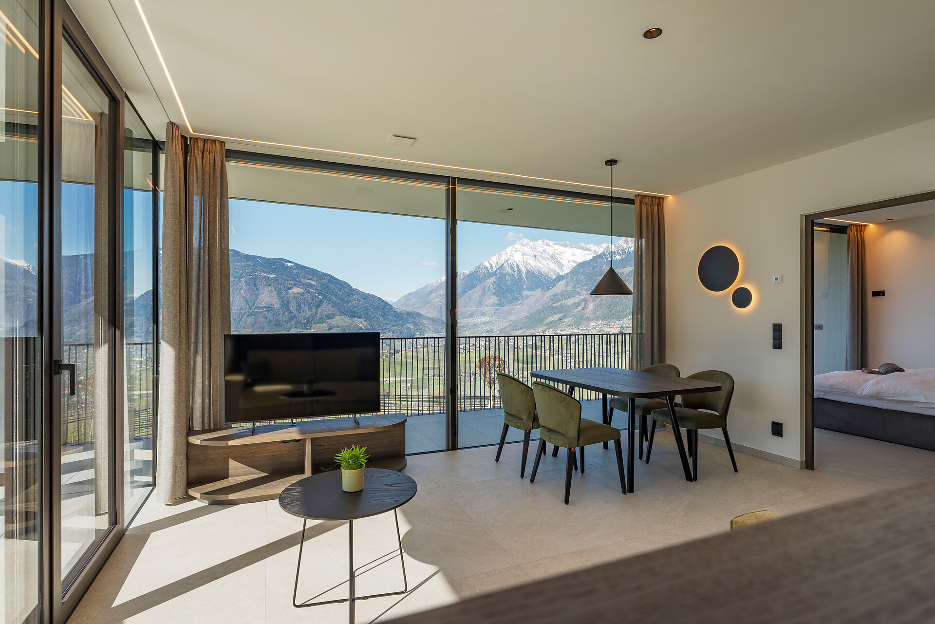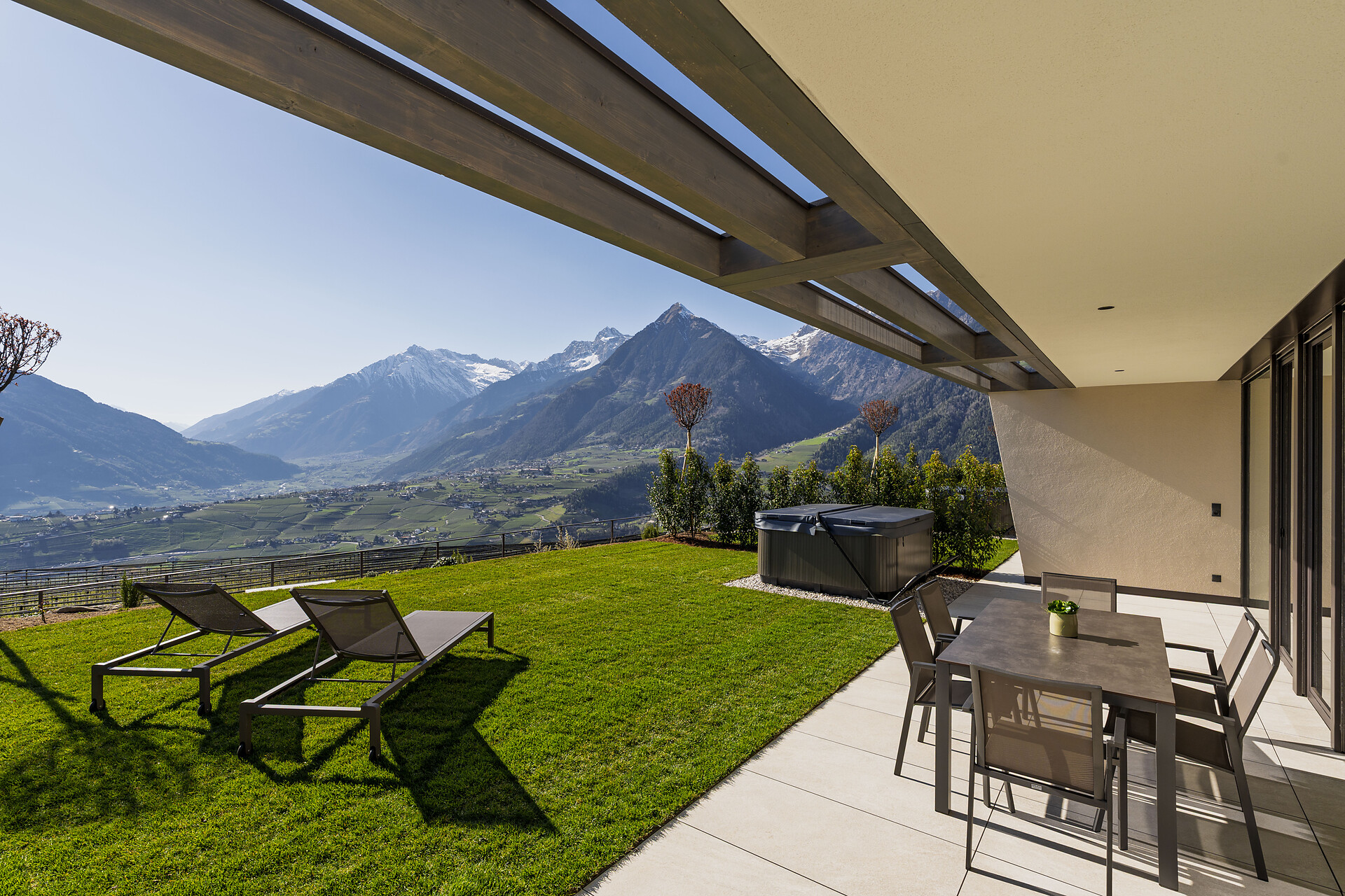 L’Apartment LUX dispone di due camere matrimoniali separate e combina comfort abitativo con un elegante spazio esterno privato. Il giardino (ca. 60–75 m²) e la terrazza di 28 m² offrono piacevoli zone relax, mentre la vasca idromassaggio riscaldata Jacuzzi garantisce un’esperienza wellness esclusiva. Una vetrata di 27 m² assicura ambienti luminosi e aperti.