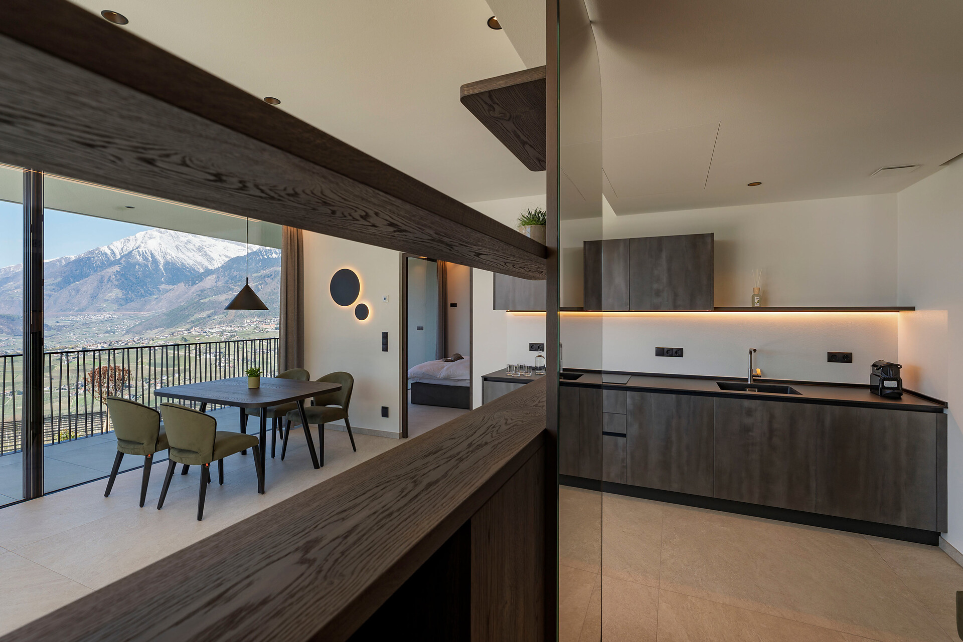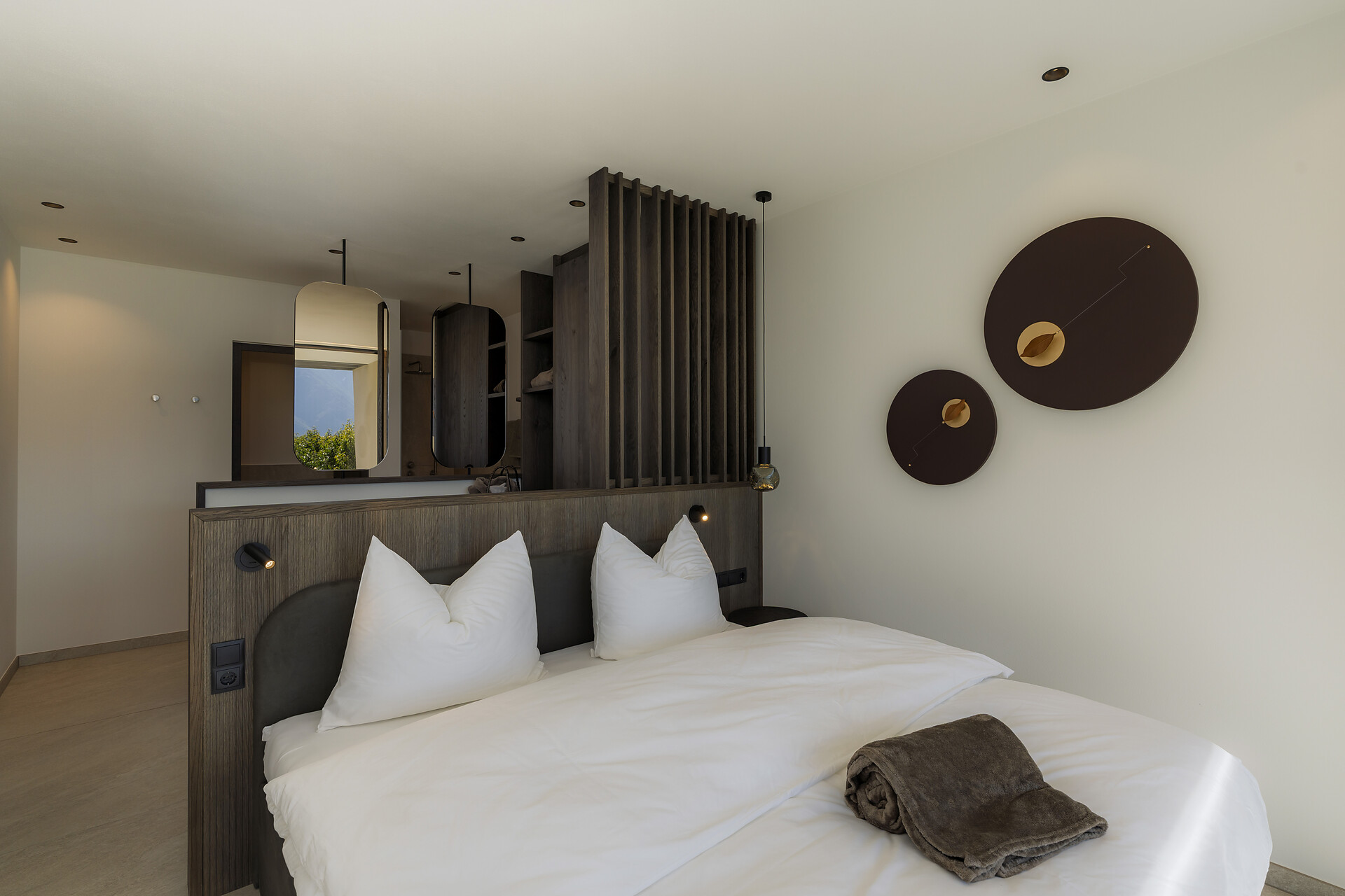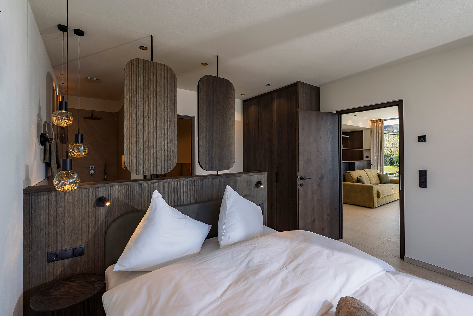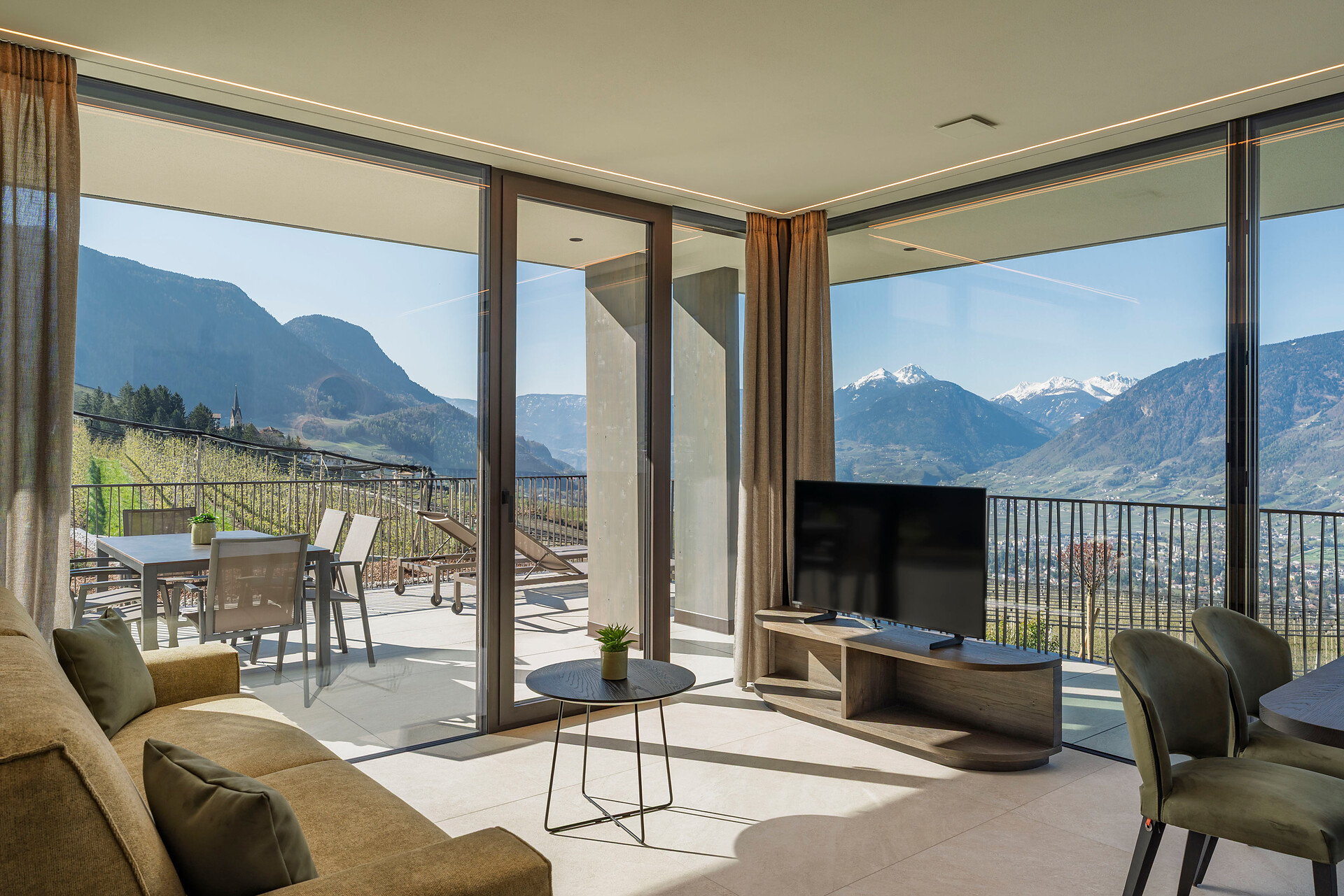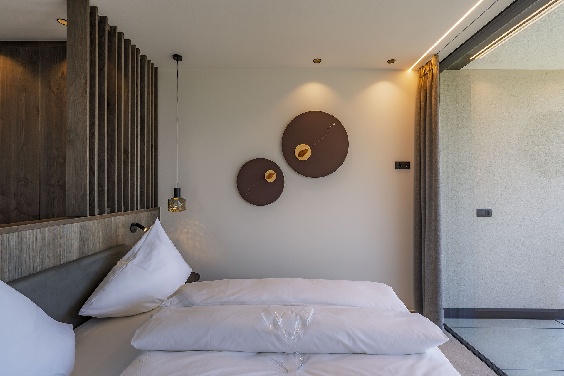 L’Apartment LUX dispone di due camere matrimoniali separate e combina comfort abitativo con un elegante spazio esterno privato. Il giardino (ca. 60–75 m²) e la terrazza di 28 m² offrono piacevoli zone relax, mentre la vasca idromassaggio riscaldata Jacuzzi garantisce un’esperienza wellness esclusiva. Una vetrata di 27 m² assicura ambienti luminosi e aperti.
