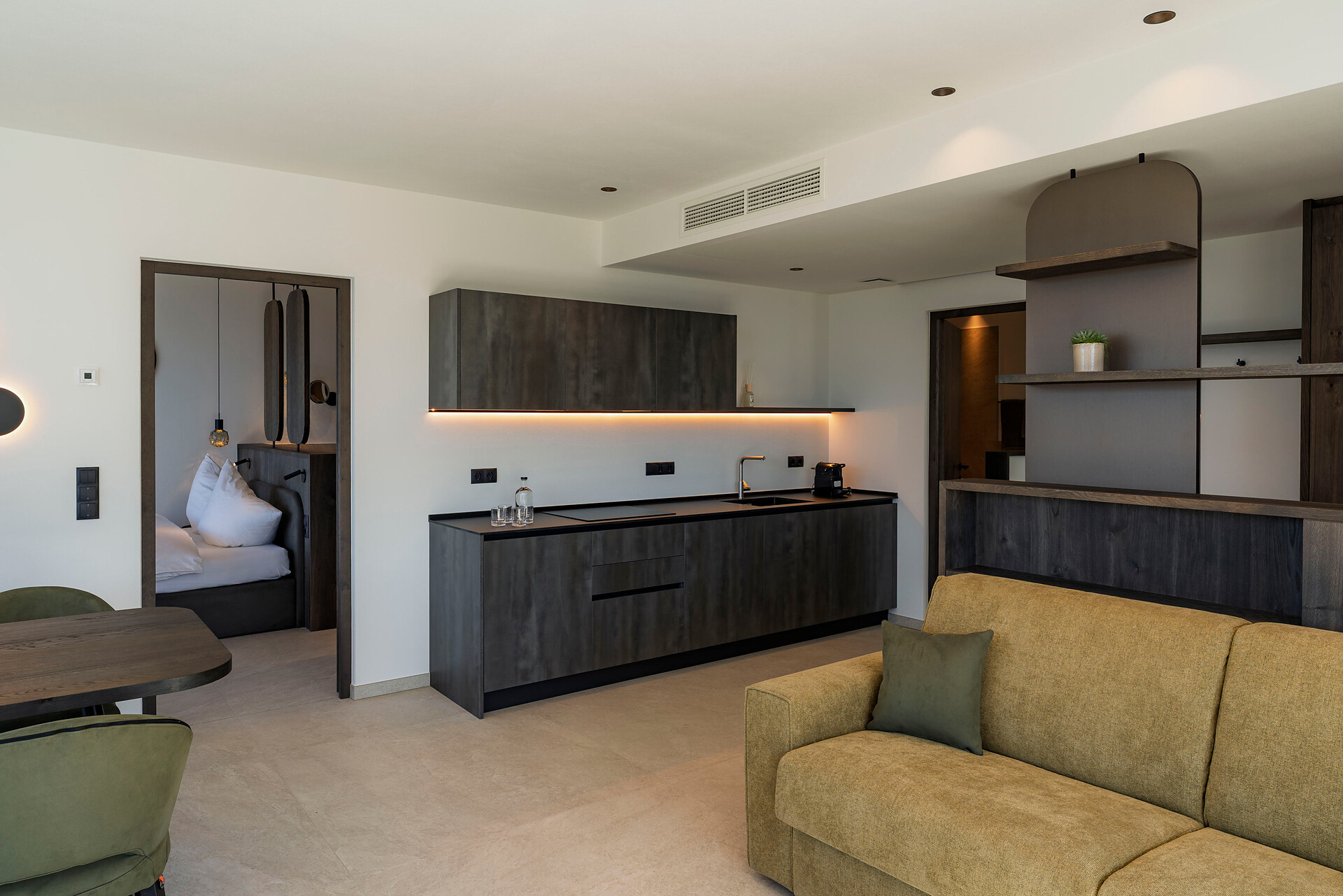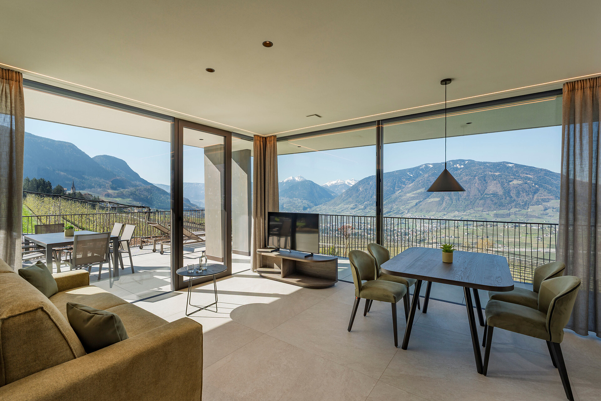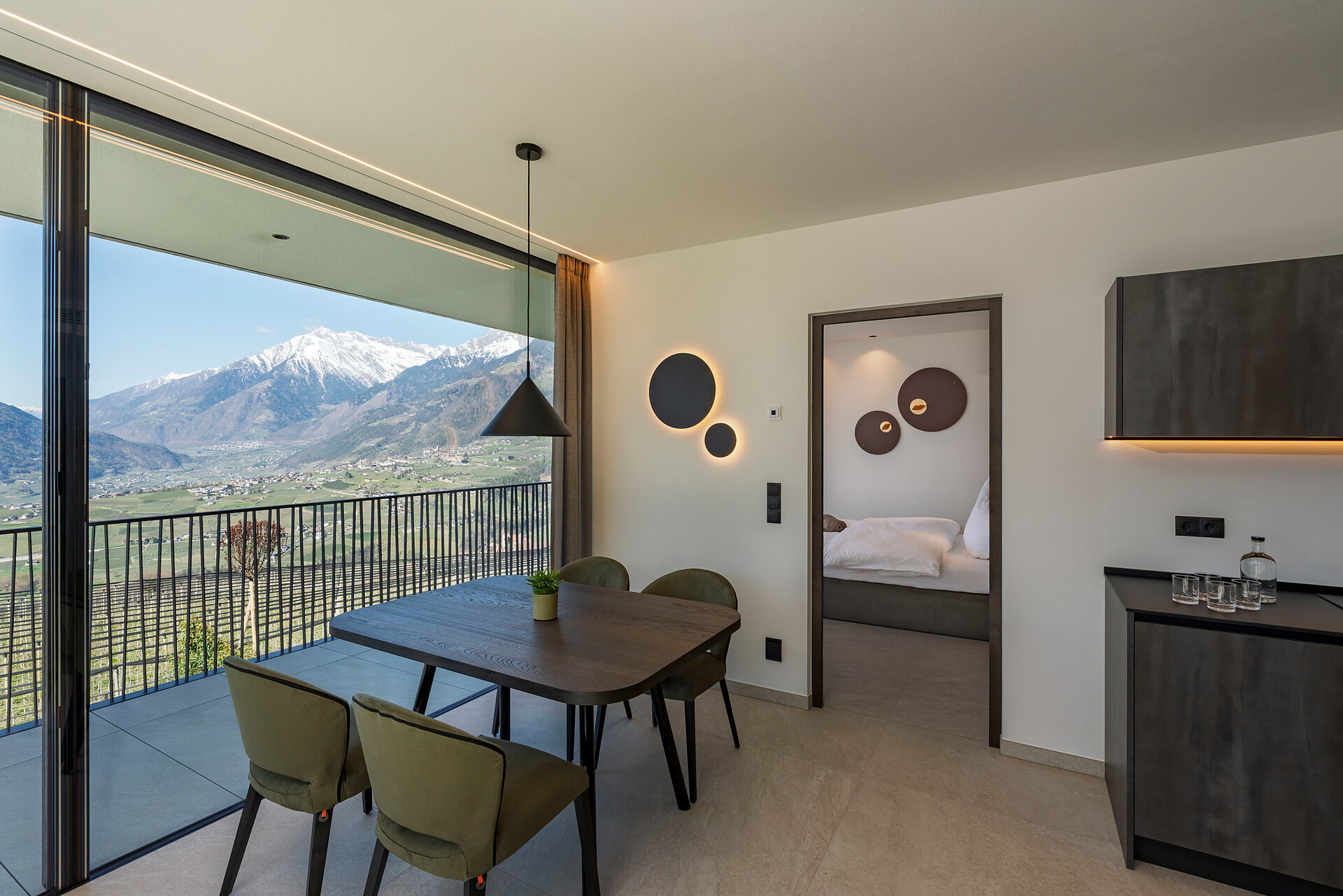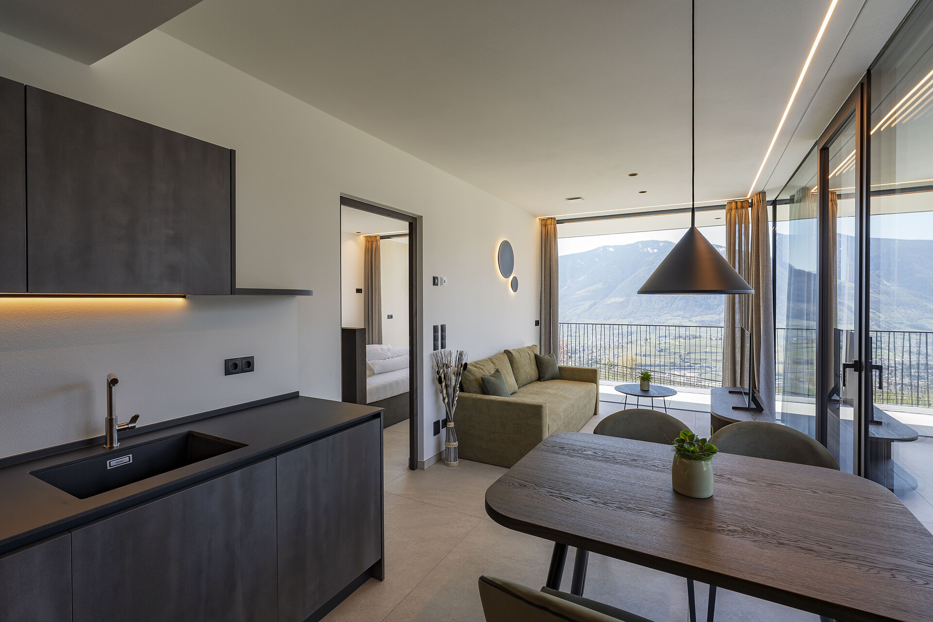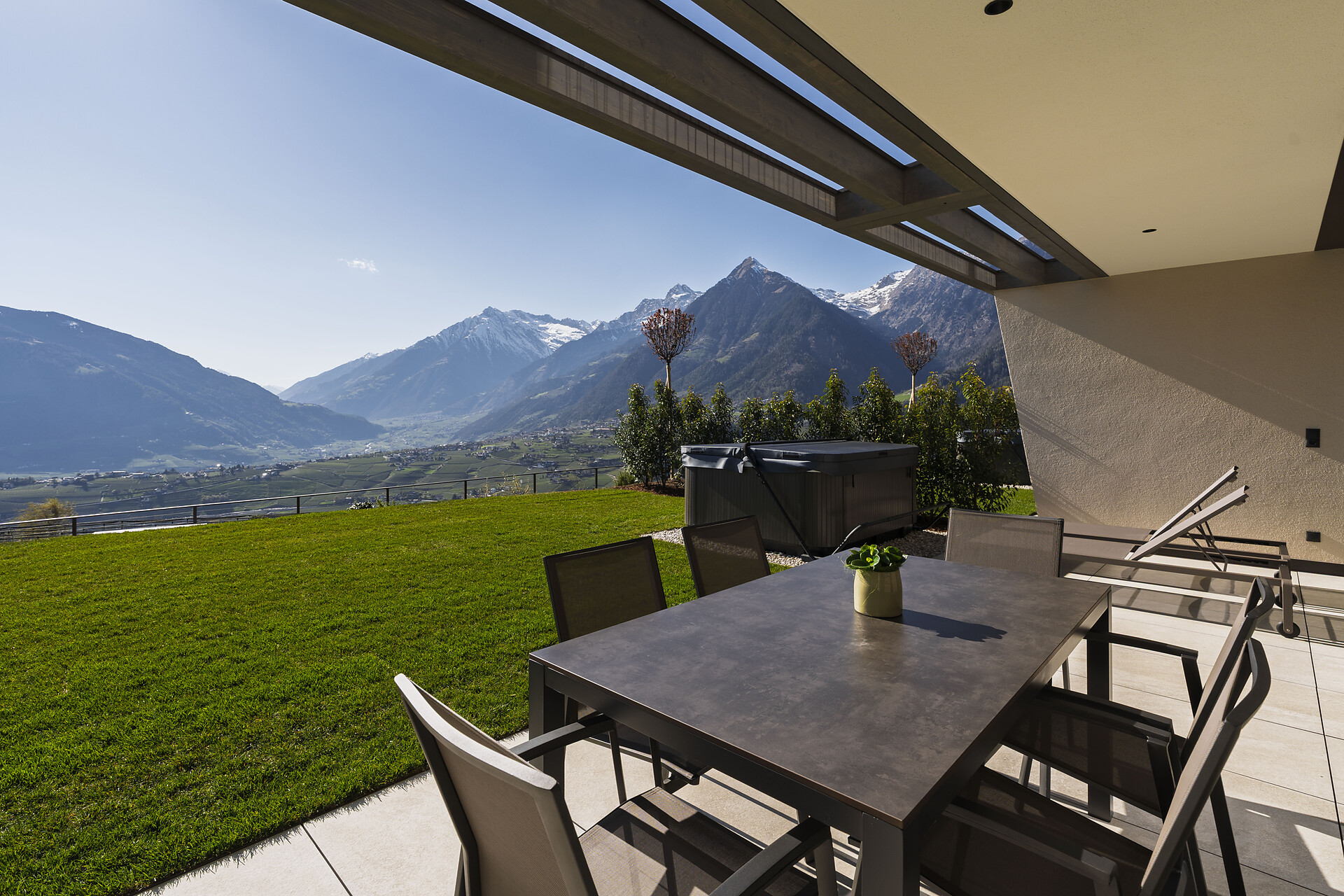 L’Apartment LUX dispone di due camere matrimoniali separate e combina comfort abitativo con un elegante spazio esterno privato. Il giardino (ca. 60–75 m²) e la terrazza di 28 m² offrono piacevoli zone relax, mentre la vasca idromassaggio riscaldata Jacuzzi garantisce un’esperienza wellness esclusiva. Una vetrata di 27 m² assicura ambienti luminosi e aperti.