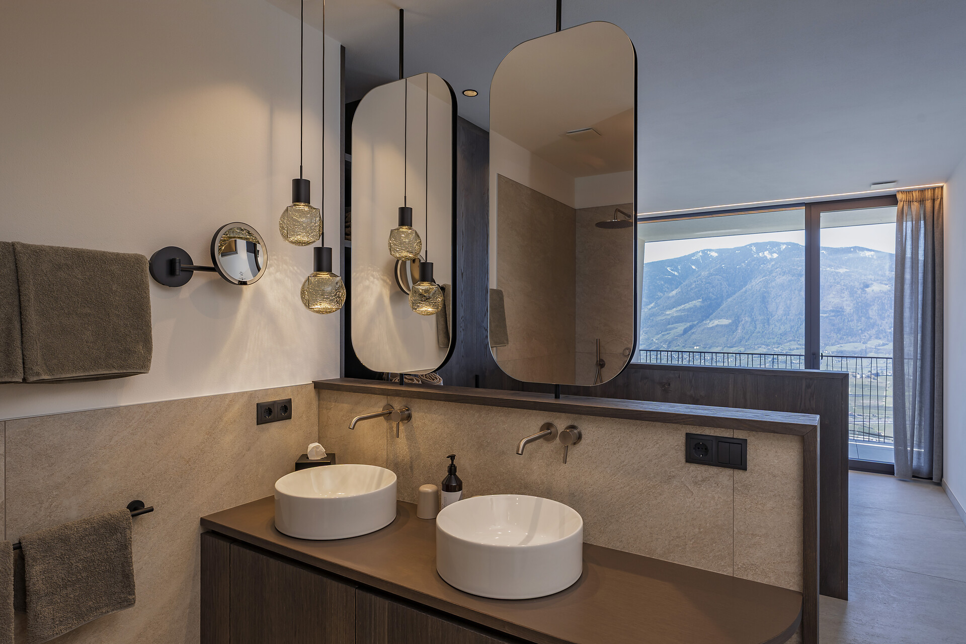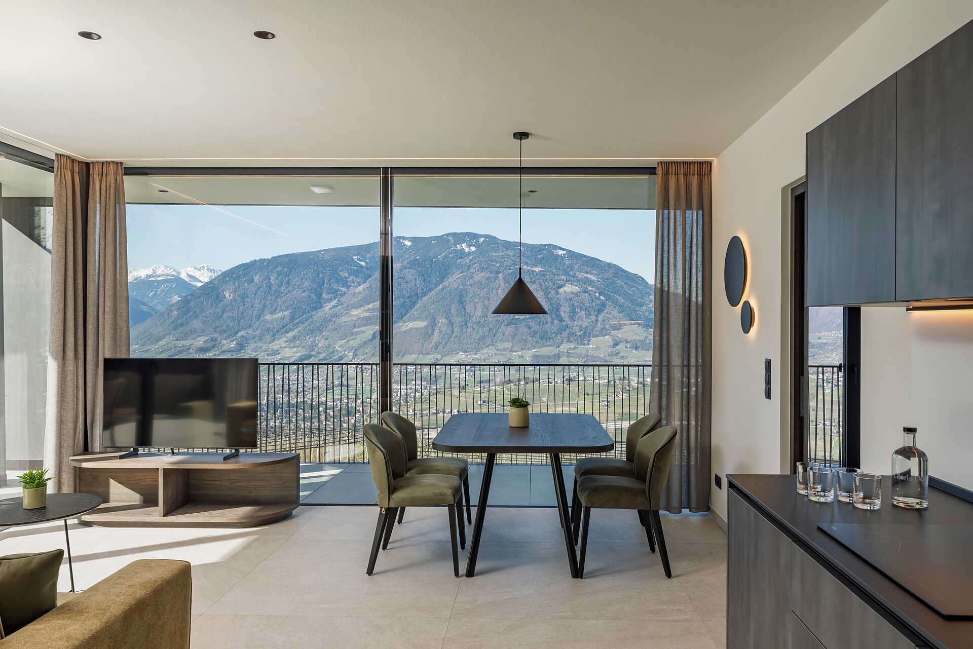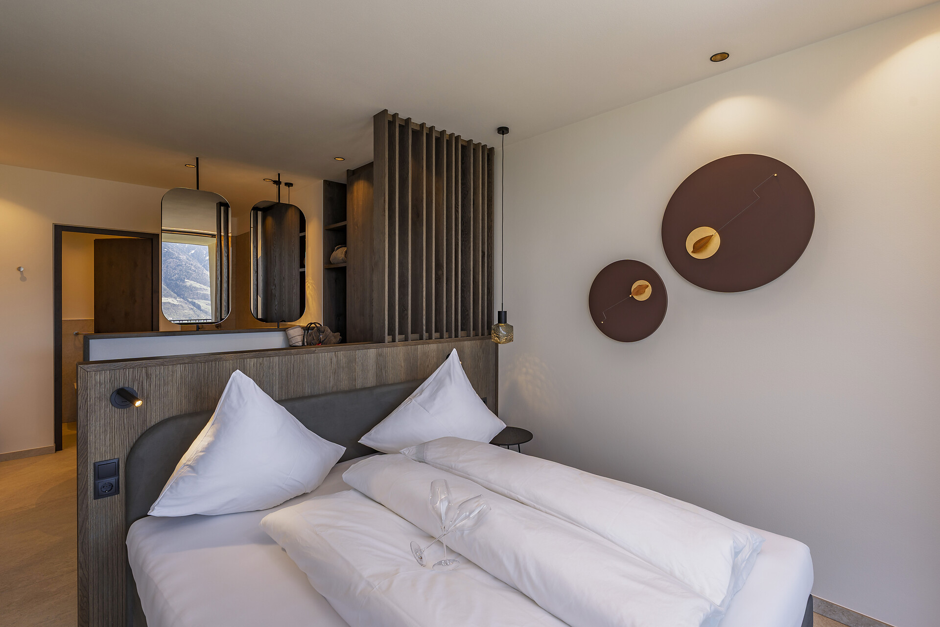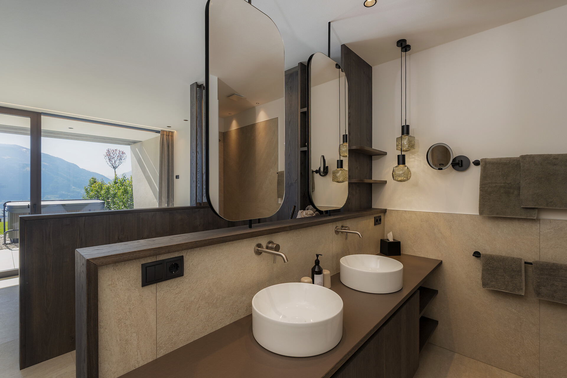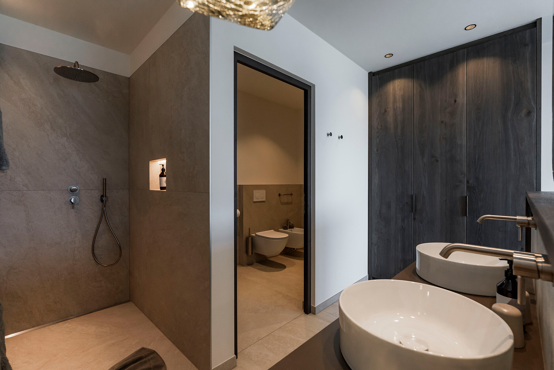 L’Apartment LUX dispone di due camere matrimoniali separate e combina comfort abitativo con un elegante spazio esterno privato. Il giardino (ca. 60–75 m²) e la terrazza di 28 m² offrono piacevoli zone relax, mentre la vasca idromassaggio riscaldata Jacuzzi garantisce un’esperienza wellness esclusiva. Una vetrata di 27 m² assicura ambienti luminosi e aperti.