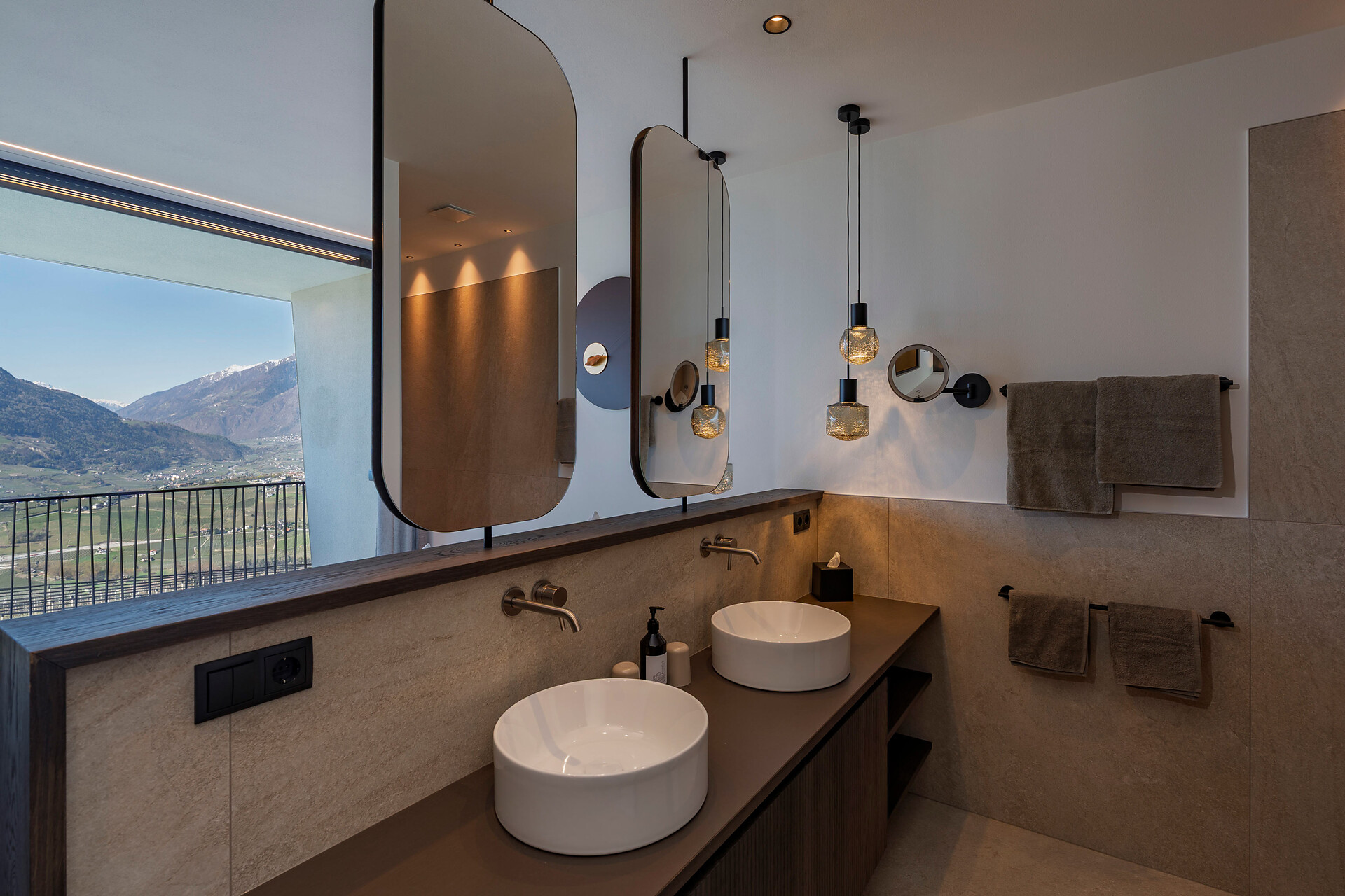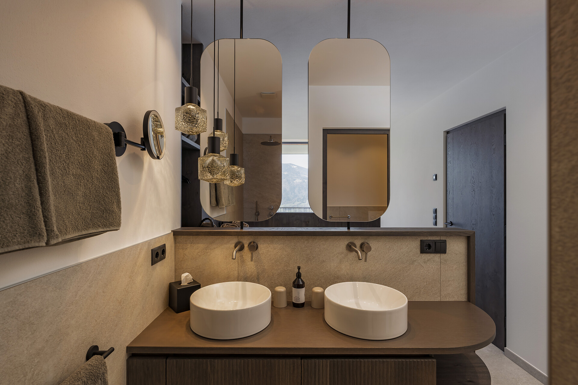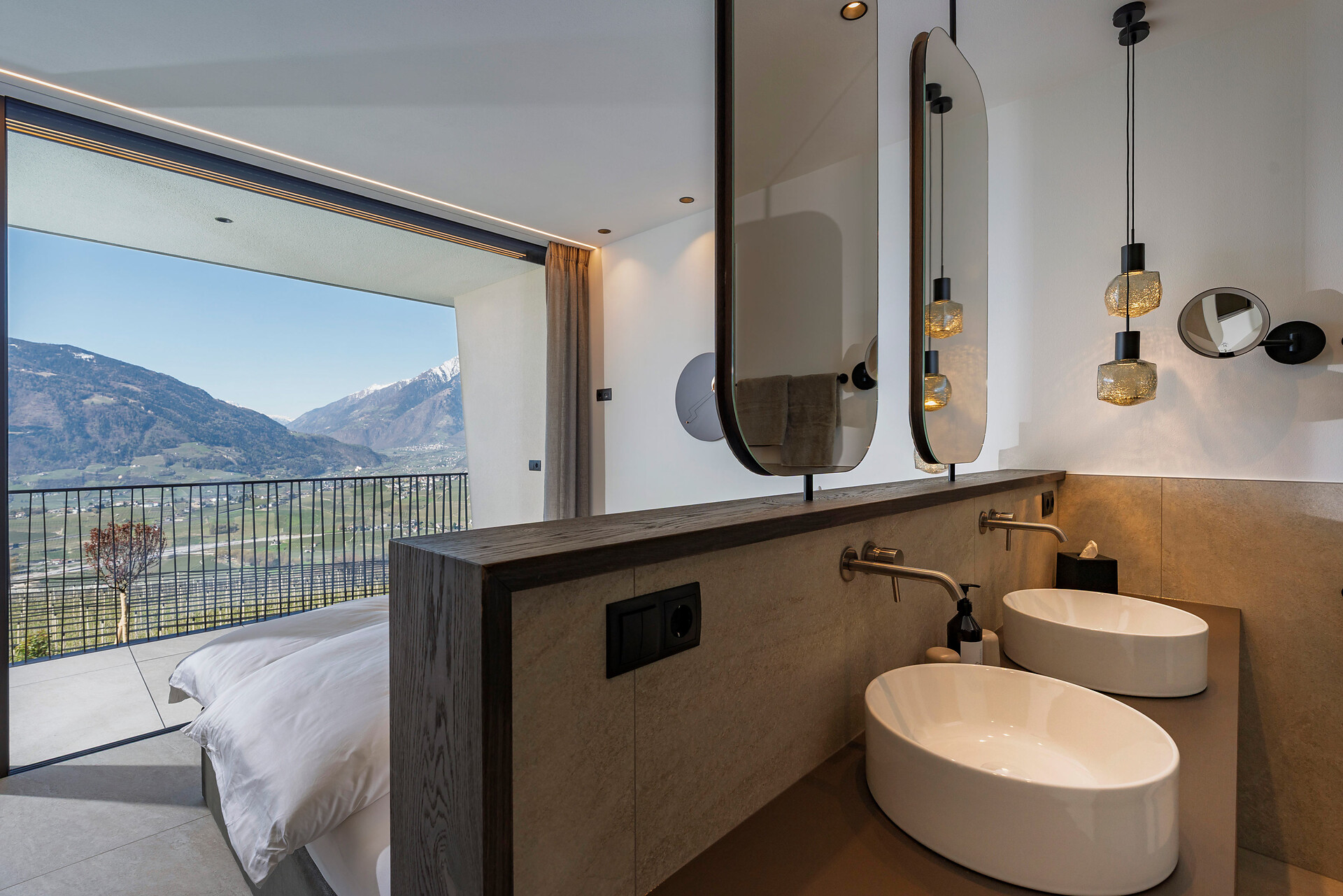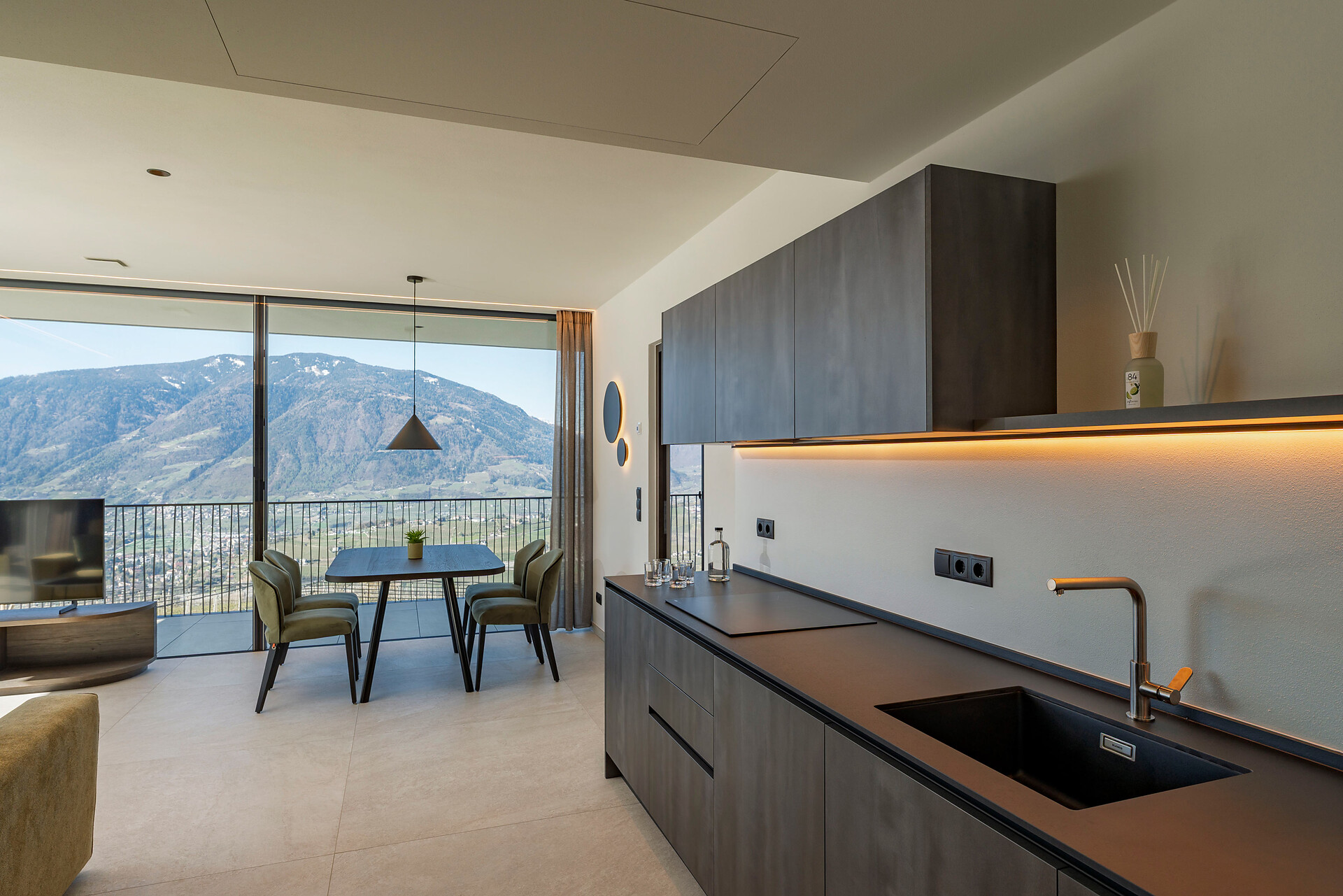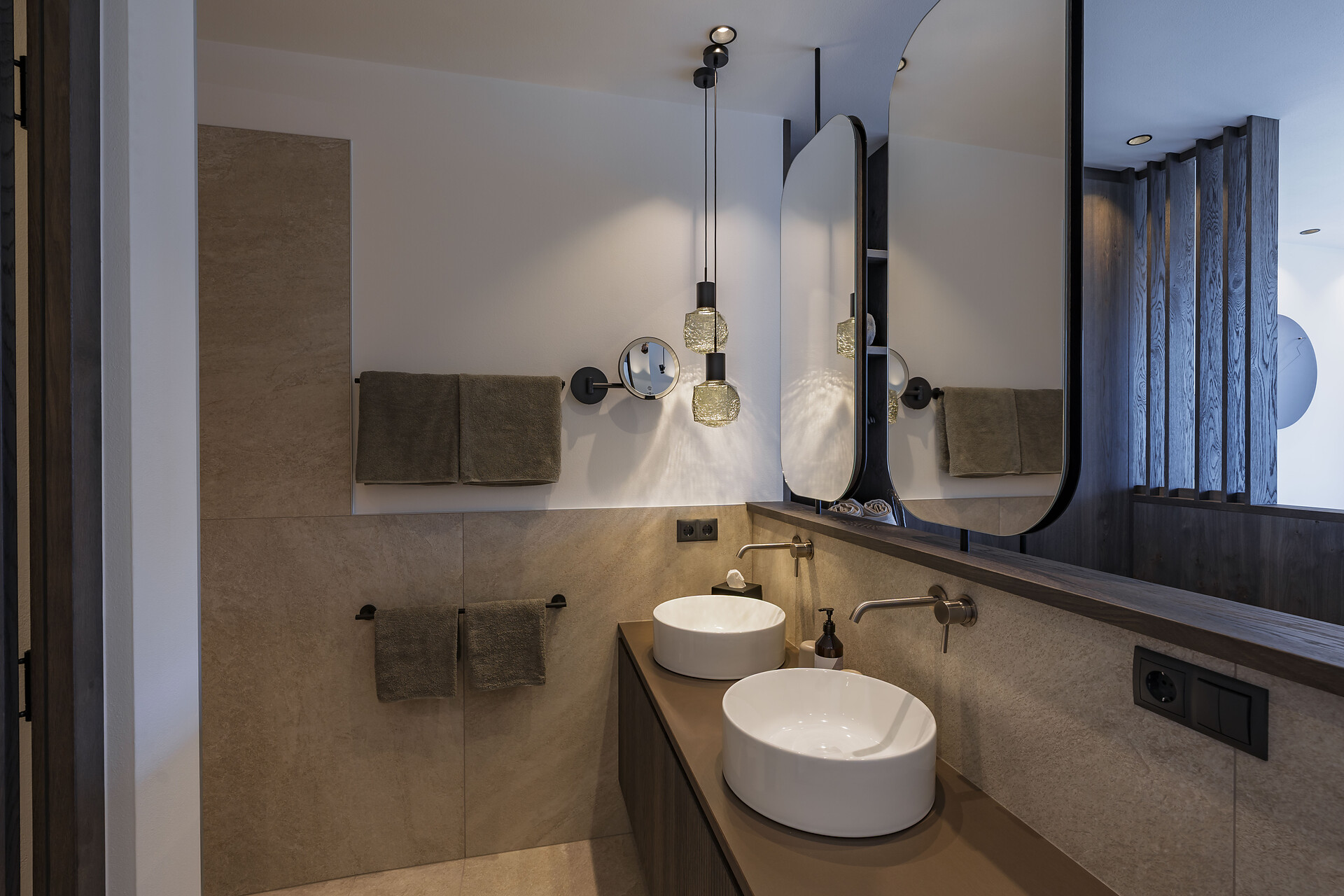 L’Apartment LUX dispone di due camere matrimoniali separate e combina comfort abitativo con un elegante spazio esterno privato. Il giardino (ca. 60–75 m²) e la terrazza di 28 m² offrono piacevoli zone relax, mentre la vasca idromassaggio riscaldata Jacuzzi garantisce un’esperienza wellness esclusiva. Una vetrata di 27 m² assicura ambienti luminosi e aperti.