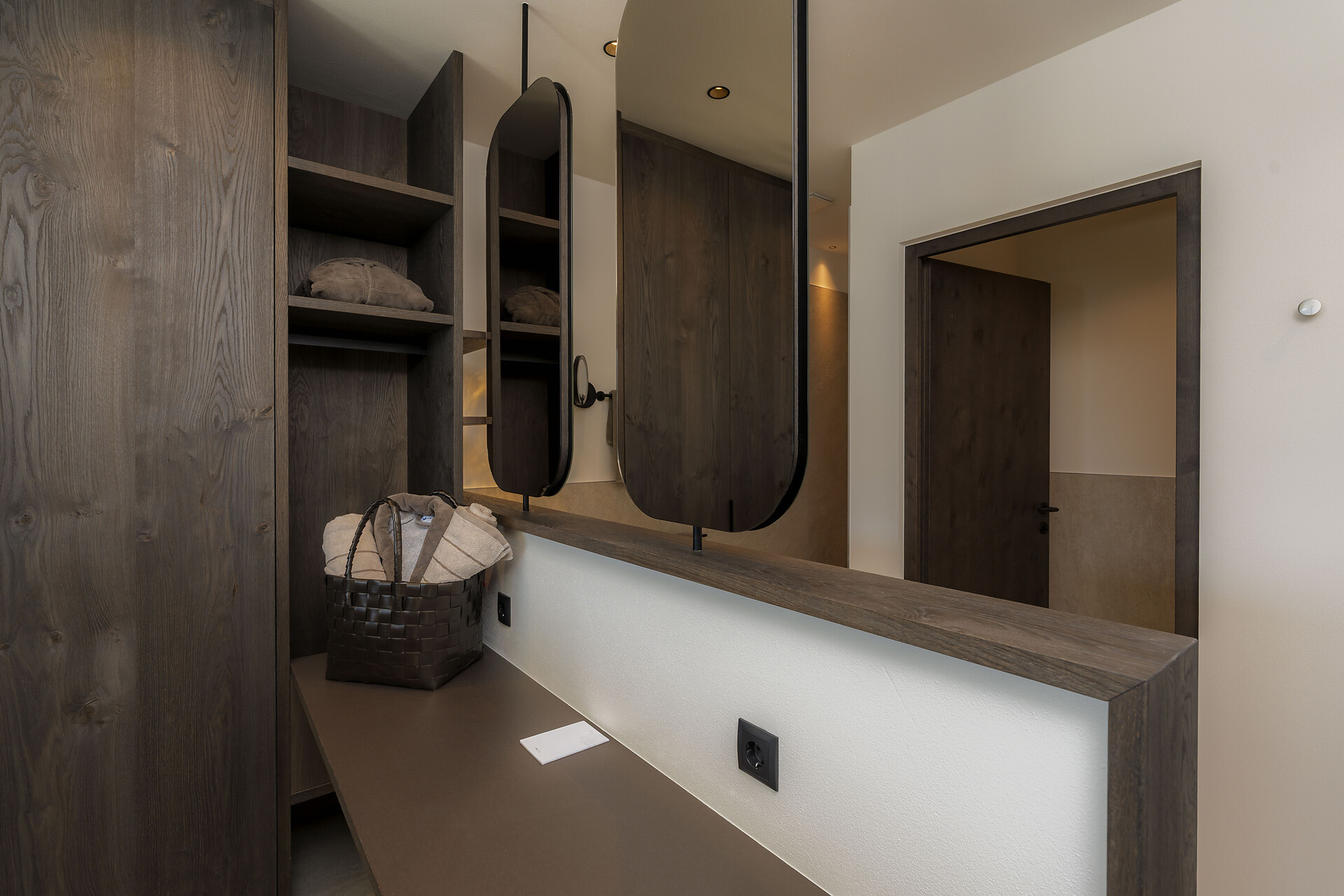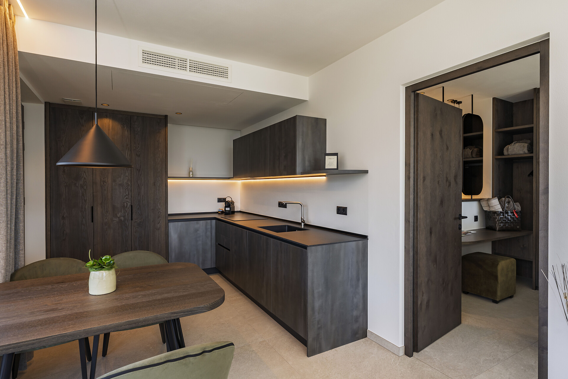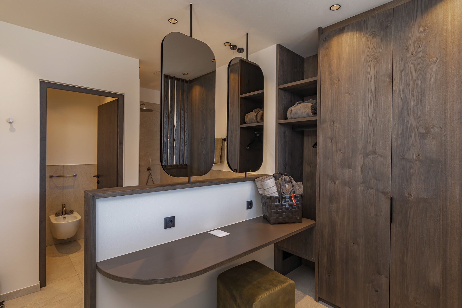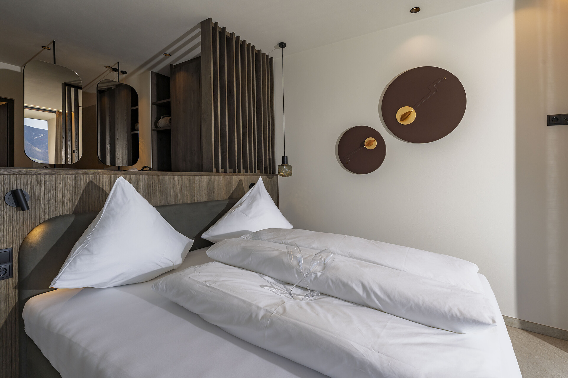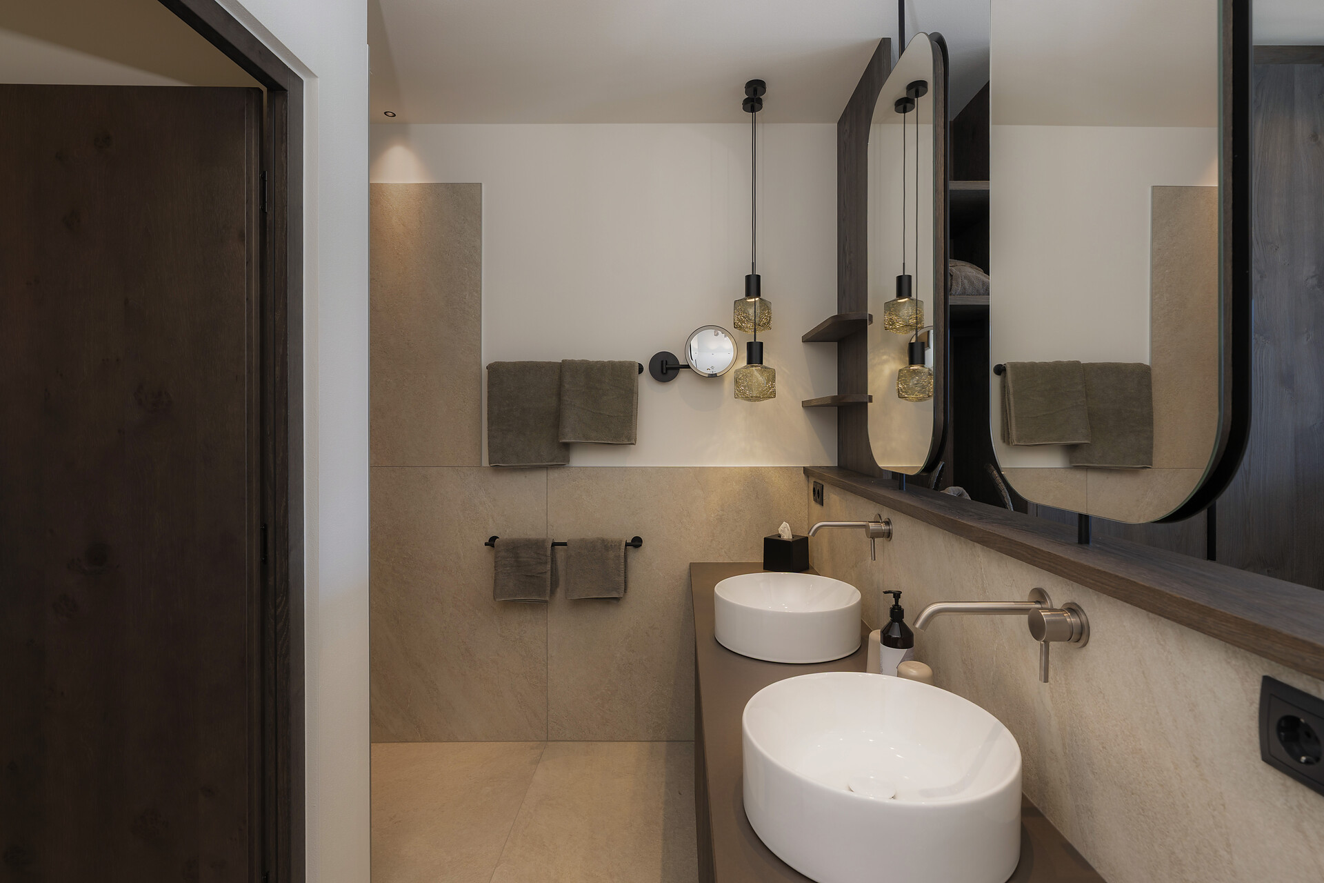 L’Apartment LUX dispone di due camere matrimoniali separate e combina comfort abitativo con un elegante spazio esterno privato. Il giardino (ca. 60–75 m²) e la terrazza di 28 m² offrono piacevoli zone relax, mentre la vasca idromassaggio riscaldata Jacuzzi garantisce un’esperienza wellness esclusiva. Una vetrata di 27 m² assicura ambienti luminosi e aperti.