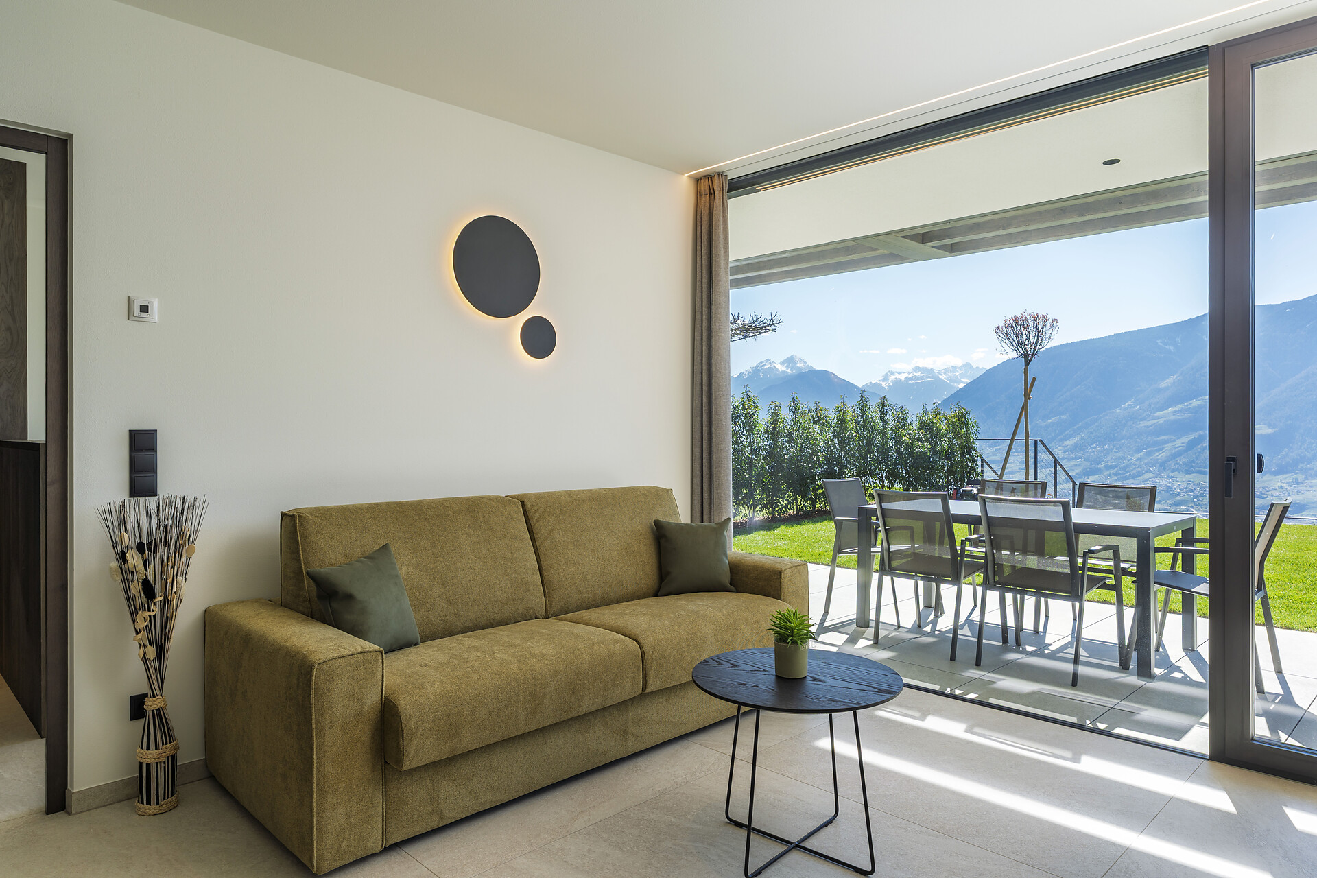 L’Apartment RELAX dispone di una camera matrimoniale e un comodo divano letto, ideale per coppie o famiglie. Il giardino privato con terrazza e vasca idromassaggio riscaldata Jacuzzi offre un’esperienza di puro relax in un ambiente esclusivo.
