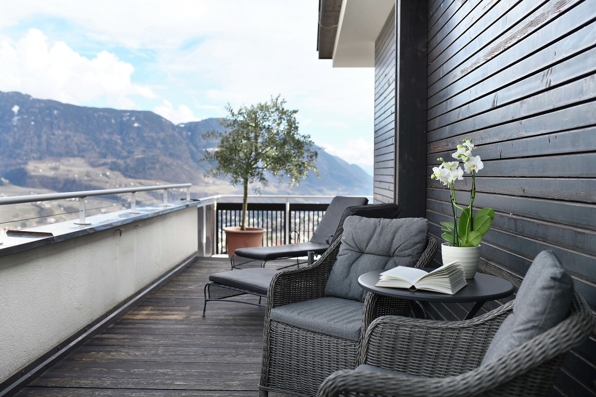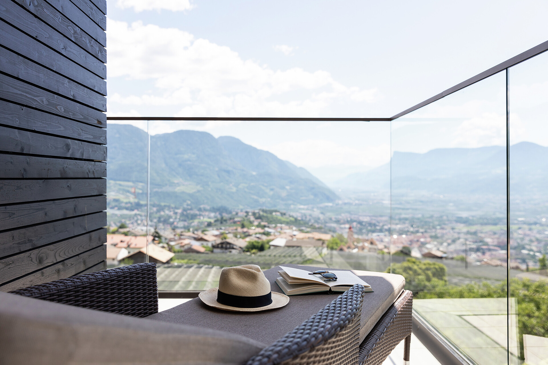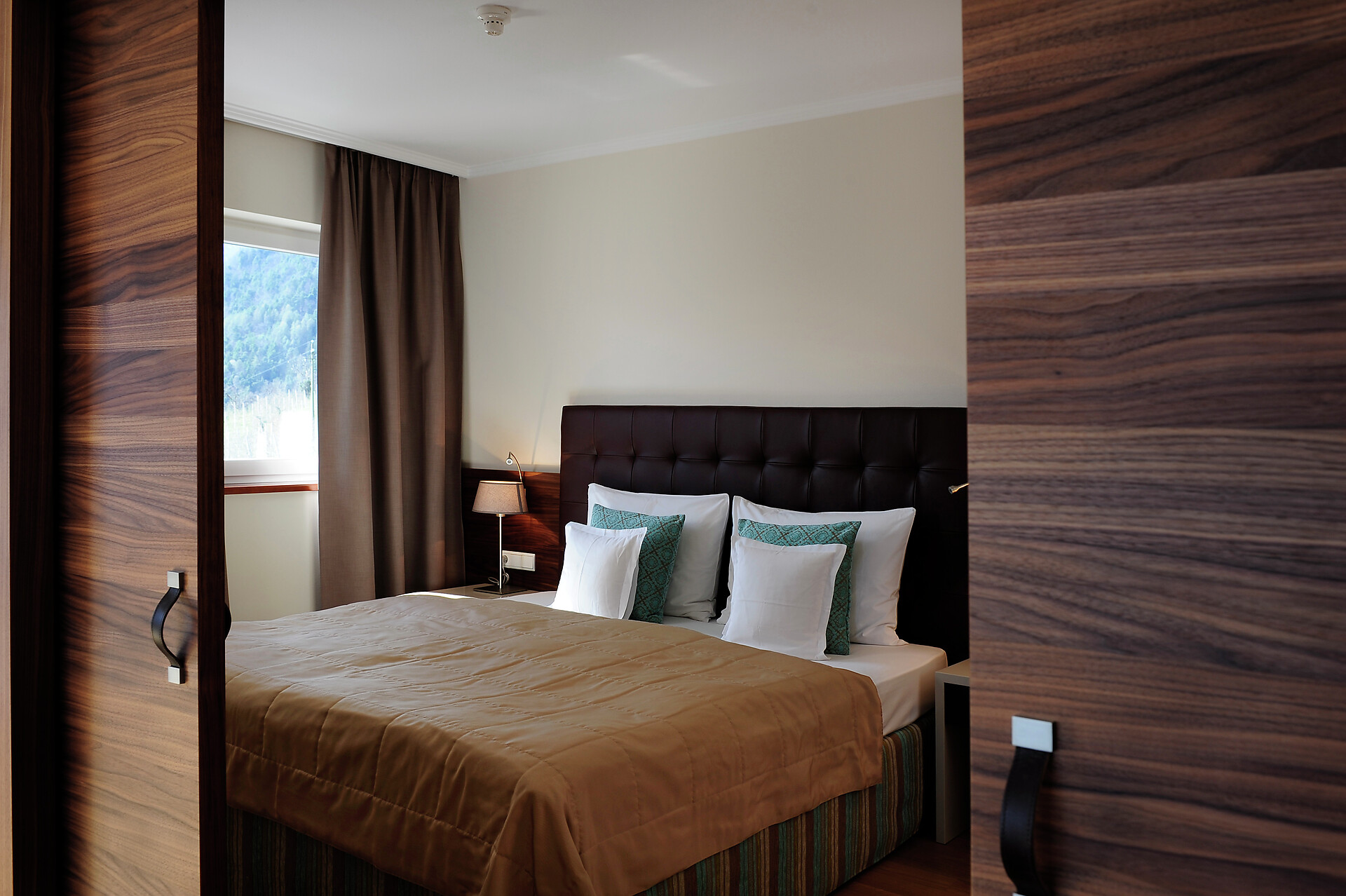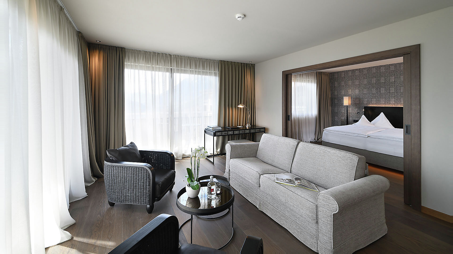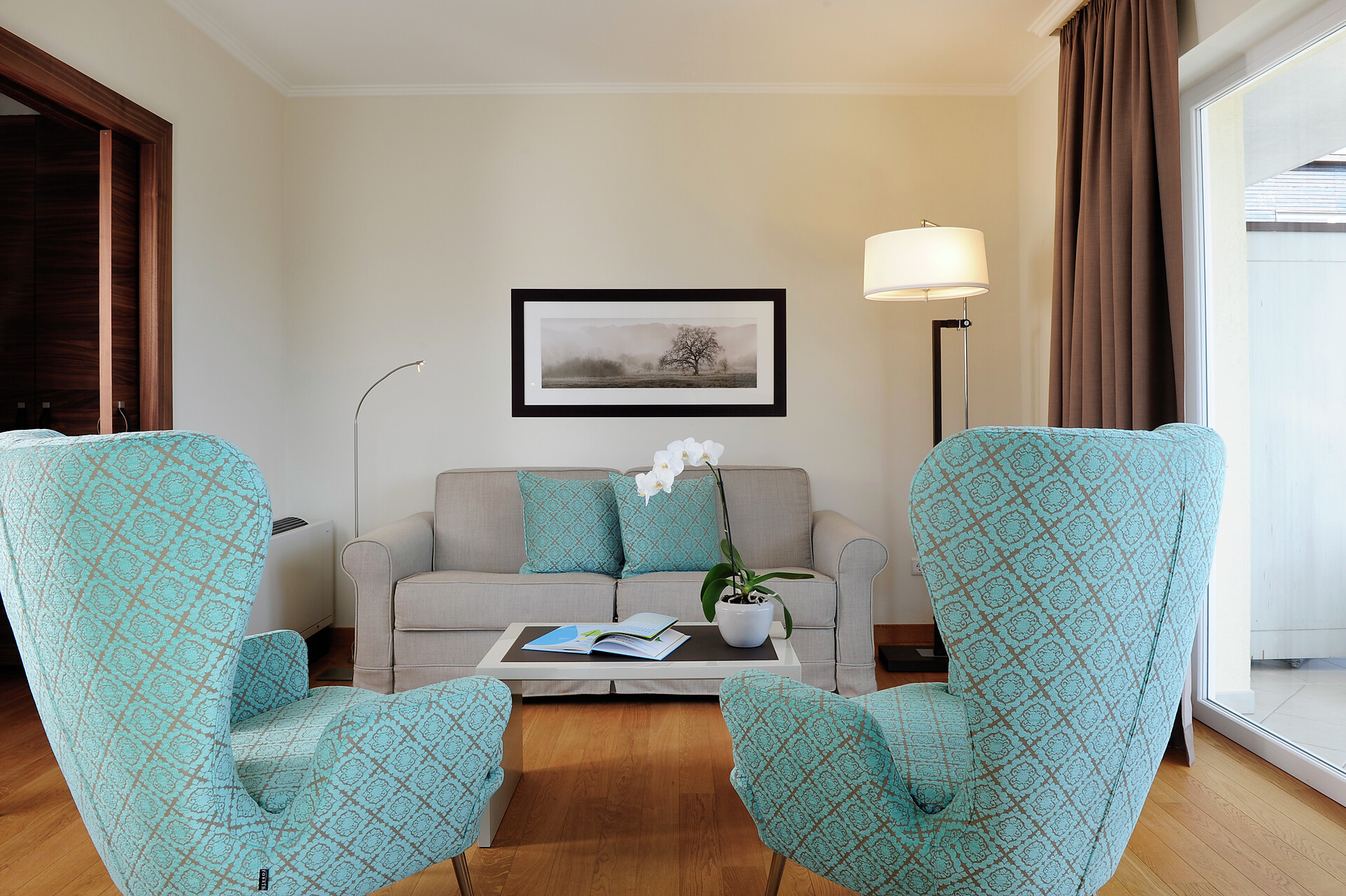 Suite lussuosa con 60 m², 3° piano con 25 m² di balcone esposto a sud e ovest, area soggiorno e area notte separate, pavimento in legno, bagno lussuoso, WC separato, radio, cassaforte, telefono, frigobar, 3 TV-SAT flat-screen, aria condizionata.