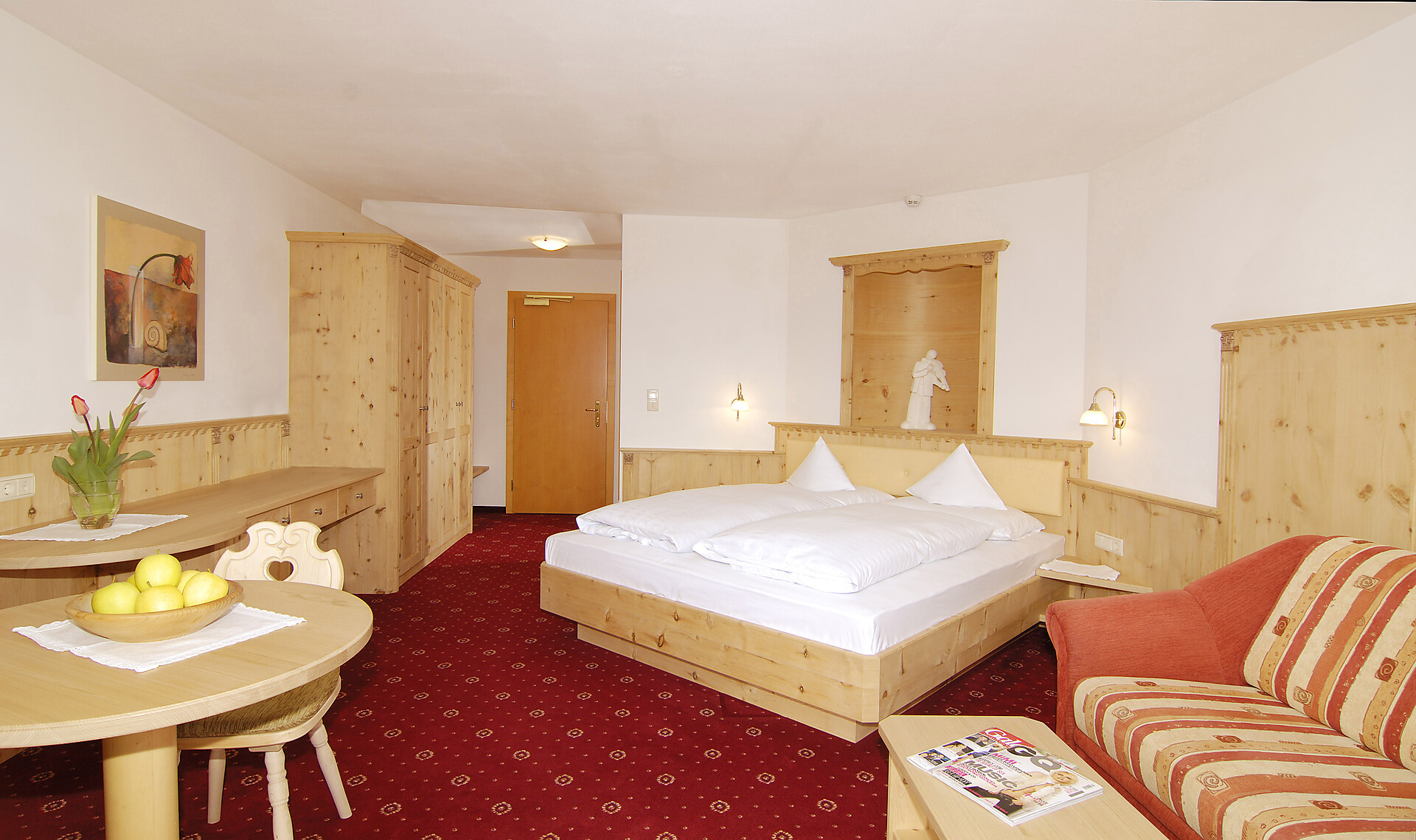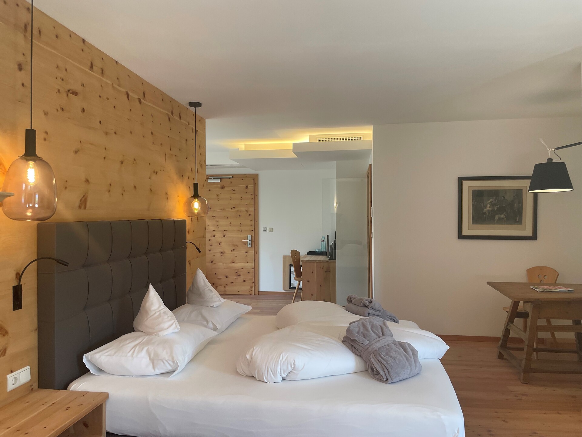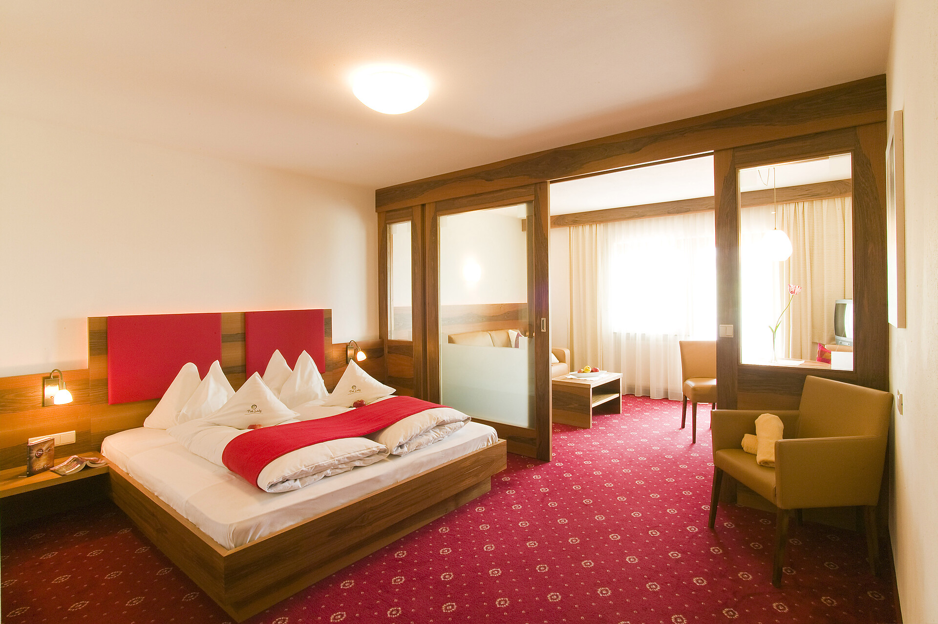 Suite con mobili in cirmolo e pavimento in legno di larice,