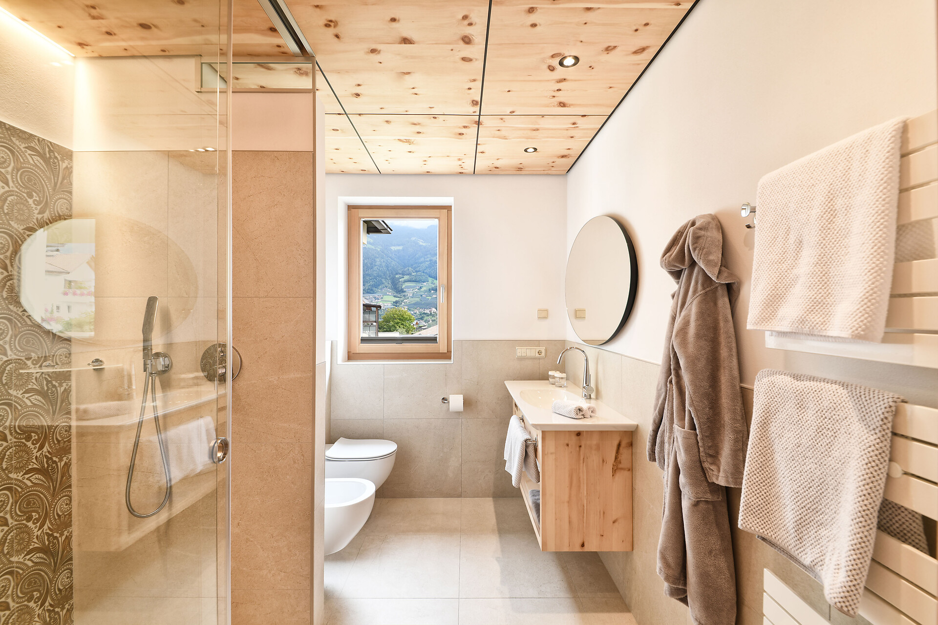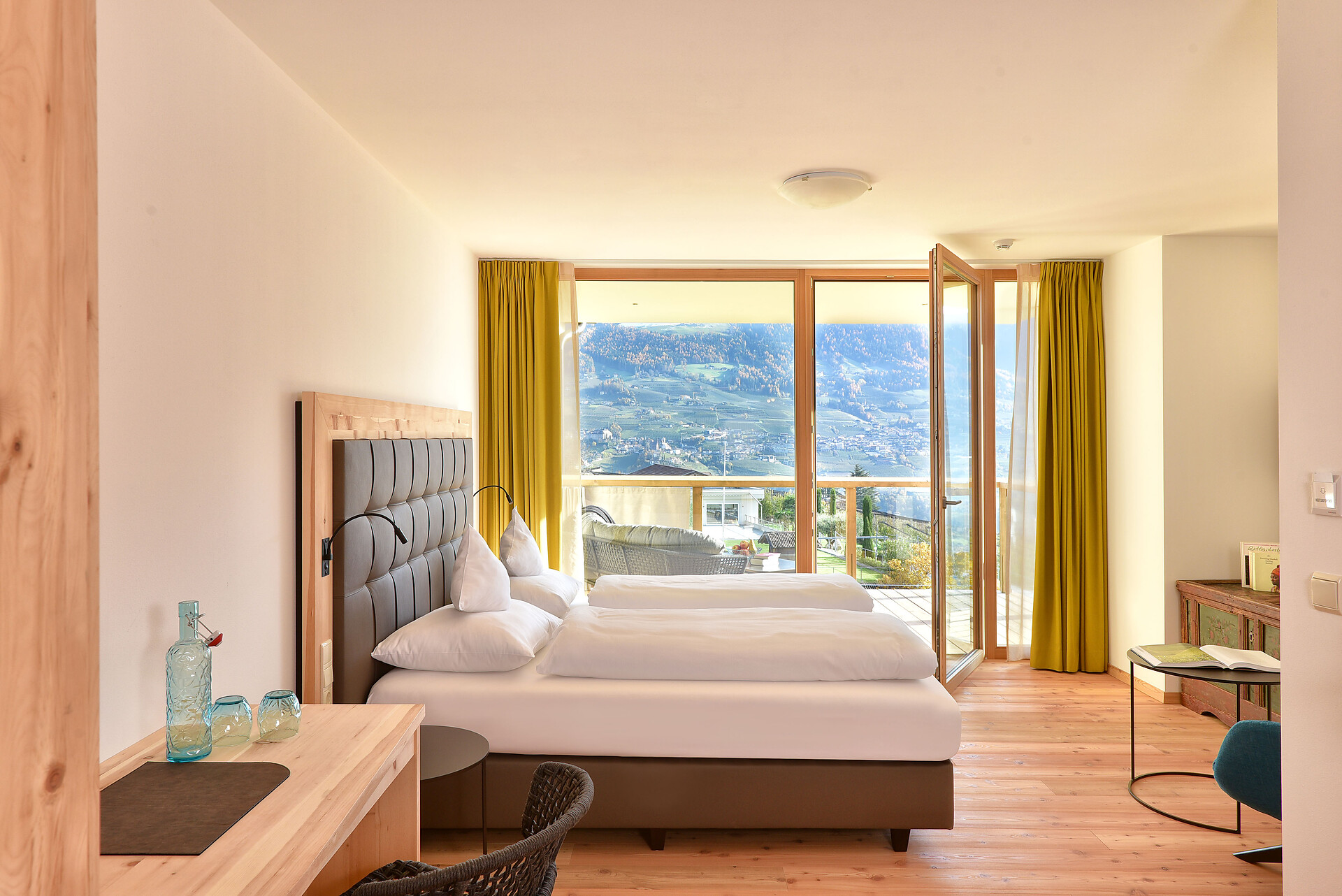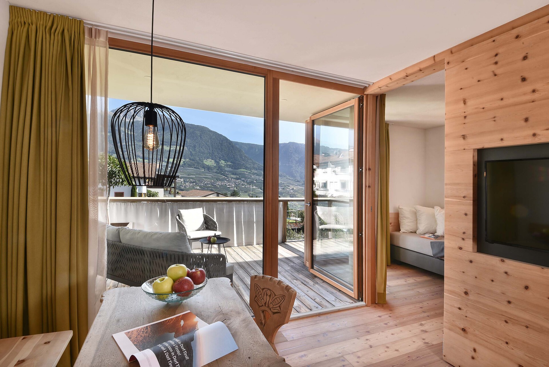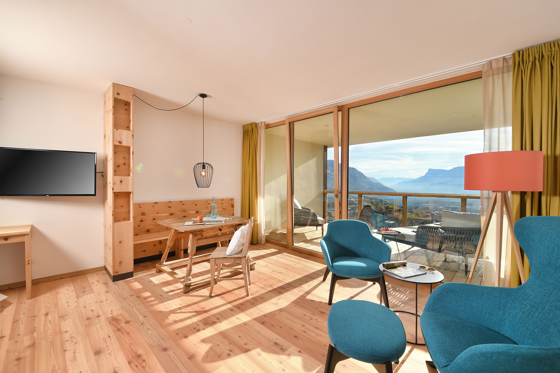 Suite con mobili in cirmolo e pavimento in legno di larice,
