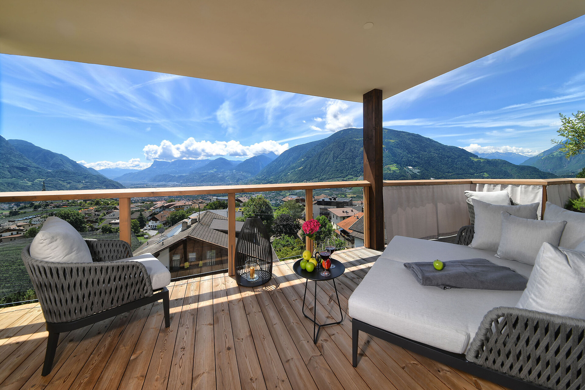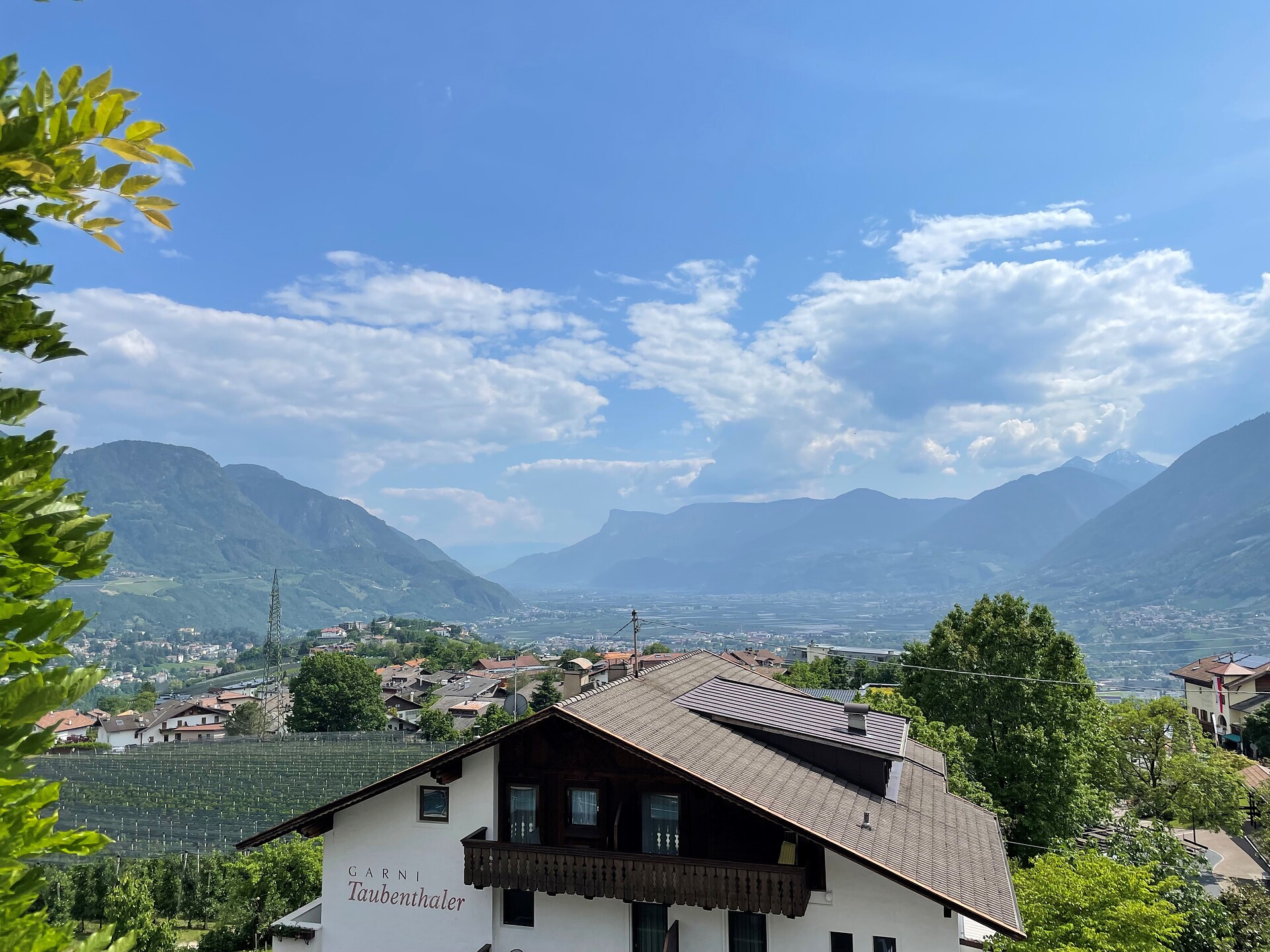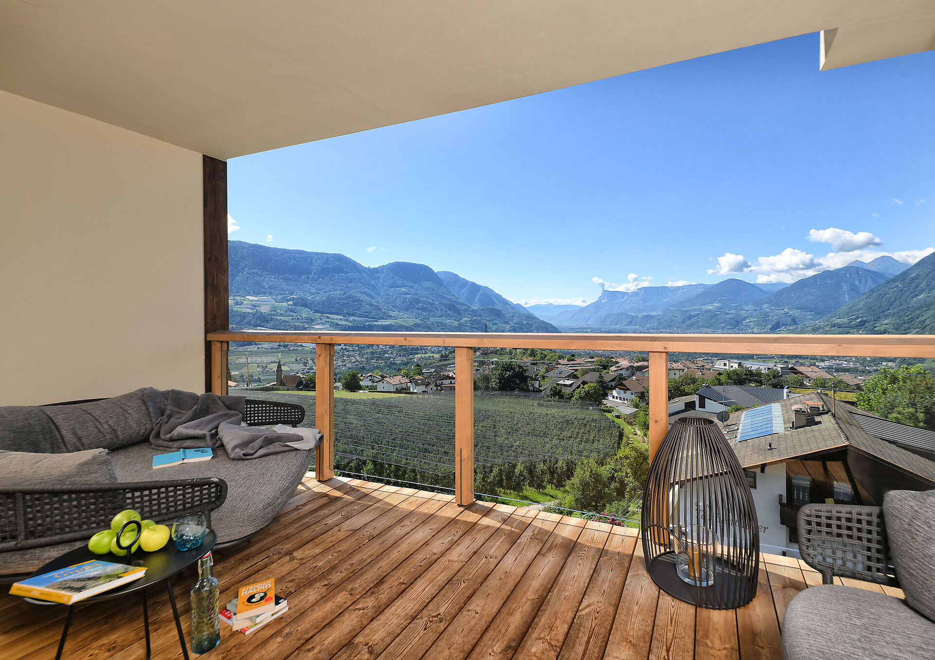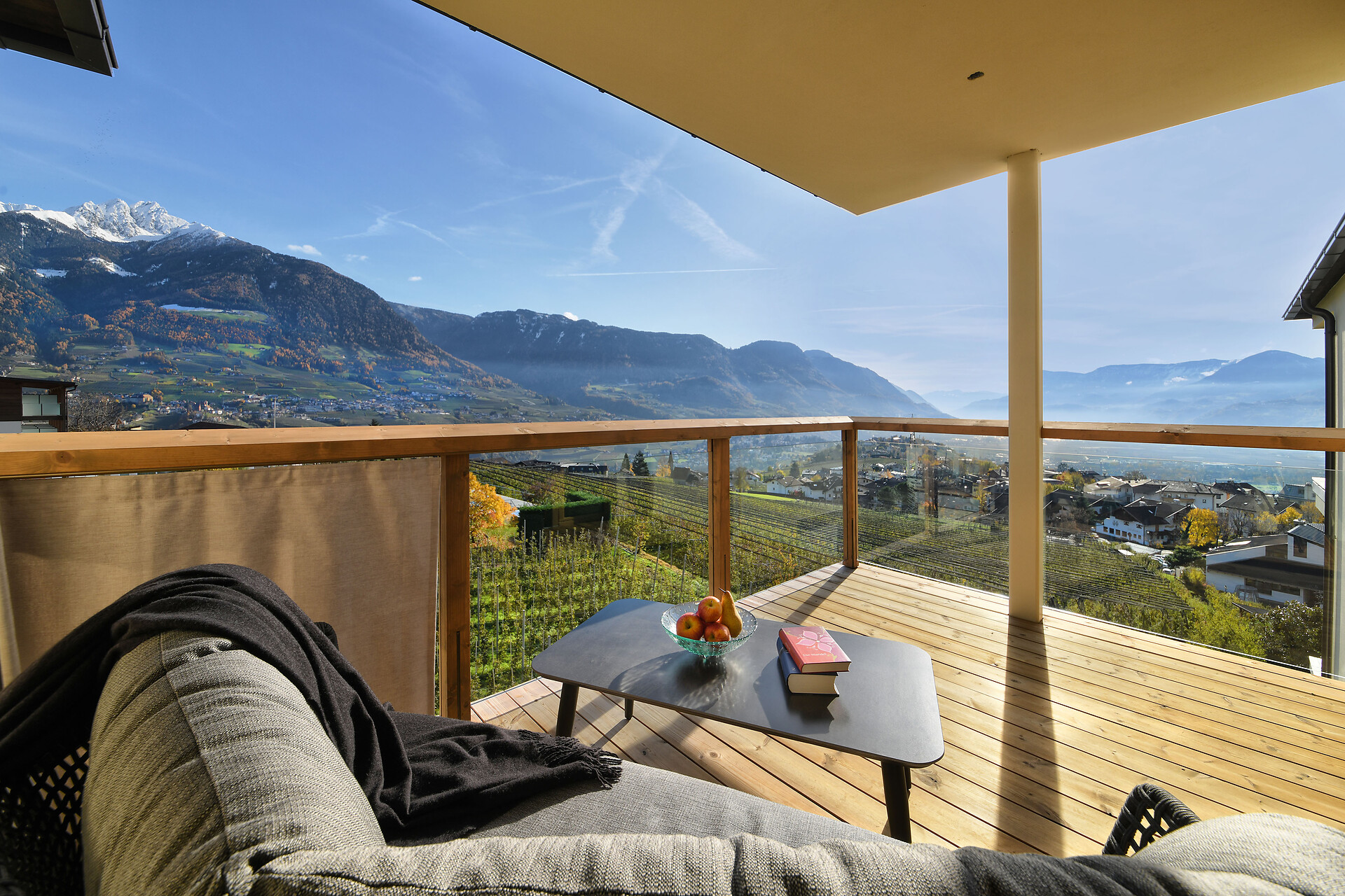 e con un balcone panoramico sul frutteto con una splendida vista alpina sulle montagne (lato est).