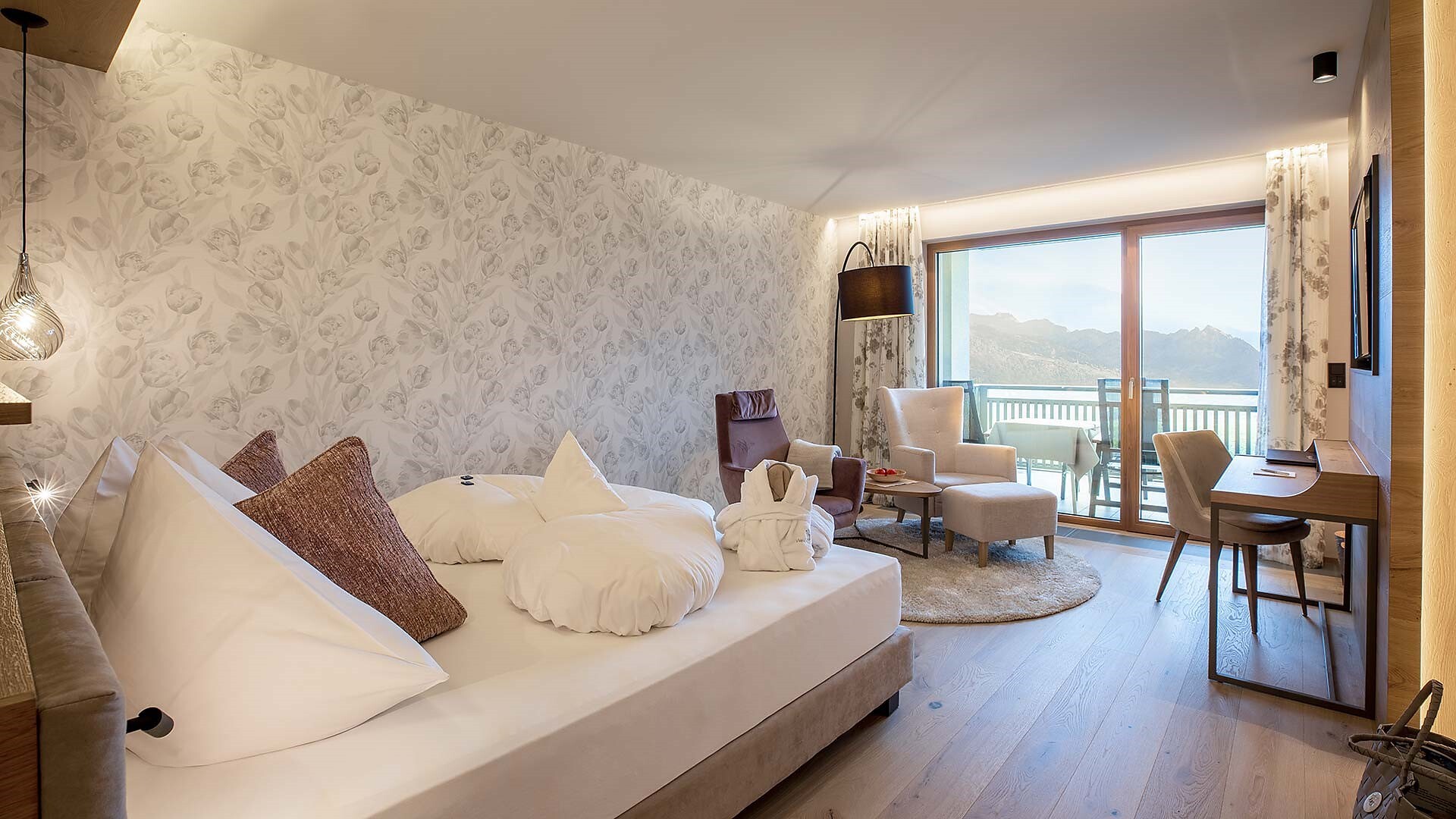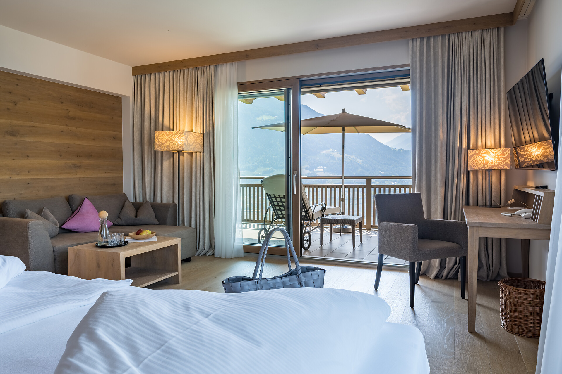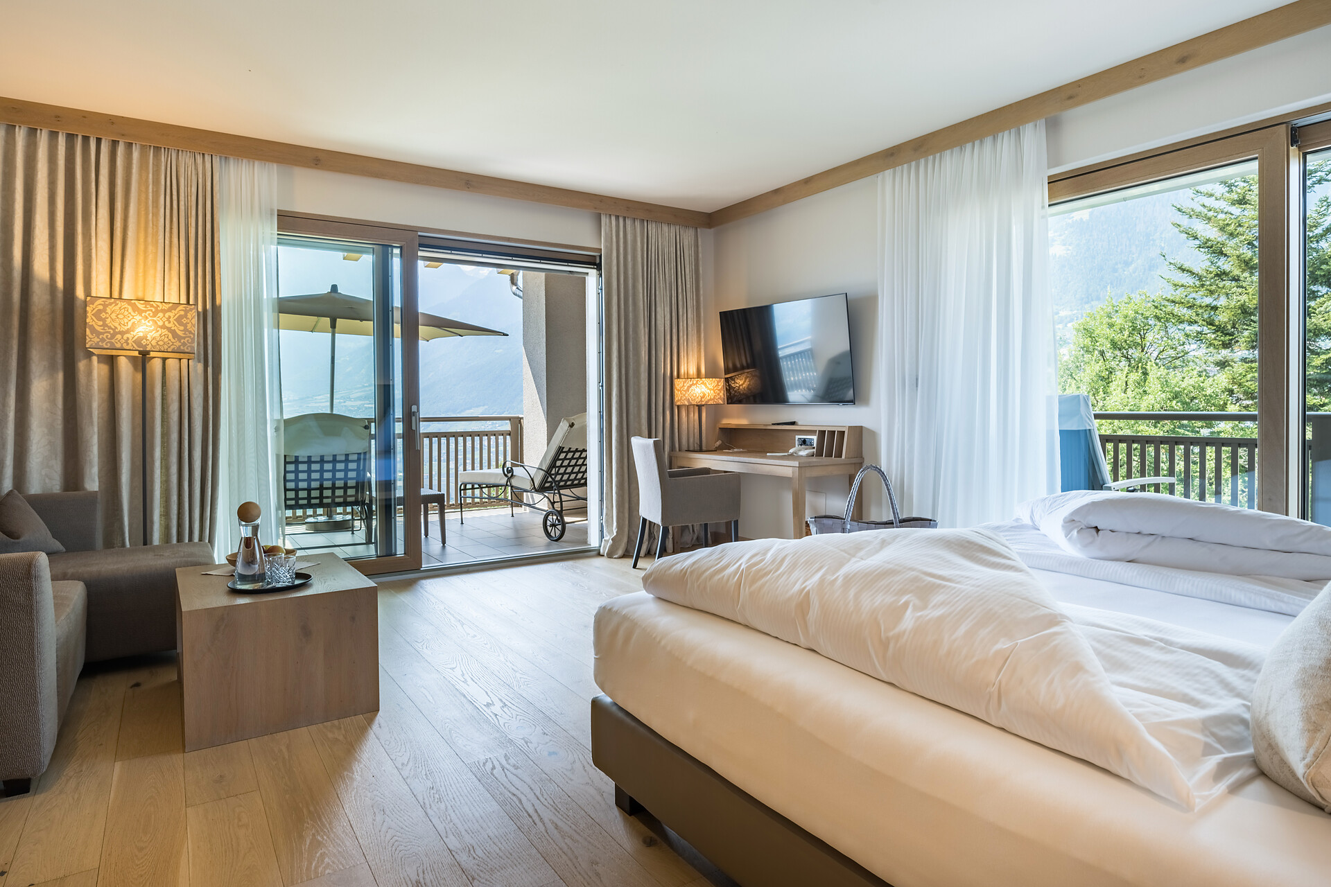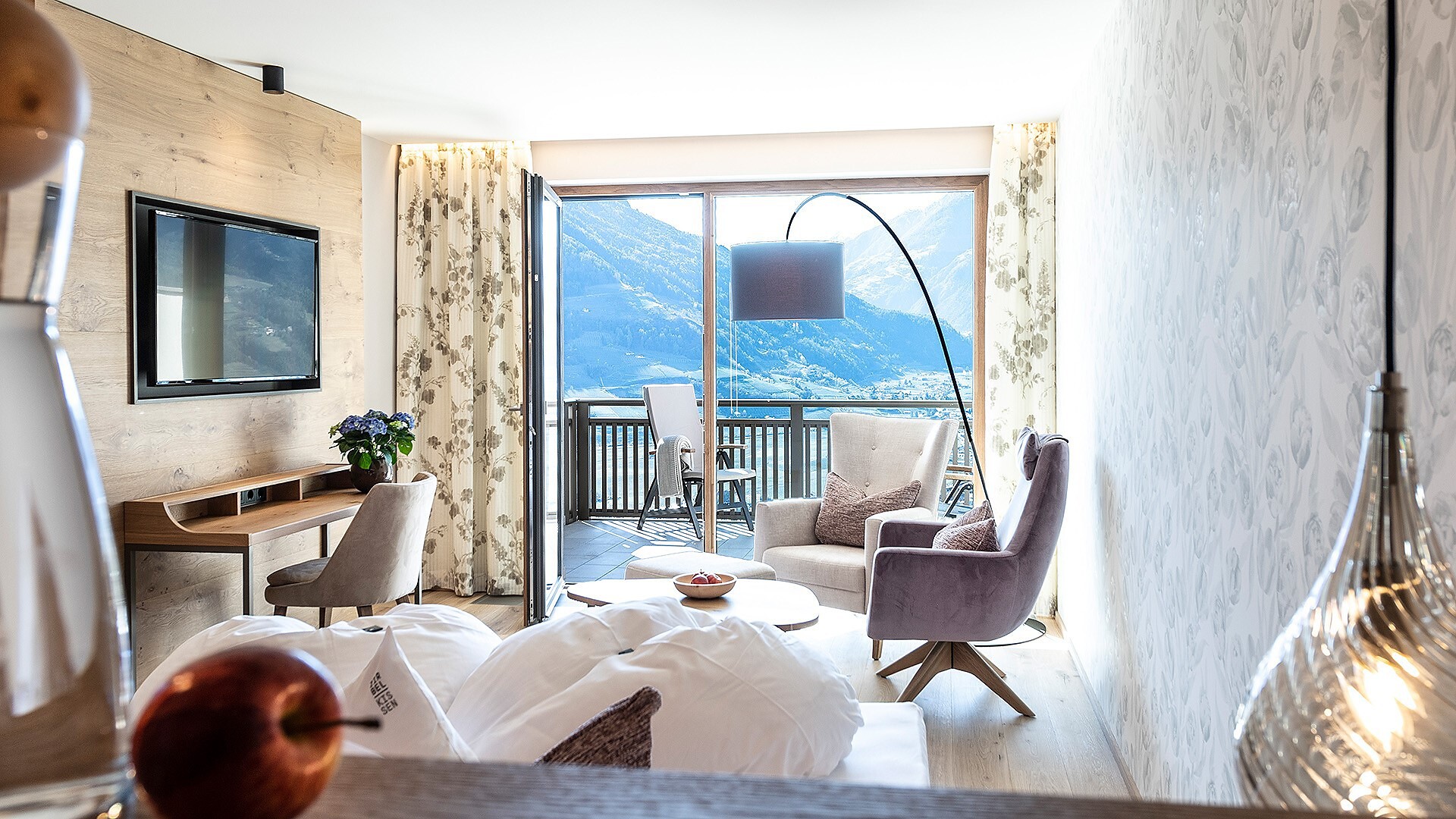 Meravigliosamente liberi e silenziosi Vi attendono i nostri confinanti alberghi Sonnbichl e il Residence Traubenheim, per una vacanza rilassante, sana e sportiva. Viziati dal sole, circondati dalla natura, qui potrete trascorrere bellissimi giorni in un' atmosfera familiare. Lo sguardo cade su Merano, il Burgraviato e colpisce le montagne che circondano, scaldano e proteggono la valle. Questo meraviglioso paesaggio con i suoi morbidi pendiiVi invita a passeggiare e a scalare le montagne, mentre le nostre case Vi invitano al relax.