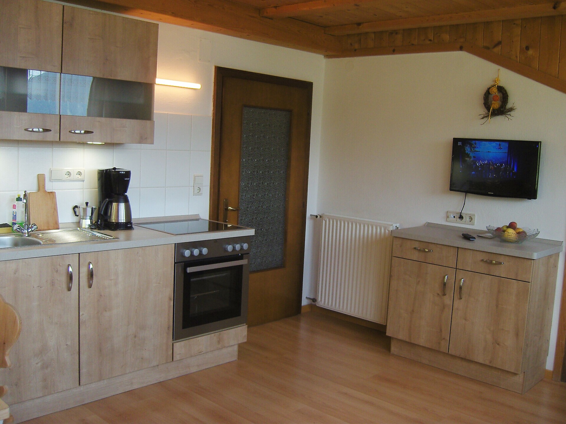 L’appartamento Bergblick - Vista Montagna dispone di una cucina-soggiorno arredata in modo accogliente con televisore, una camera doppia con balcone, un bagno con doccia e finestra e, su richiesta, una piccola camera con due letti (lunghezza dei letti 1,8 m).