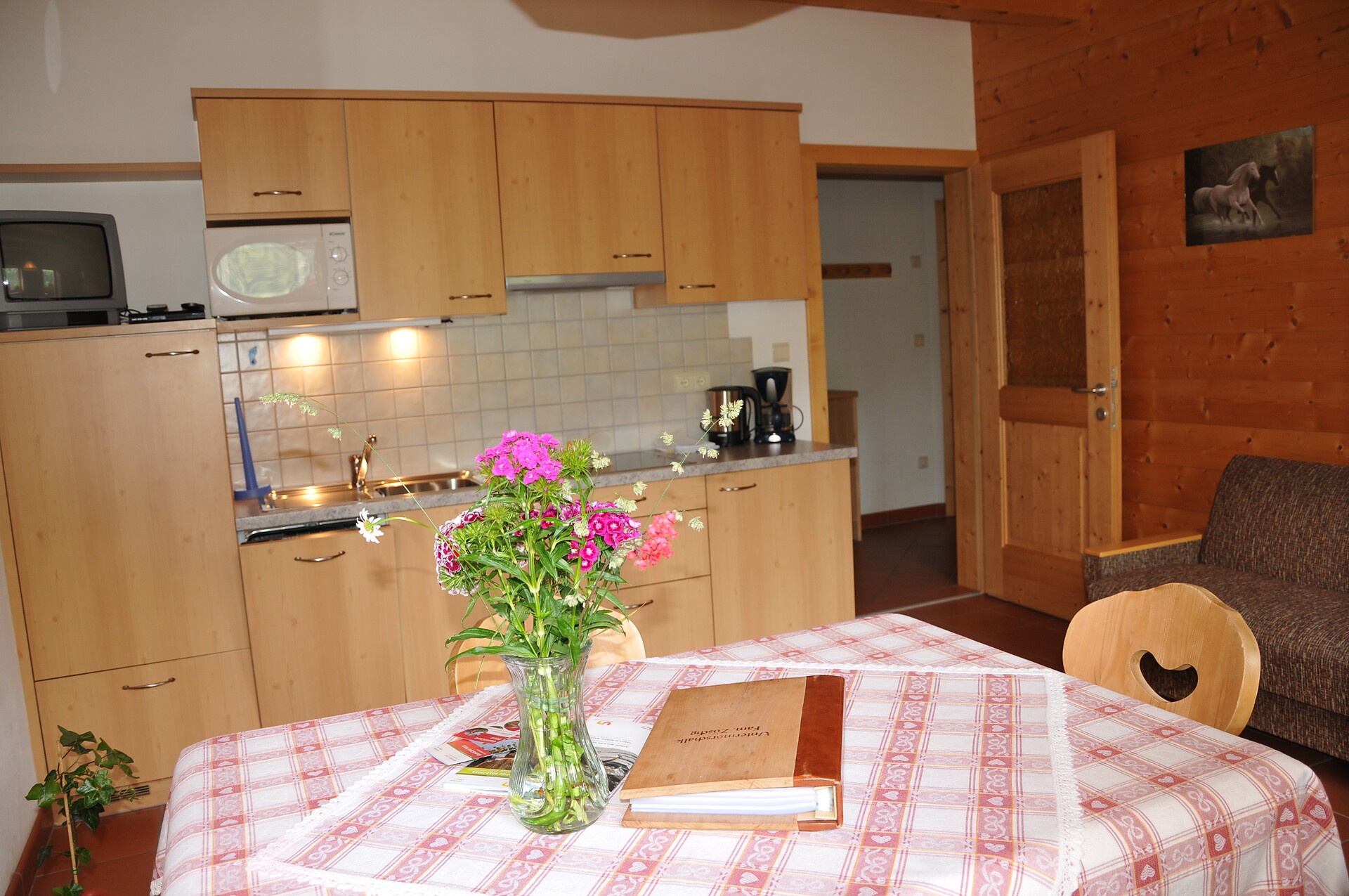 Appartamenti, arredati in legno secondo la tradizione della valle, offrono tranquillita e intimitá e e se alzate lo sguardo vedete le cime dei monti.