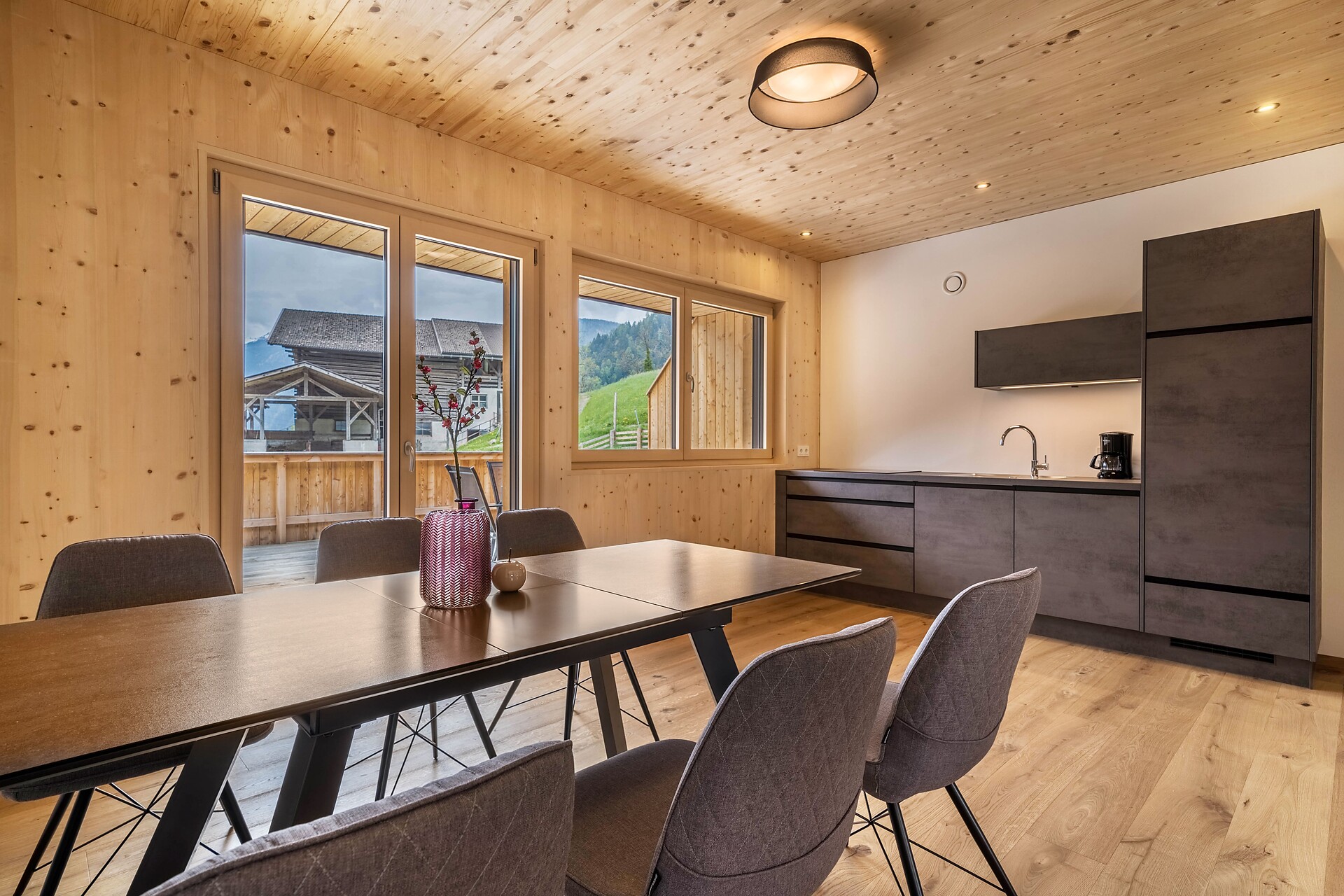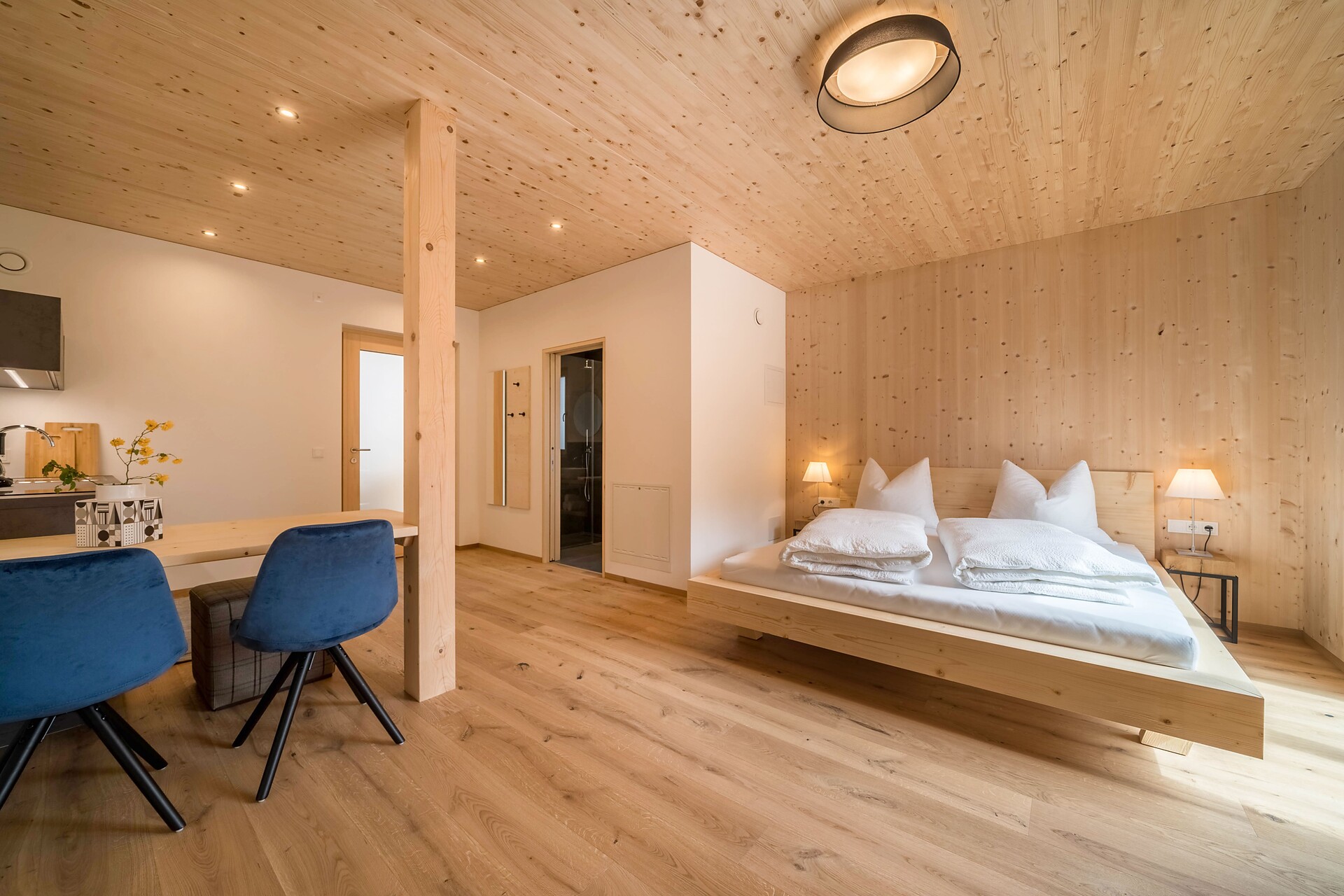 Il nostro profumato appartamento in pino cembro offre spazio per 4 persone ed è composto da una cucina-soggiorno e da 2 camere da letto e bagni separati. Il punto forte: l'ampia terrazza soleggiata esposta a sud-ovest con vista sulle montagne circostanti e sulla natura incontaminata. Il profumo rilassante e aromatico del pino cembro conferisce a questo appartamento un ulteriore carattere di benessere.