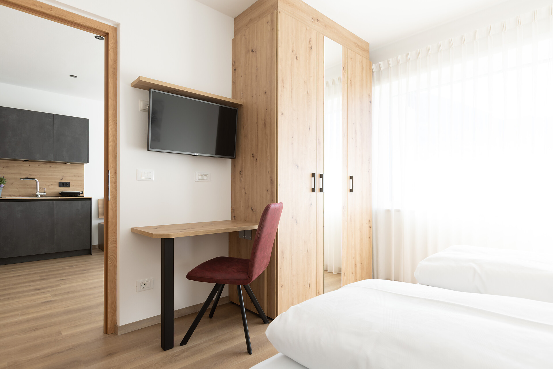 Accogliente appartamento per vacanze con soggiorno con cucina completamente attrezzata, lavastoviglie, detersivo, forno a microonde, macchina per il caffè, bollitore, tostapane e tutti gli utensili da cucina standard, frigorifero con piccolo scomparto freezer, zona pranzo e divano, che può essere utilizzato come divano letto, TV satellitare. 1 camera da letto con letto matrimoniale e TV satellitare. Bagno con doccia a pioggia, bidet e asciugacapelli. WLAN gratuita. Cassaforte a muro. Lenzuola, asciugamani e strofinacci inclusi. Balcone esposto a sud con vista panoramica.