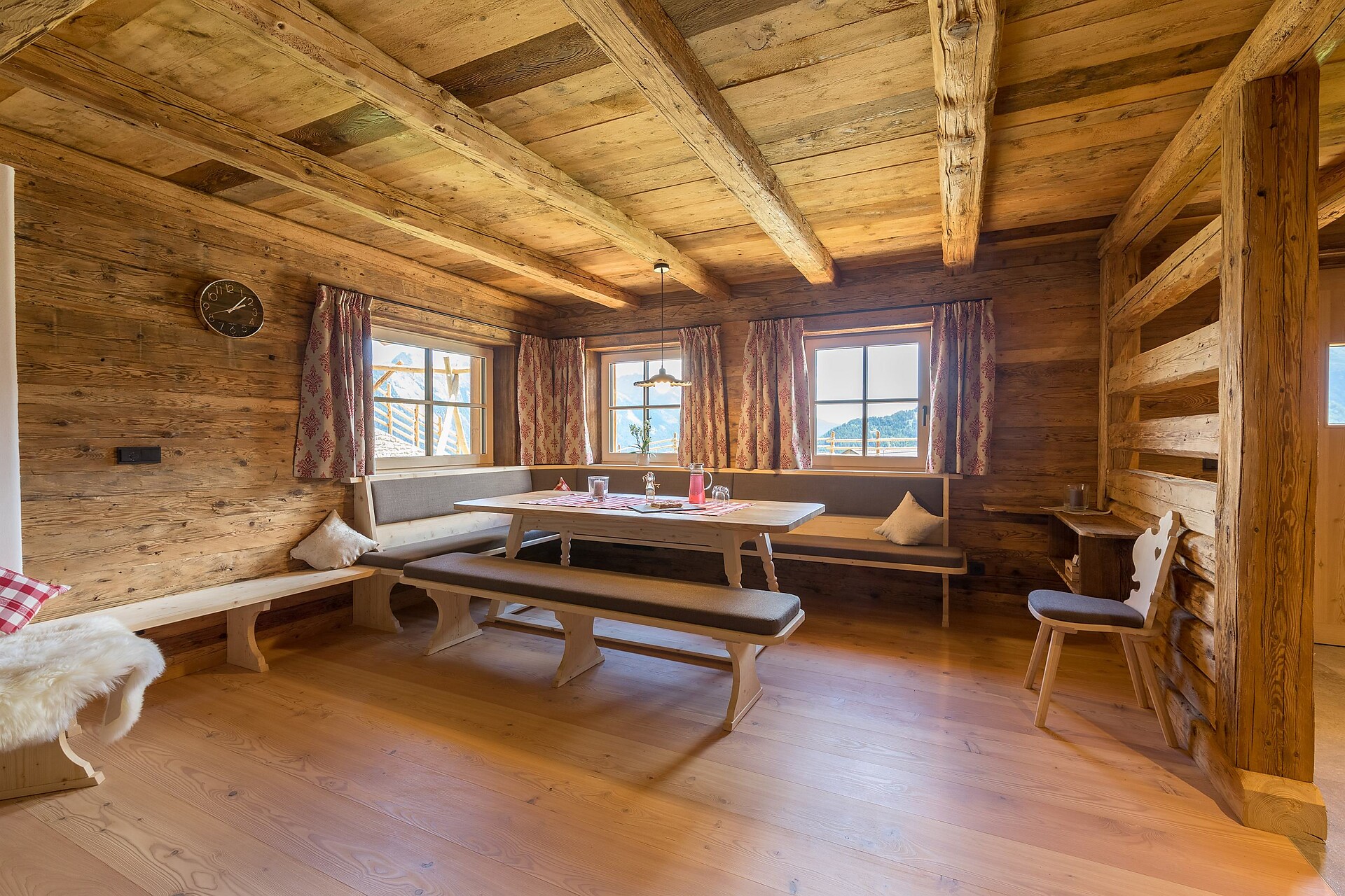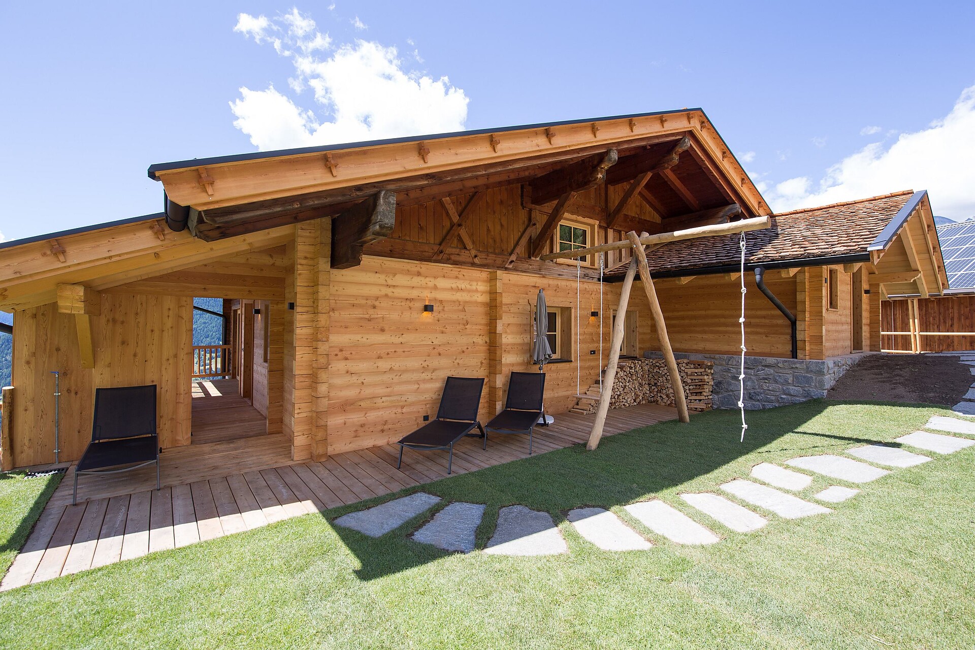 Questo bellissimo chalet di lusso in Val Passiria è circondato da prati verdi. Lo chalet di montagna Unterweger Edelweiss è stato costruito di recente e progettato con molto amore, un occhio di riguardo per i dettagli e un riuscito mix di rustico accogliente e un certo tocco di lusso. Quando i ceppi di legna scoppiettano nella stufa e lo sguardo può spaziare attraverso la finestra panoramica sulla pittoresca natura dell'Alto Adige, l'ampio soggiorno con cucina a vista e zona divani diventa davvero accogliente. Al piano terra di 100 m² si trovano il soggiorno e la sala da pranzo, una camera da letto con letto matrimoniale e un'altra finestra panoramica, nonché un grande bagno con doccia e vasca autoportante e un WC diurno separato con doccia. Il grande bagno ha anche una finestra panoramica e una sauna a infrarossi per armoniose serate all'insegna delle onde - con spazio per 4 persone, un piacere per il corpo e per l'anima. Al piano superiore si trovano altre due camere da letto, ciascuna con balcone, che si estendono su 70 m².
