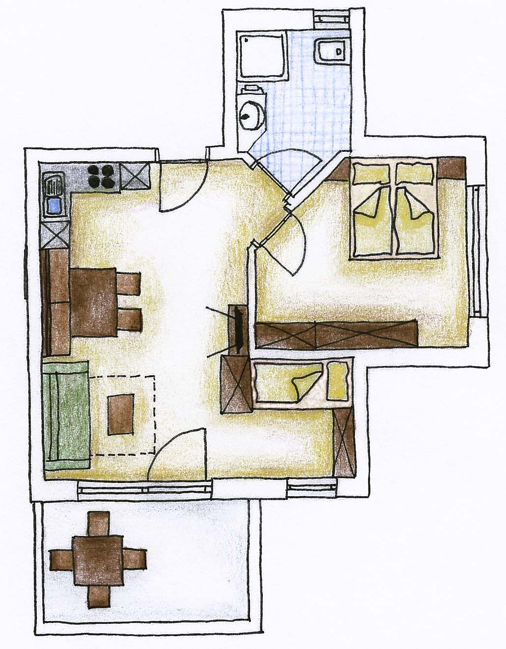 Letto matrimoniale, Divano letto matrimoniale, Terrazza, Giardino, Senza barriere architettoniche , Soggiorno separato, Biancheria da letto disponibile, Cassaforte, Appartamento non fumatori, Cucina abitabile, Macchina da caffè, Lavastoviglie, Forno a microonde, Stoviglie, Piano cottura, Scaldaacqua, Doccia / bagno, Fon, Asciugamani, TV, WLAN, Pulizia su richiesta, Edificio principale, Vista panoramica, Lato sud