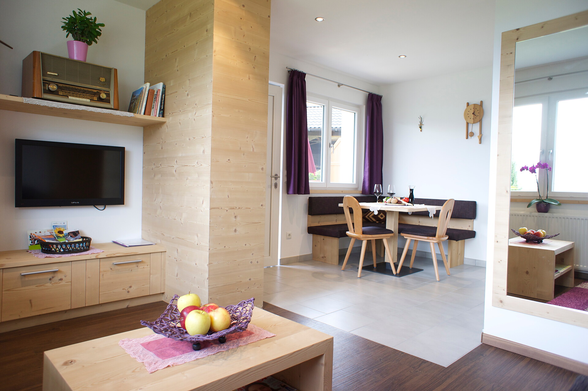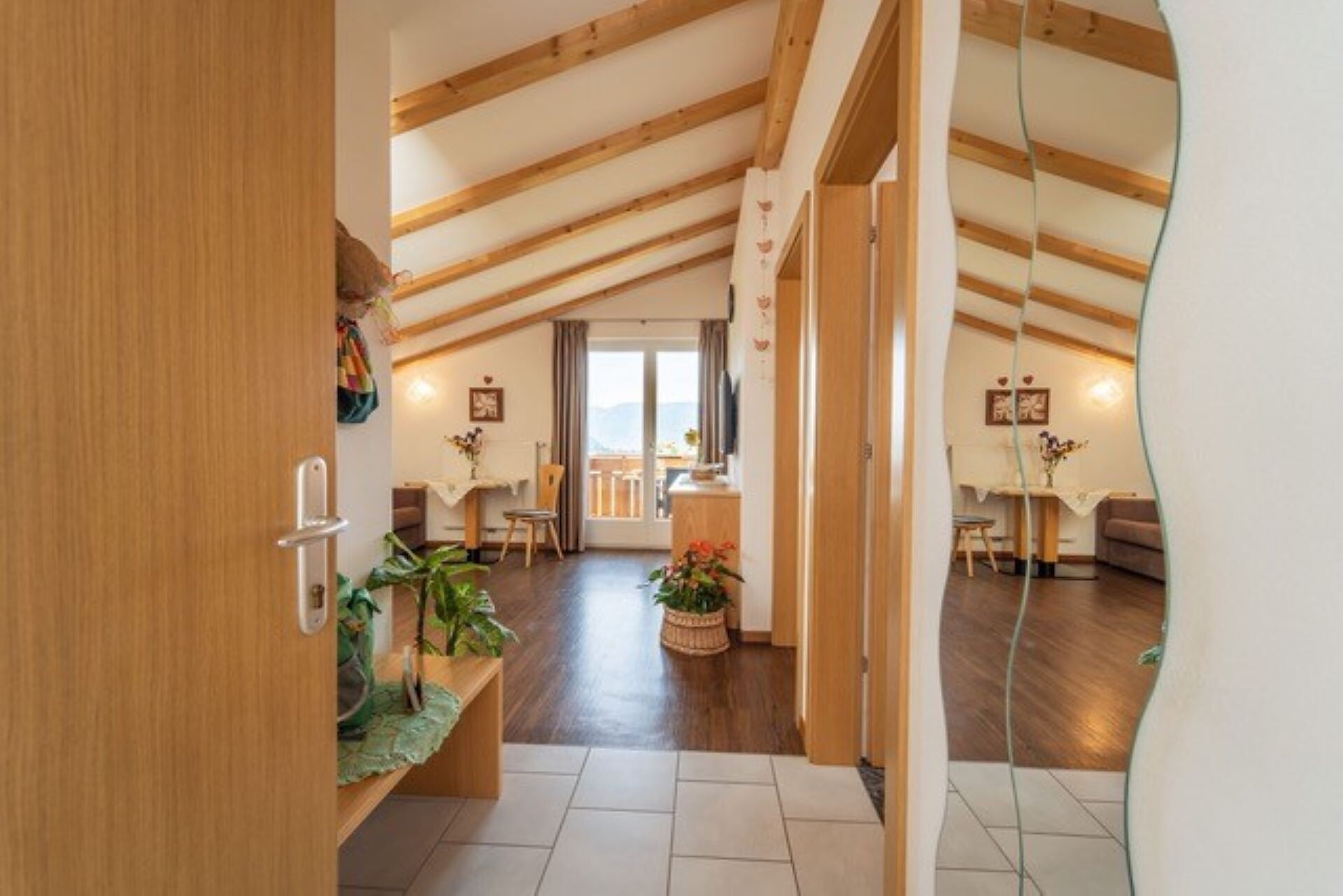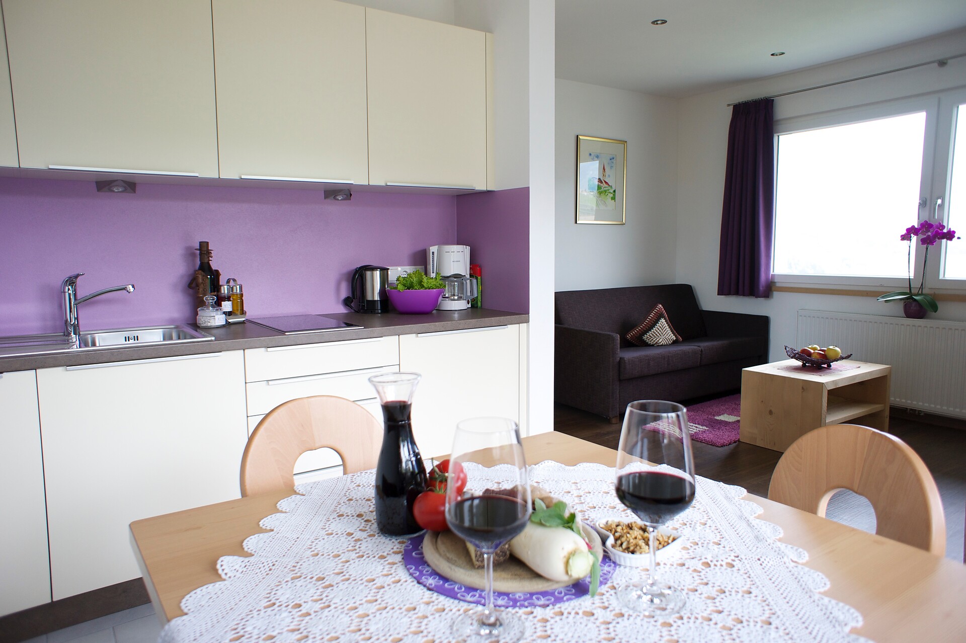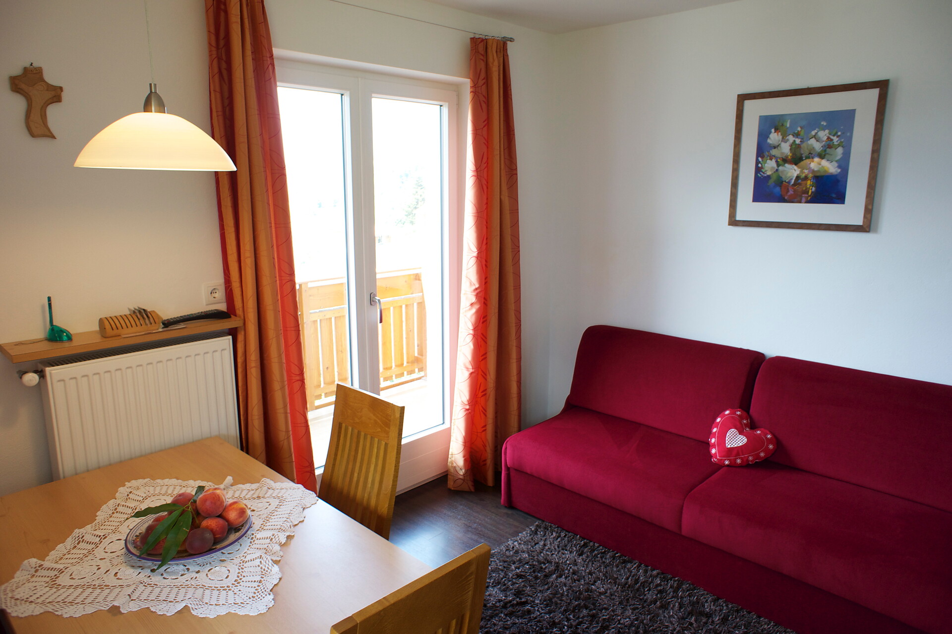 Inoltre, due ampi balconi (lato sud e sud-est); 3 stanze separate con porte (camera da letto, bagno, cucina-soggiorno). Gli appartamenti sono arredati con mobili in legno naturale e godono di una vista panoramica unica. Punto forte: vista da sogno sulla valle. Lenzuola e asciugamani, nonché tutte le attrezzature per la cucina e la casa sono forniti. In tutti gli appartamenti è possibile affittare un'ulteriore camera doppia con bagno/WC/balcone panoramico/sicurezza/SAT-TV/WLAN.