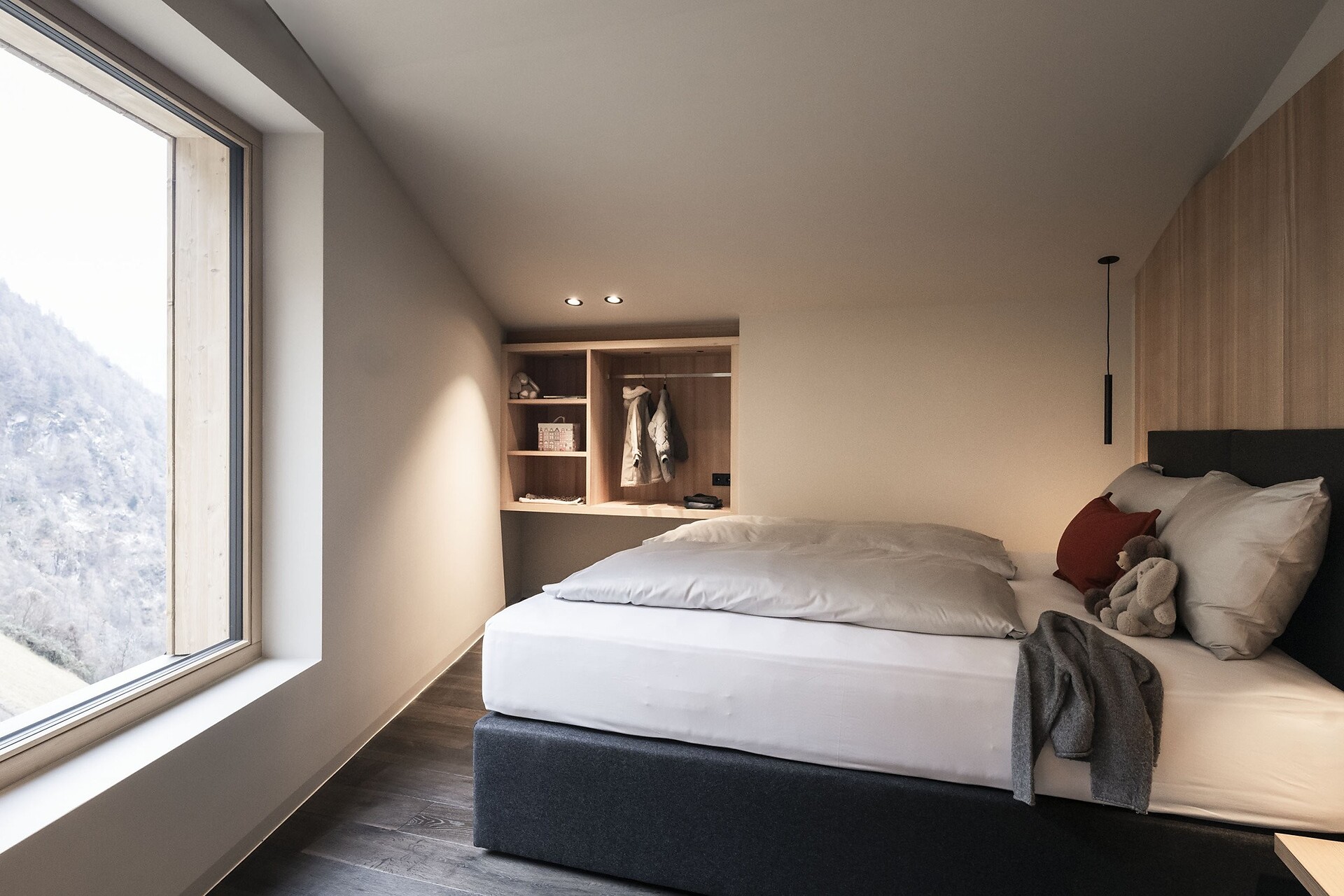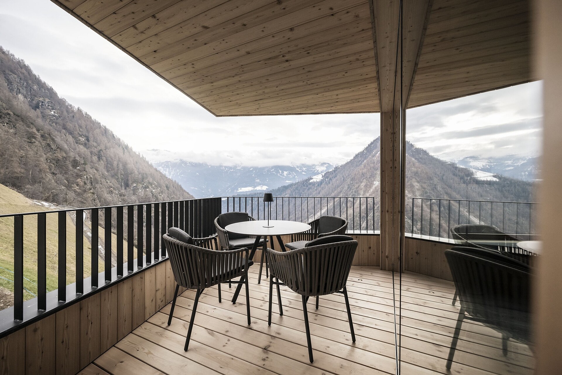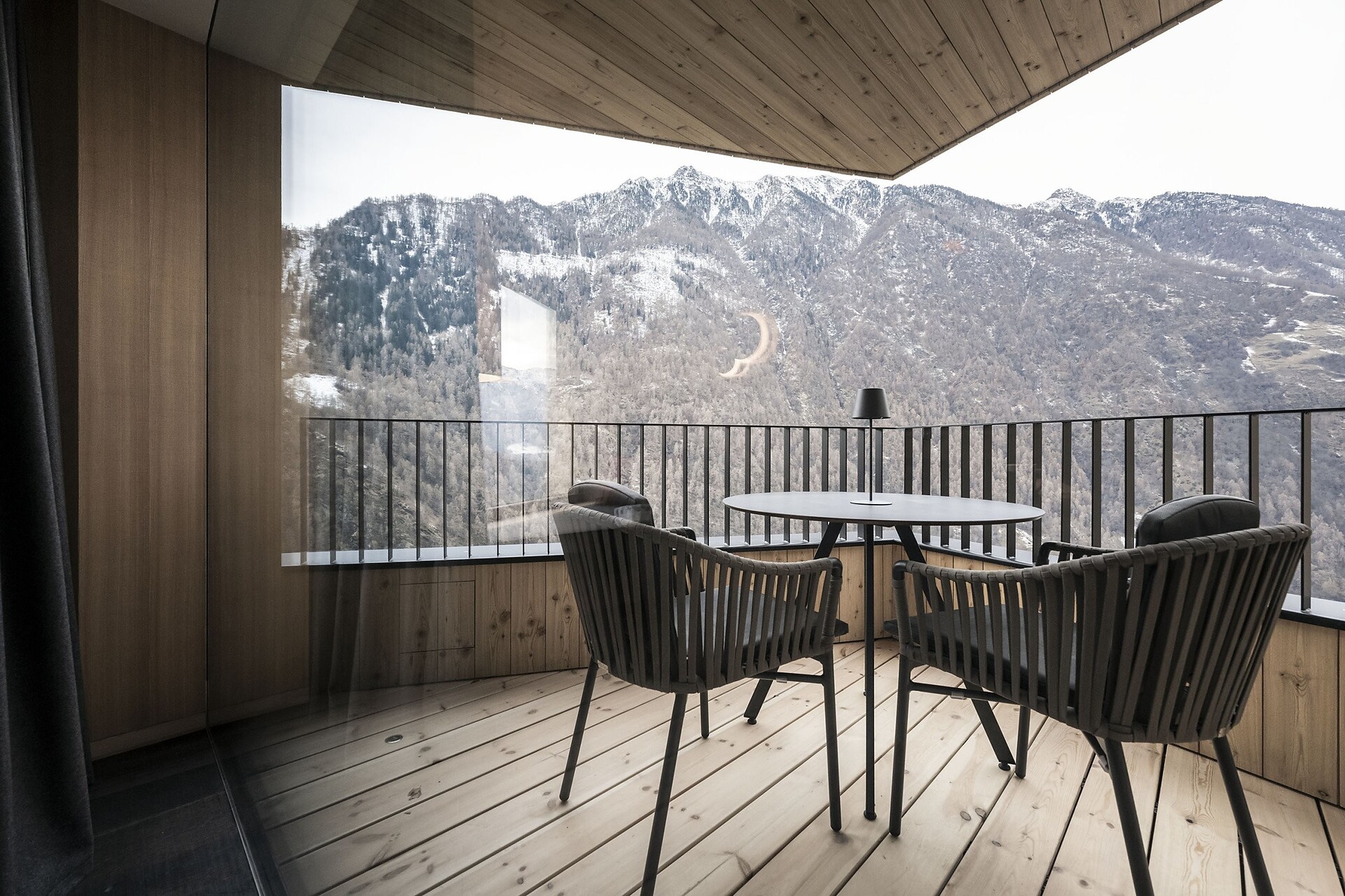 Un punto forte è il piccolo balcone, che offre una vista mozzafiato sulle montagne e invita al relax.