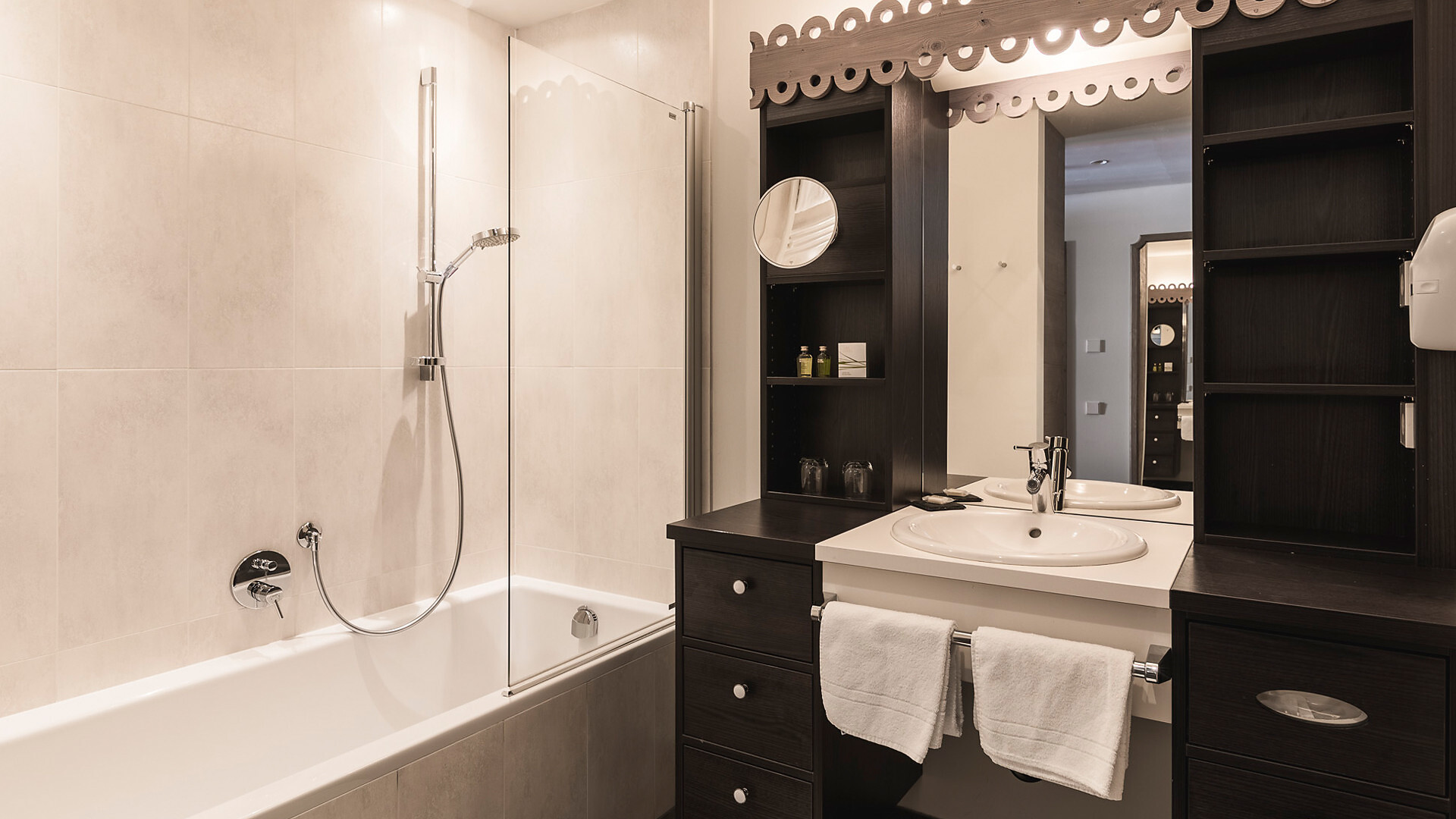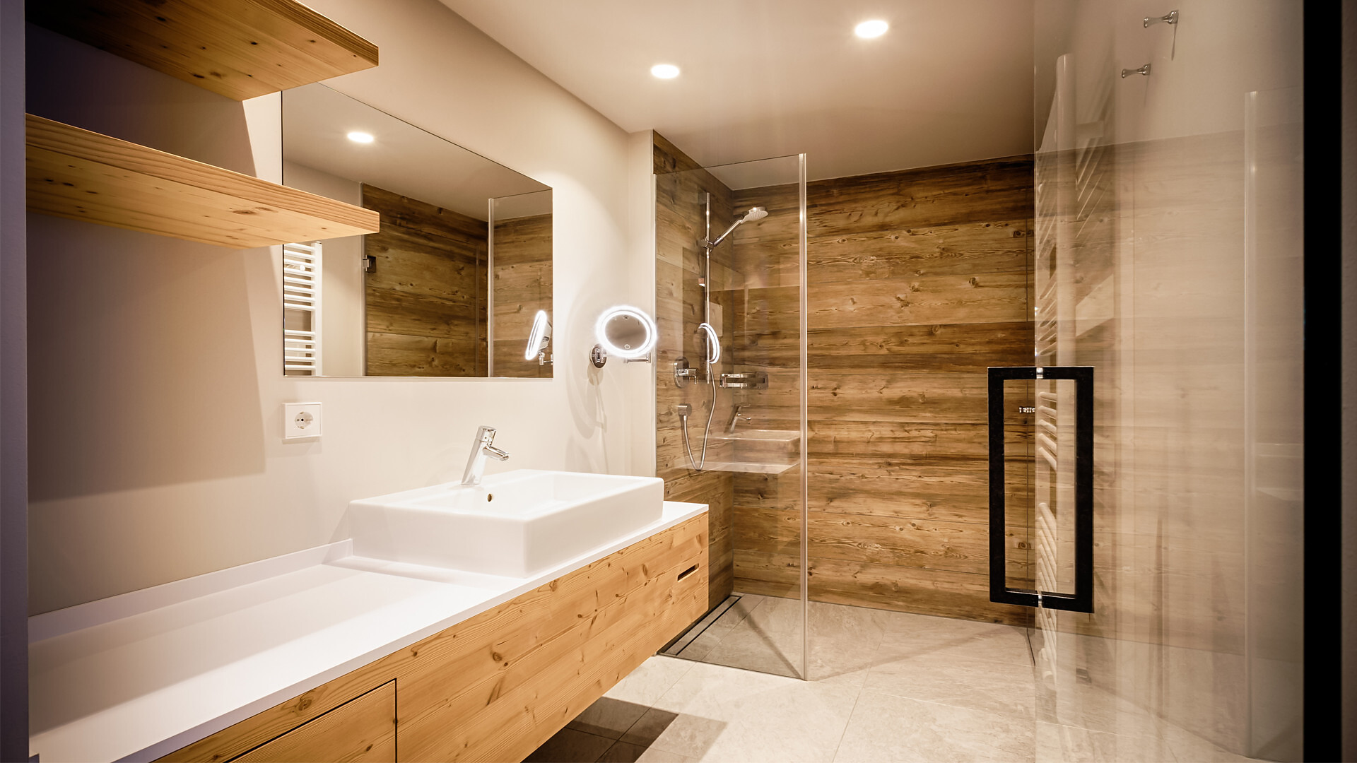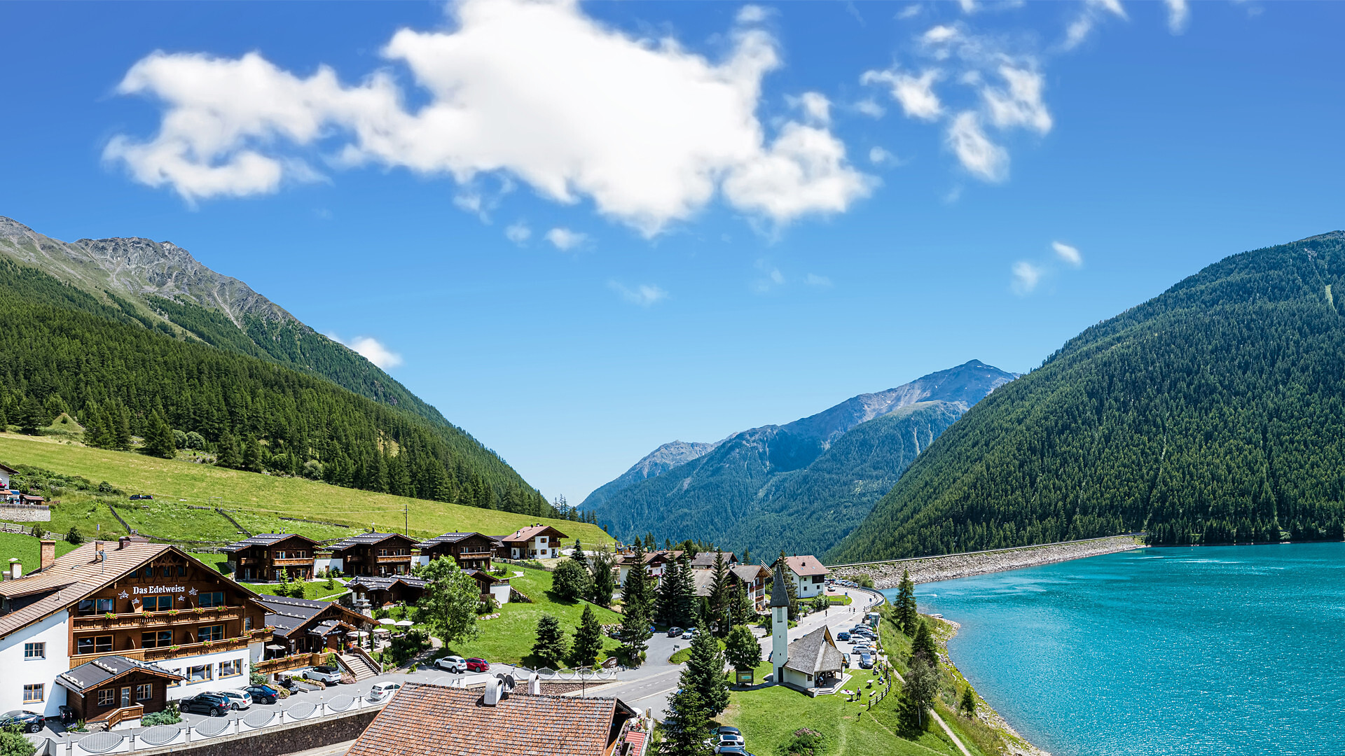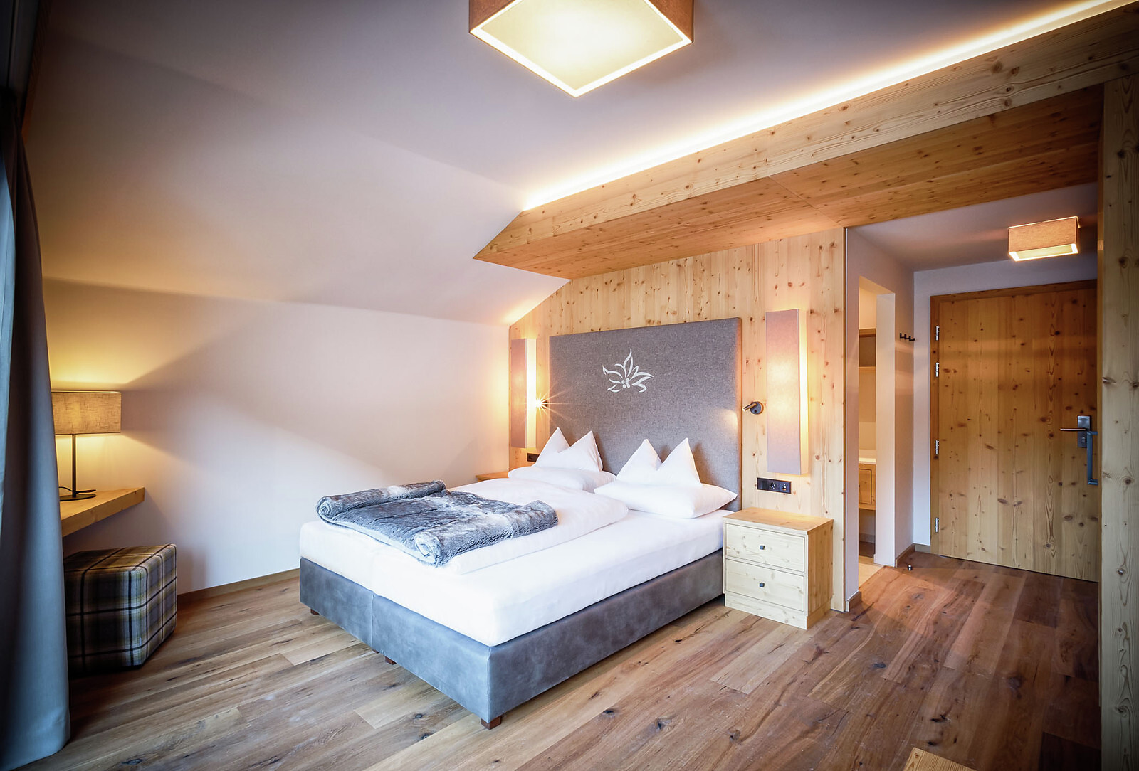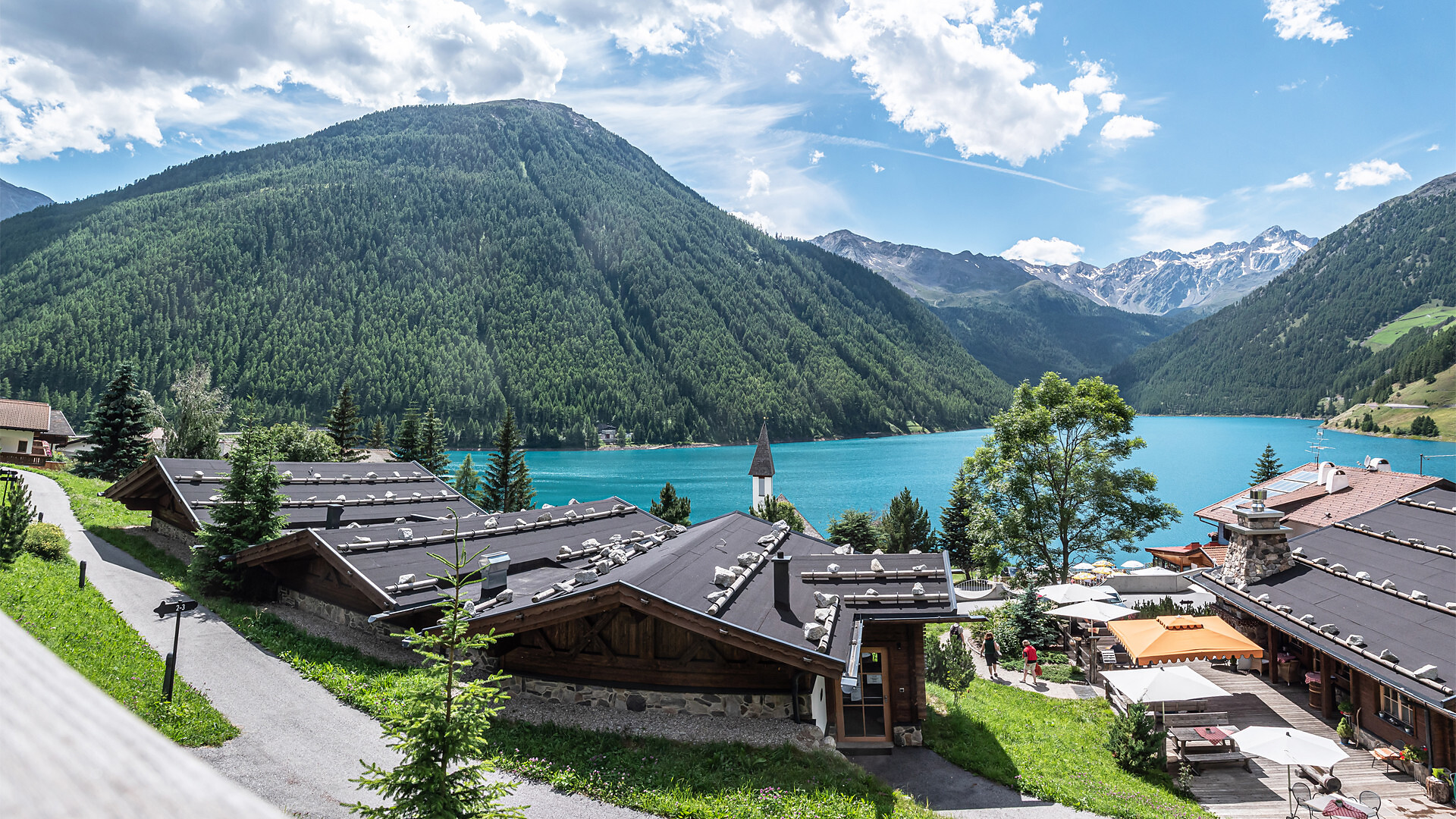 60 m² di stile alpino | Zona giorno e notte separate | Terrazza con vista spettacolare sul lago e sulla montagna | Bagno, WC, doccia e asciugacapelli, teli e accappatoi per il centro benessere alpino | Must Have: TV, WIFI, cassetta di sicurezza.
