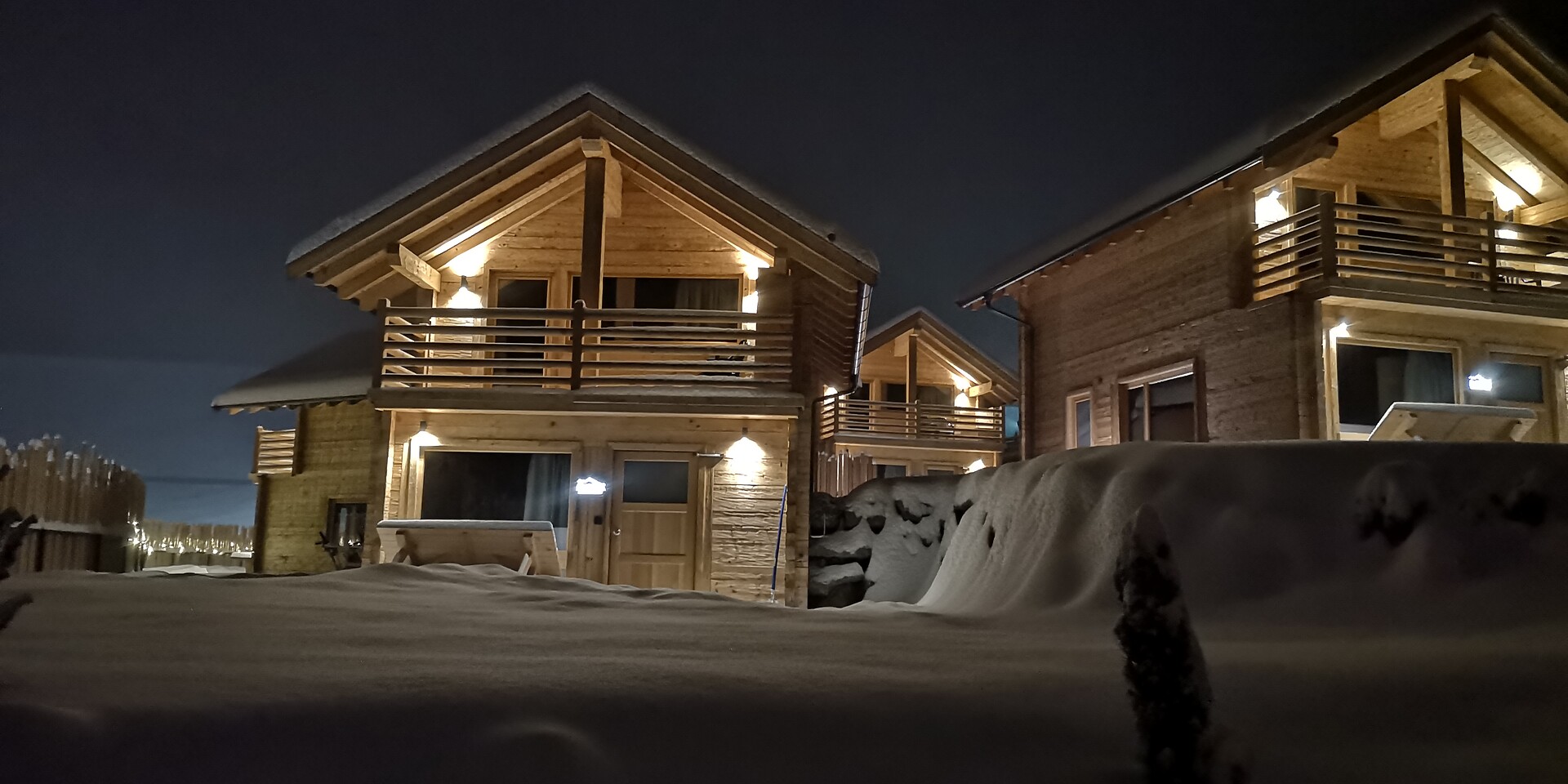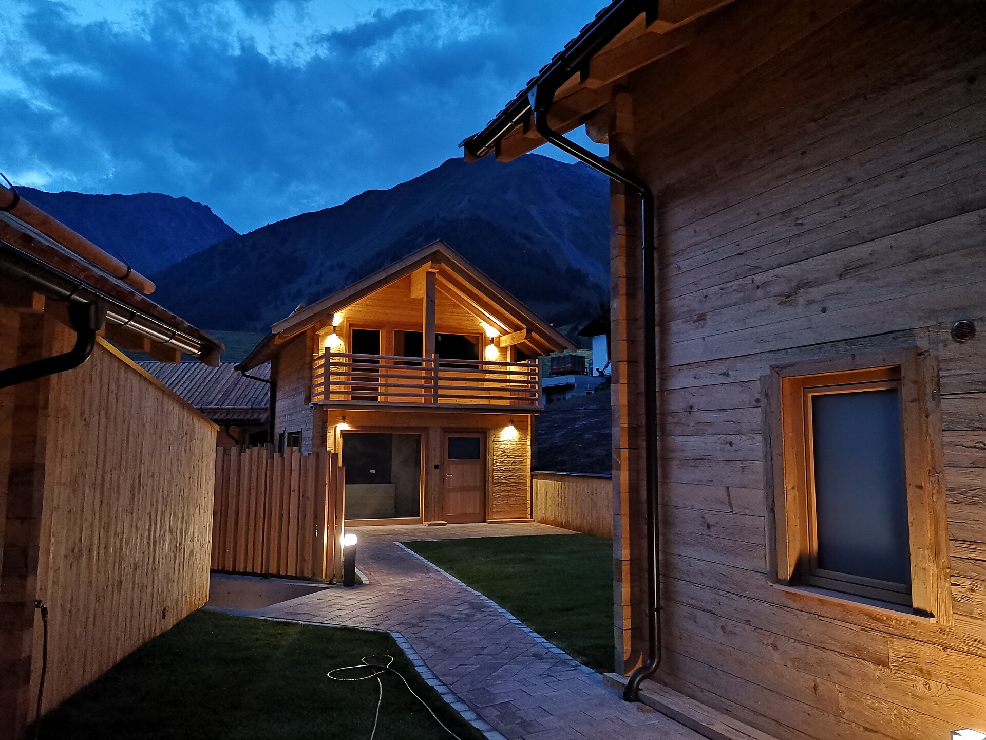 Gli Chalets sono realizzati con materiali naturali e costruiti come una malga altotesina, hanno circa 55 mq distribuiti su due piani: con balcone e prato privato con arredo da giardino e una sauna finlandese all`interno di ogni Chalet.