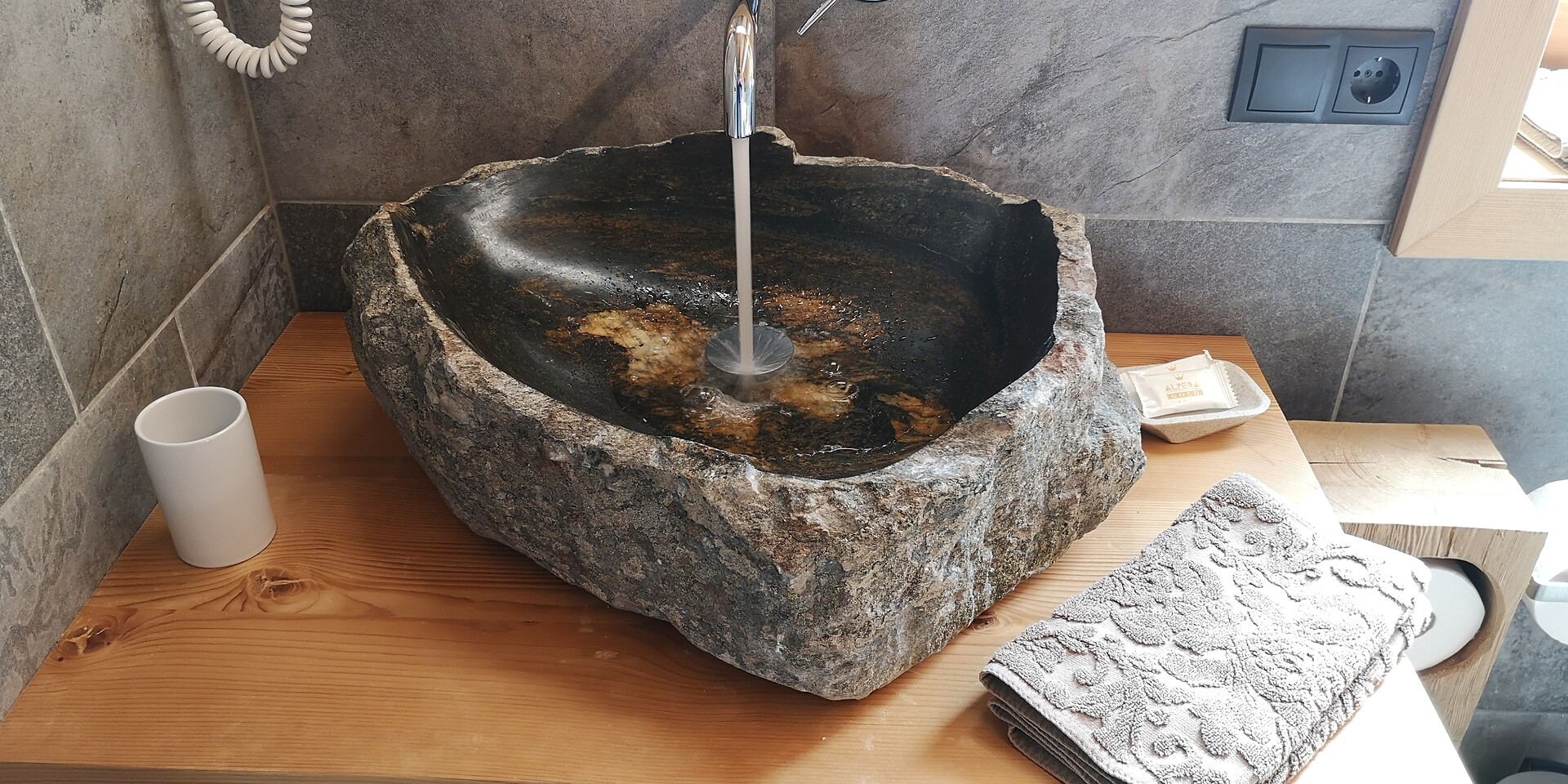 Soggiorno con tavolo per 5 persone, divano ( utilizzabile anche come quinto letto ), TV satellitare, telefono, riscaldamento a pavimento con termostato individuale, Wlan, Pavimento in pietra e piastrelle.